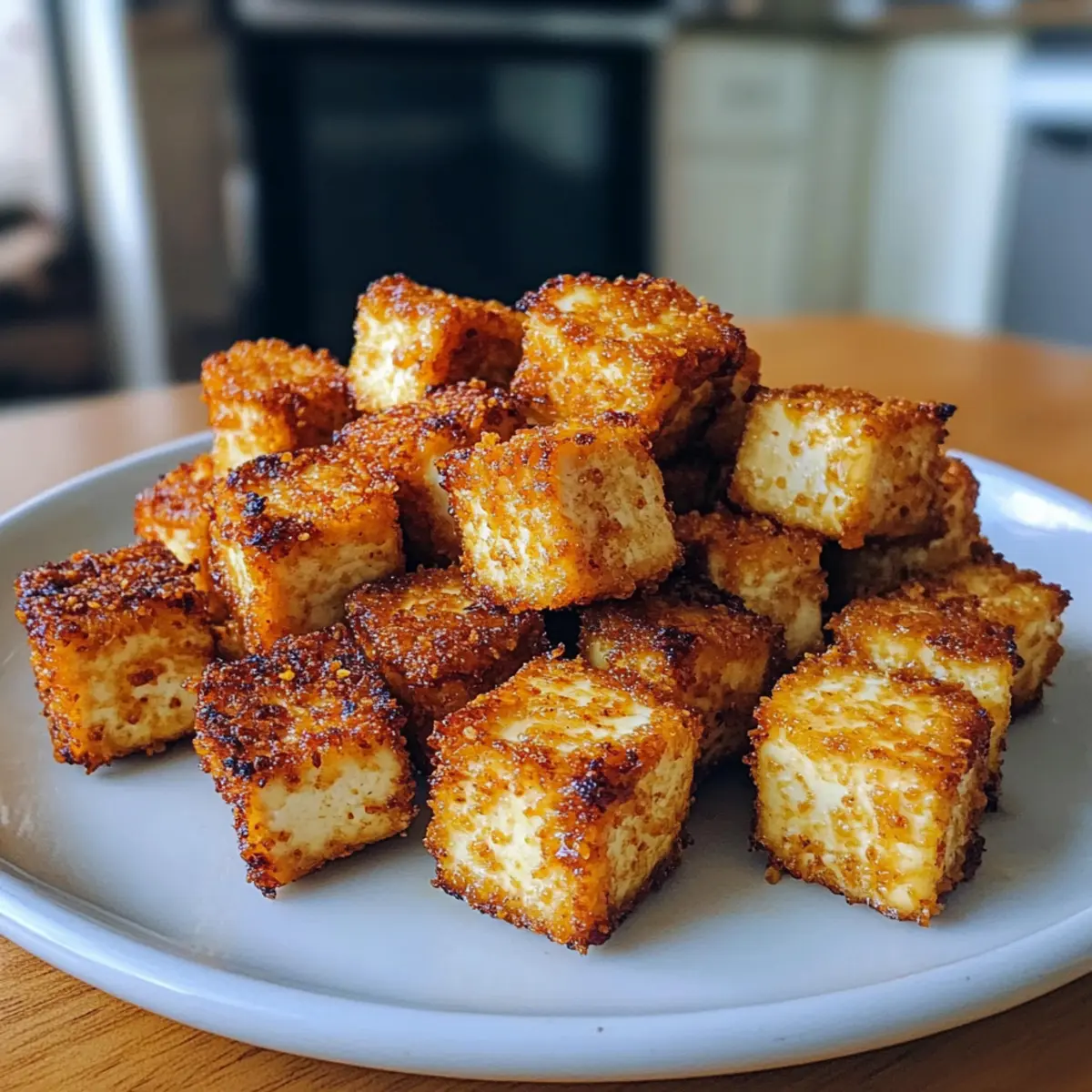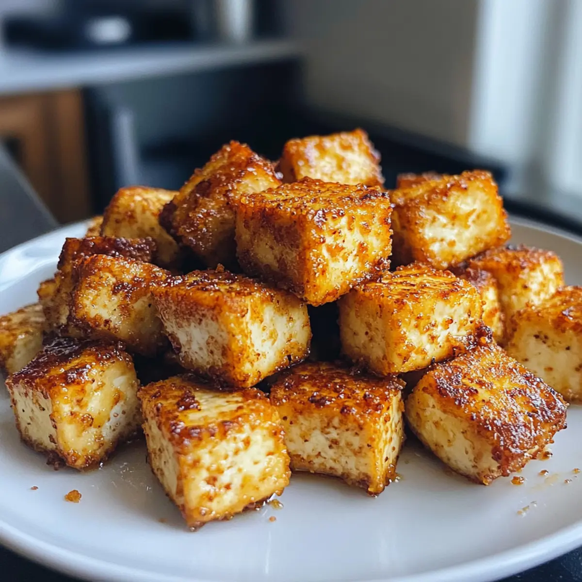 20-Minuten Heißluftfritteuse Knuspriger Tofu ist eine gesunde, knusprige Option für Snacks oder Salate.