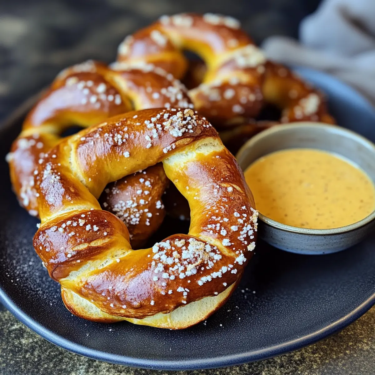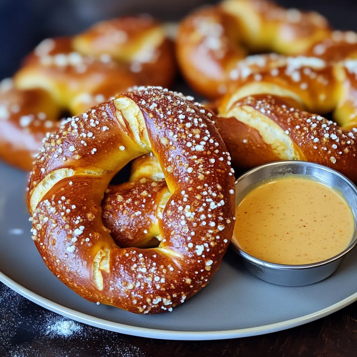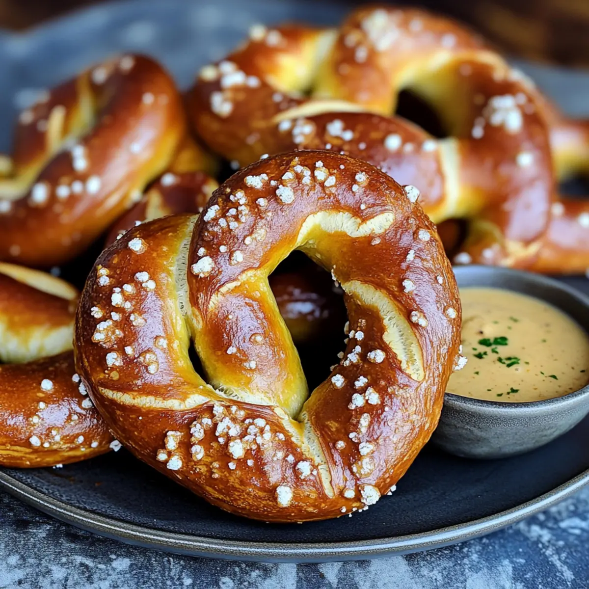 Die ersten warmen Sonnenstrahlen des Herbstes wecken in mir das Verlangen nach einer besonderen Leckerei: authentischen deutschen Brezeln! Diese klassischen Laugenbrezeln sind nicht nur eine wahre Freude für die Sinne, sondern auch einfach selbst zuzubereiten. Mit einer perfekt knusprigen Kruste und einem weichen, zähen Inneren sind sie die idealen Begleiter für jede Feier – insbesondere für Oktoberfest! Und das Beste daran? Die Zubereitung dauert weniger als zwei Stunden und sorgt garantiert für strahlende Gesichter bei Familie und Freunden. Stellt euch nur vor, wie der Duft von frisch gebackenem Brot eure Küche erfüllt, während ihr sie mit einer cremigen Cheddar-Biersauce serviert. Wagt ihr euch also heute ins Abenteuer der Brezeln? Warum sind authentische deutsche Brezeln unschlagbar? Einzigartiger Geschmack: Der unverwechselbare Geschmack dieser Brezeln stammt von der Verwendung von Lebensmittel-Lauge, die ihnen die typische braune Farbe und den besonderen Biss verleiht. Einfach zubereitet: Mit nur wenigen Zutaten und einfachen Schritten gelingt diese Leckerei im Handumdrehen. Die Zubereitung benötigt weniger als zwei Stunden! Perfekte Begleitung: Sie eignen sich hervorragend als Snack für Partys oder zum geselligen Beisammensein, besonders mit einer cremigen Käse-Bier-Sauce oder senf. Kulturelles Erlebnis: Diese Brezeln sind ein Muss bei jedem Oktoberfest und ein Stück deutscher Tradition auf eurem Tisch. Vielseitig: Probiert sie mit verschiedenen Dips oder sogar mit einem scharfen Käse, um neue Geschmackserlebnisse zu entdecken! Authentische Deutsche Brezeln Zutaten • Hier sind die wichtigsten Zutaten, um die perfekten authentischen deutschen Brezeln zuzubereiten: Für den Teig • Milch – sorgt für Feuchtigkeit und reichhaltigen Geschmack; verwende Vollmilch für das beste Ergebnis. • Aktive Trockenhefe – dient als Triebmittel für den Teig; stelle sicher, dass sie frisch ist für ein optimales Aufgehen. • Bier (z.B. Sam Adams Oktoberfest) – verleiht dem Teig eine besondere Tiefe und leichte Bitterkeit; kann bei Bedarf durch warmes Wasser ersetzt werden. • Geschmolzene und abgekühlte Butter – fügt dem Brezelteig Reichhaltigkeit hinzu; alternativ kann auch Öl verwendet werden. • Brauner Zucker – sorgt für Süße und fördert die Bräunung; kann durch weißen Zucker ersetzt werden. • Salz – hebt den Gesamtgeschmack hervor; Meersalz kann ebenfalls verwendet werden. • Allzweckmehl – bildet die Basis für die Teigstruktur; probiere für mehr Gesundheit auch eine Mischung mit Vollkornmehl aus. • Brezelsalz – gibt den Brezeln die authentische Note und den perfekten Crunch; grobes Meersalz ist eine alternative Möglichkeit. • Kaltes Wasser – dient zur Mischung mit der Lebensmittel-Lauge; muss kühl sein für eine sichere Reaktion. • Lebensmittel-Lauge (Natriumhydroxid) – unverzichtbar für den typischen Brezelgeschmack und die Farbe; nicht ersetzen, wenn du keine Backpulverlösung machen möchtest. Für die Käse-Bier-Sauce • Salzbutter – intensiviert den Geschmack der Käsesauce; ungesalzene Butter ist eine weitere Option, achte nur auf den Salzgehalt. • Knoblauch – bringt Tiefe und Aroma in die Käsesauce; frisch gehackter Knoblauch ist am besten. • Vollmilch – sorgt für Cremigkeit; kann gegen fettarme oder pflanzliche Milch ersetzt werden. • Bier (für die Sauce) – sorgt für eine geschmackliche Kontinuität und verstärkt die Reichhaltigkeit; zusätzlich Milch kann bei Bedarf verwendet werden. • Schlagsahne – für eine reichhaltige, cremige Konsistenz in der Sauce; kann mit halber-halber ersetzt werden. • Maisstärke – dient als Verdickungsmittel für die Sauce; kann auch durch Allzweckmehl ersetzt werden. • Andere Gewürze (Salz, Paprika, Cayennepfeffer) – verbessern das Geschmacksprofil; nach persönlichem Geschmack anpassen. Schritt-für-Schritt-Anleitung für Authentische Deutsche Brezeln mit Käse-Bier-Sauce Step 1: Milch und Hefe vorbereiten Erwärme 250ml Milch auf etwa 43°C (110°F) und gib die aktive Trockenhefe hinzu. Rühre gut durch und lasse die Mischung für 3 Minuten stehen, bis sie schaumig wird. Diese Basis sorgt dafür, dass die Teigstruktur der authentischen deutschen Brezeln perfekt aufgeht. Step 2: Zutaten vermengen Füge 50g geschmolzene und abgekühlte Butter, 30g braunen Zucker und 200ml Bier zur Hefemischung hinzu. Rühre alles zusammen und gib dann 500g Allzweckmehl und 10g Salz schrittweise dazu, bis der Teig eine knetbare Konsistenz erreicht. Achte darauf, gleichmäßig zu mischen, damit alle Zutaten gut verteilt sind. Step 3: Teig kneten Knete den Teig auf einer leicht bemehlten Arbeitsfläche für etwa 10 Minuten. Der Teig sollte glatt und elastisch werden. Wenn du siehst, dass der Teig blasen wirft und glänzt, hast du die richtige Konsistenz erreicht. Forme ihn dann zu einer Kugel und lege ihn in eine geölte Schüssel. Step 4: Teig gehen lassen Bedecke die Schüssel mit einem sauberen Tuch und lasse den Teig an einem warmen Ort für etwa 30 Minuten gehen, bis er sich verdoppelt hat. Achte darauf, dass die Umgebungstemperatur angenehm warm ist, damit die Hefe optimal arbeiten kann. Step 5: Brezeln formen Teile den Teig nach der Gehzeit in 12 gleich große Stücke. Rolle jedes Stück zu einem langen Strang (ca. 30 cm). Forme dann jeden Strang zu einer Brezel, indem du die Enden über Kreuz legst und am unteren Ende zusammendrückst. Die Form ist wichtig, um die typische Brezelgestalt der authentischen deutschen Brezeln zu erreichen. Step 6: Backbleche vorbereiten Heize den Ofen auf 190°C (375°F) vor und lege Backpapier auf zwei Backbleche, um ein Ankleben der Brezeln zu verhindern. Achte darauf, dass genug Platz zwischen den Brezeln bleibt, damit sie beim Backen aufgehen können. Step 7: Laugenbad vorbereiten Mische vorsichtig 60g Lebensmittel-Lauge mit 1 Liter kaltem Wasser in einer großen Schüssel. Trage Handschuhe und eine Schutzbrille, um deine Sicherheit zu
