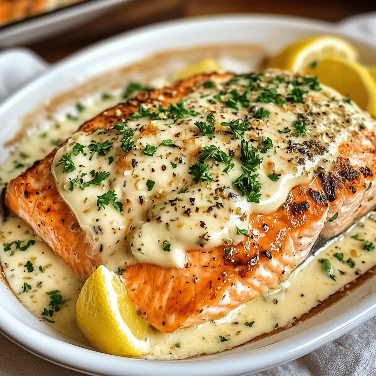 Lass den Lachs nach dem Backen für 2 Minuten ruhen, um den Geschmack zu intensivieren. Garniere das Gericht mit frischer Petersilie und serviere Zitronenschnitze dazu, um jedem Bissen eine erfrischende Note zu verleihen. Jetzt kannst du deinen köstlichen Baked Boursin Lachs genießen!