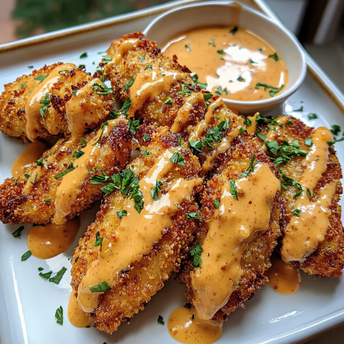 Die erste Beißprobe in mein Bang Bang Hähnchen entfaltet eine wahre Geschmacksexplosion! Diese knusprigen, panko-beschichteten Hähnchentenderloins, die mit einer cremigen und würzigen Bang Bang Sauce beträufelt sind, sind nicht nur eine Augenweide, sondern auch ein Genuss für die Sinne. Diese köstliche Mischung aus zarter Textur und feuriger Note macht das Bang Bang Hähnchen zum idealen Rezept für gesellige Abende und festliche Zusammenkünfte. Es ist kinderleicht zuzubereiten und sättigend, sodass es sowohl als Hauptgericht als auch als köstlicher Snack begeistert. Bereit, deine Lieben mit einem unwiderstehlichen Gericht zu überraschen? Lass uns gemeinsam in die Küche eintauchen! Warum wirst du dieses Rezept lieben? Einfachheit: Die Zubereitung des Bang Bang Hähnchens ist kinderleicht und benötigt nur grundlegende Kochfähigkeiten, sodass du auch als Anfänger keine Probleme haben wirst. Knusprige Textur: Die Kombination aus Panko und einer spezieller Panade sorgt für eine unwiderstehlich knusprige Außenschicht, die jedes Gericht verleiht. Vielseitigkeit: Ob als Hauptgericht oder köstlicher Snack, dieses Rezept passt perfekt zu verschiedenen Anlässen und Geschmäckern. Du kannst es auch leicht anpassen, indem du zum Beispiel Tofu oder Blumenkohl verwendest, um eine vegetarische Variante zu kreieren! Geschmacksexplosion: Die Kombination aus würziger Bang Bang Sauce und dem zarten Hähnchen sorgt für harmonische Geschmackserlebnisse, die deine Gäste begeistern werden. Zeitersparnis: In weniger als 30 Minuten ist dieses Gericht fertig, sodass du mehr Zeit mit deinen Lieben verbringen kannst. Schau auch mal bei unseren Apfel Zimt Kuechlein vorbei, wenn du nach weiteren schnellen und leckeren Rezepten suchst! Bang Bang Hähnchen Zutaten Für die Panade • Hähnchentenderloins ohne Haut und Knochen – Hauptquelle für Protein, sorgt für Zartheit und herzhaften Geschmack. • Buttermilch – Fügt Feuchtigkeit hinzu und macht das Hähnchen zarter. • Mehl – Bildet die erste Schicht für eine knusprige Textur. • Maisstärke – Verleiht der Panade zusätzliche Knusprigkeit. • Knoblauchpulver – Gibt einen herzhaften Geschmack. • Salz und Pfeffer – Grundgewürze zur Geschmacksverstärkung. • Cayennepfeffer – Fügt Schärfe hinzu; die Menge je nach Schärfetoleranz anpassen. • Ei – Bindet die Panade und sorgt für Feuchtigkeit. • Sriracha – Bringt eine scharfe Note mit; kann nach Geschmack angepasst werden. • Panko-Brösel – Schafft die knusprige Außenseite beim Frittieren. Für die Bang Bang Sauce • Mayonnaise – Basis für die Bang Bang Sauce; sorgt für Cremigkeit. • Thailändische süße Chilisoße – Verleiht der Sauce Süße und eine fruchtige Note. • Honig – Fügt zusätzliche Süße hinzu und balanciert die Schärfe der Sauce aus. Entdecke mit diesem Rezept das Geschmackserlebnis von Bang Bang Hähnchen, das deinen Gästen garantiert gefallen wird! Schritt-für-Schritt-Anleitung für Bang Bang Hähnchen Step 1: Bang Bang Sauce zubereiten Vermische in einer Schüssel die Mayonnaise, die thailändische süße Chilisoße, Sriracha und Honig. Rühre alles gut um, bis die Mischung eine glatte Konsistenz erreicht. Diese köstliche Sauce wird die perfekte Ergänzung zu deinem knusprigen Bang Bang Hähnchen sein und sorgt für die nötige Würze. Step 2: Hähnchen vorbereiten Lege die Hähnchentenderloins für mindestens 10 Minuten in die Buttermilch. Diese Zeit ermöglicht es dem Hähnchen, zart und saftig zu werden. Achte darauf, dass alle Stücke gut mit Buttermilch bedeckt sind, bevor du mit den nächsten Schritten fortfährst. Step 3: Panierstation einrichten Bereite drei große Schüsseln für die Panade vor. In die erste Schüssel gibst du eine Mischung aus Mehl, Maisstärke, Knoblauchpulver, Salz, Pfeffer und Cayennepfeffer. In der zweiten Schüssel verquirlst du das Ei mit einem Schuss Sriracha, und in der dritten Schüssel befinden sich die Panko-Brösel, die das Hähnchen später knusprig machen werden. Step 4: Hähnchen panieren Nimm die Hähnchentenderloins aus der Buttermilch und wälze sie gründlich in der Mehlmischung, bis sie vollständig bedeckt sind. Dann tauche sie in die Ei-Sriracha-Mischung und schließlich in die Panko-Brösel, sodass eine dicke, knusprige Schicht entsteht. Achte darauf, dass du die Hähnchenstücke gleichmäßig bedeckst. Step 5: Hähnchen frittieren Erhitze in einem Topf ausreichend Öl auf etwa 180 °C. Frittiere die panierten Hähnchentenderloins portionsweise, bis sie goldbraun und knusprig sind – das sollte cirka 5-7 Minuten pro Charge dauern. Verwende eine Schaumkelle, um das Hähnchen herauszunehmen und lasse es auf einem mit Küchenpapier ausgelegten Teller abtropfen. Step 6: Servieren Lege die knusprigen Bang Bang Hähnchenstücke auf einen Servierteller und beträufle sie großzügig mit der vorbereiteten Bang Bang Sauce. Du kannst das Gericht nach Belieben mit frisch gehackter Petersilie garnieren. Dieses herzhaft-würzige Gericht wird deine Gäste bestimmt begeistern! Bang Bang Hähnchen Variationen Lass deiner Kreativität freien Lauf und passe das Rezept mit diesen erfrischenden Ideen an! Vegetarisch: Ersetze das Hähnchen durch Tofu oder Blumenkohl für eine köstliche, fleischlose Variante. Die knusprige Textur bleibt erhalten und macht das Gericht zu einem Hit. Würziger Kick: Füge zusätzlich etwas frisch gehackte Jalapeños in die Bang Bang Sauce hinzu. So erhältst du eine extra Portion Schärfe, die besonders Feurige begeistert! Ungewöhnliche Süße: Experimentiere mit verschiedenen Honigsorten oder sogar Ahornsirup für einen süßen Twist. Jeder Löffel wird so zu einer neuen Entdeckung. Pikanter Genuss: Verwende scharfen Senf oder Wasabi in der Sauce, um die Aromen aufzupeppen. Diese Variation bietet eine spannende Geschmackskombination, die alle Sinne anspricht. Asiatische Note: Ergänze die Sauce mit einem Spritzer Limettensaft und ein paar Sesamsamen für einen 