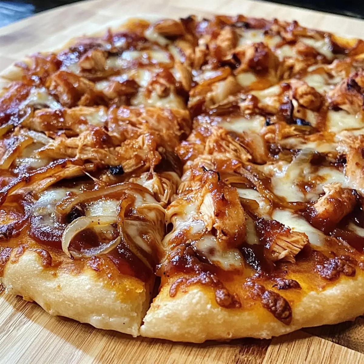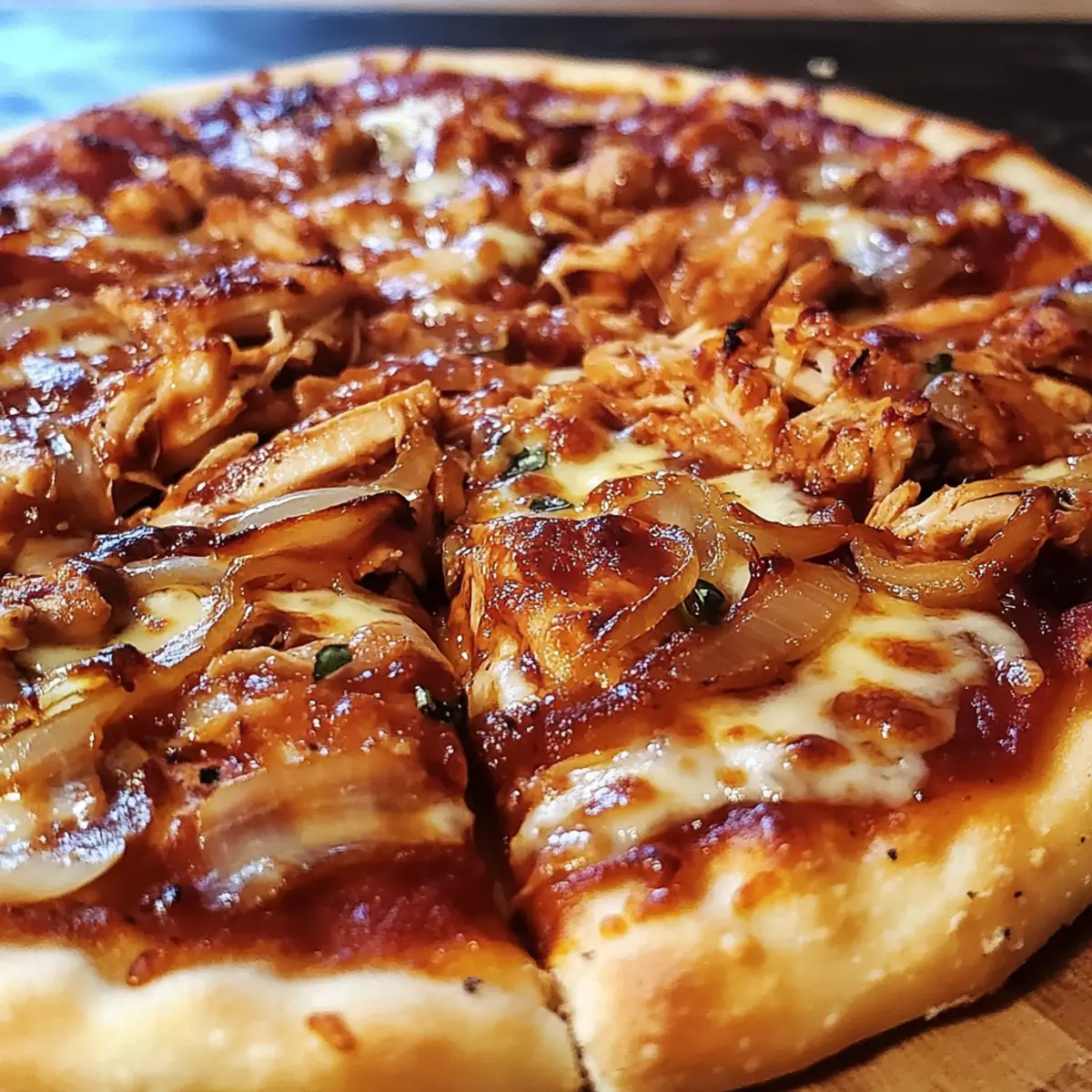 BBQ Hähnchen Pizza mit Karamellisierten Zwiebeln