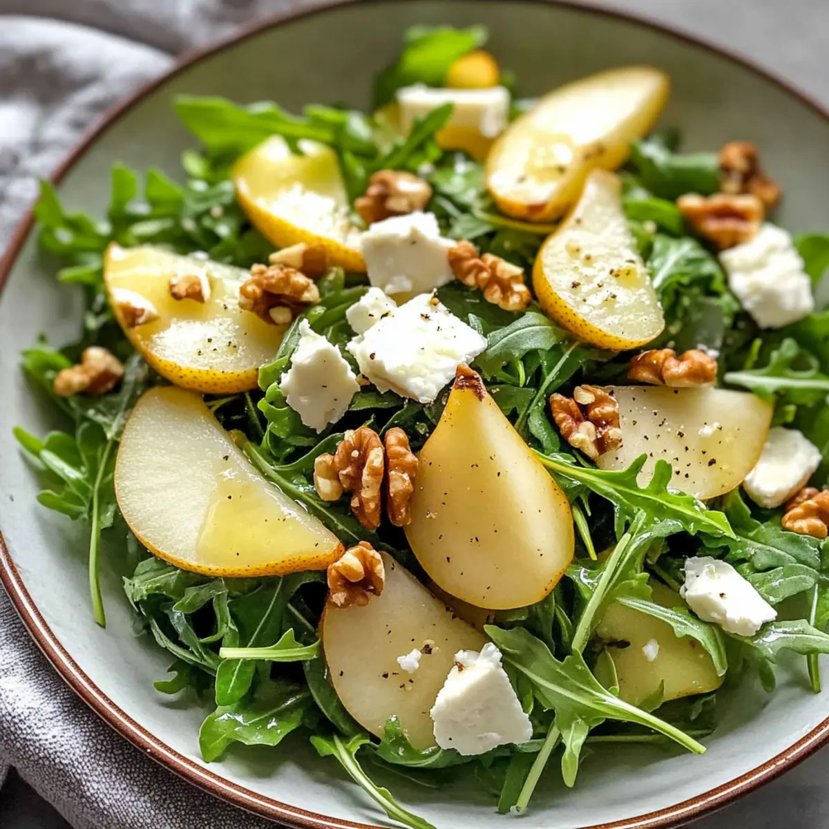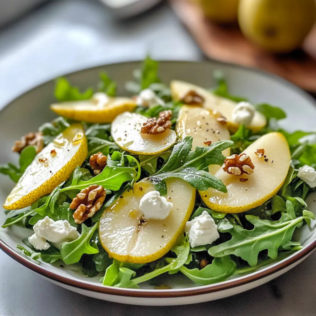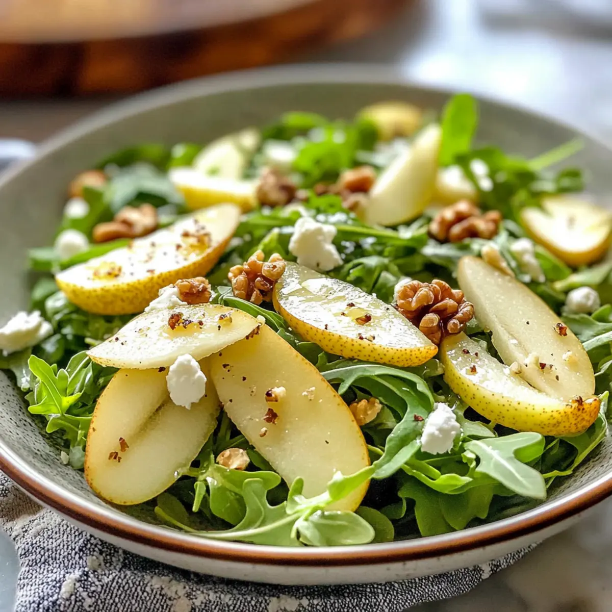 Als ich neulich im Markt die frischen, saftigen Birnen entdeckte, wusste ich sofort, dass ich etwas Gesundes und Leckeres zaubern wollte. Der Birnen- und Rucolasalat mit Honig-Vinaigrette sollte es sein – eine perfekte Mischung aus frischem, knackigem Rucola und süßen, reifen Birnen, die geradezu nach einem kühlen, klaren Herbsttag schreien. Dieses Rezept hat nicht nur den Vorteil, dass es in nur 10 Minuten zubereitet werden kann, sondern ist auch ein echter Hingucker und ein gesunder Genuss. Die Kombination aus cremigem Ziegenkäse und knusprigen Walnüssen sorgt für ein harmonisches Spiel der Texturen und Aromen. Lust auf einen frischen Twist in deiner Küche? Lass uns gemeinsam diesen köstlichen Salat zubereiten! Warum wirst du diesen Salat lieben? Frische Aromen: Der Birnen- und Rucolasalat mit Honig-Vinaigrette bringt eine aufregende Geschmackskombination auf deinen Teller. Die süßen Birnen harmonieren perfekt mit der Würze des Rucola. Schnelle Zubereitung: In nur 10 Minuten steht dieser gesunde Salat bereit, ideal für hektische Tage oder wenn du Gäste hast. Gesunde Zutaten: Reich an Ballaststoffen und gesunden Fetten aus Walnüssen und Ziegenkäse bietet dieser Salat nicht nur Geschmack, sondern auch nahrhafte Vorteile. Anpassungsfähig: Du kannst Zutaten variieren und zum Beispiel statt Ziegenkäse Feta oder zusätzliche Proteine wie Hähnchen oder Kichererbsen hinzufügen. Augenschmaus: Die leuchtenden Farben aus frischen Zutaten machen diesen Salat zu einem ansprechenden Hingucker auf jedem Tisch. Birnen- und Rucolasalat Zutaten • Dieser gesunde Salat wird mit frischen und nahrhaften Zutaten zubereitet. Für den Salat Rucola – verleih ihm eine pfeffrige Frische, die als knackige Basis dient. Bartlett-Birnen – darauf achten, reife Birnen zu verwenden, für den besten süßen Geschmack. Ziegenkäse – bringt Cremigkeit und einen leichten Biss; kann durch Feta ersetzt werden. Walnüsse – sorgen für knusprigen Biss; ebenfalls mit Pecannüssen oder Mandeln austauschbar. Frischer Thymian – fügt ein erdiges Aroma hinzu; kann mit Rosmarin ersetzt oder weggelassen werden. Für das Dressing Olivenöl – dient als Grundlage für die Vinaigrette und sorgt für reichhaltigen Geschmack; wähle extra vergine für ein intensiveres Aroma. Apfelessig – sorgt für eine ausgewogene Säure; kann durch Weißweinessig ersetzt werden. Frischer Zitronensaft – bringt Helligkeit in das Dressing; Zitronenschale kann für zusätzliches Aroma hinzugefügt werden. Honig – süßt die Vinaigrette; Agavensirup kann als vegane Alternative genutzt werden. Schalotten – verleihen einen milden Zwiebelgeschmack; rot kann als Alternative verwendet werden. Knoblauch – bringt eine herzhaft-würzige Note; kann weggelassen werden, wenn gewünscht. Salz und schwarzer Pfeffer – zum Würzen, nach Geschmack anpassen. Dieser Birnen- und Rucolasalat mit Honig-Vinaigrette ist der perfekte Weg, um frischen Geschmack und gesunde Zutaten zu kombinieren! Schritt-für-Schritt-Anleitung für Birnen- und Rucolasalat mit Honig-Vinaigrette Step 1: Vinaigrette zubereiten In einem kleinen Glas oder einer Schüssel das Olivenöl, den Apfelessig, den frischen Zitronensaft und den Honig vermengen. Füge die fein gehackten Schalotten und den optionalen Knoblauch hinzu. Mit Salz und schwarzem Pfeffer würzen. Schlage die Mischung kräftig mit einer Gabel oder einem kleinen Schneebesen, bis sie gut emulgiert ist, und stelle das Dressing beiseite. Step 2: Salatzutaten vorbereiten Nehme eine große Schüssel und füge den gewaschenen Rucola hinzu. Die reifen Bartlett-Birnen in kleine Stücke schneiden und zusammen mit zerbröckeltem Ziegenkäse und grob gehackten Walnüssen in die Schüssel geben. Je nach Vorliebe frischen Thymian oder andere Kräuter hinzufügen, um dem Birnen- und Rucolasalat mehr Geschmack zu verleihen. Step 3: Salat anrichten Jetzt ist es Zeit, den Salat zu mischen! Gieße das vorbereitete Dressing gleichmäßig über die Salatzutaten in der Schüssel. Benutze zwei Gabeln und ziehe den Salat vorsichtig um, damit sich das Dressing gleichmäßig verteilt und alle Zutaten schön umhüllt werden. Step 4: Abschmecken und Servieren Schmecke den Salat ab und passe die Gewürze nach deinem Geschmack an. Falls gewünscht, füge bei Bedarf etwas mehr Salz, Pfeffer oder Zitronensaft hinzu. Serviere den Birnen- und Rucolasalat mit Honig-Vinaigrette sofort auf einem schönen Teller oder in einer Schüssel, damit er frisch und knackig bleibt. Expert Tips für Birnen- und Rucolasalat Perfekte Birnen wählen: Achte darauf, reife Bartlett-Birnen zu verwenden, da sie die Süße und den besten Geschmack bieten. Überreife Birnen können matschig sein. Kräuter anpassen: Frischer Thymian passt wunderbar, aber auch andere Kräuter wie Basilikum oder Petersilie können eine interessante Note hinzufügen. Dressing im Voraus: Bereite die Honig-Vinaigrette am Vortag zu. So haben die Aromen Zeit, sich zu verbinden und intensiver zu werden. Walnüsse anpassen: Wenn du Nüsse magst, variere mit Pecannüssen oder Mandeln für einen anderen Geschmack und Textur in deinem Salat. Nicht zu früh anrichten: Mische den Salat erst kurz vor dem Servieren, um sicherzustellen, dass der Rucola knackig bleibt und der Birnen- und Rucolasalat mit Honig-Vinaigrette frisch schmeckt. Was passt gut zu Birnen- und Rucolasalat mit Honig-Vinaigrette? Dieser frische und gesunde Salat ist die perfekte Hauptspeise, aber mit den richtigen Beilagen wird dein Essensmoment noch vollständiger und erfüllender. Cremige Kartoffelpüree: Eine samtige Beilage, die die knackigen Texturen des Salats wunderbar ergänzt und einen herzhaften Kontrast bietet. Gegrilltes Hähnchen: Saftige Hähnchenbrust fügt eine proteinreiche Komponente hinzu und harmoniert geschmacklich mit der süßen Vinaigrette des Salats. Quinoa-Salat: Eine nussige, ballaststoffreiche Ergänzung, die gut mit der Frische des Rucolas harmoniert und die Mahlzeit nährstoffreich macht. 