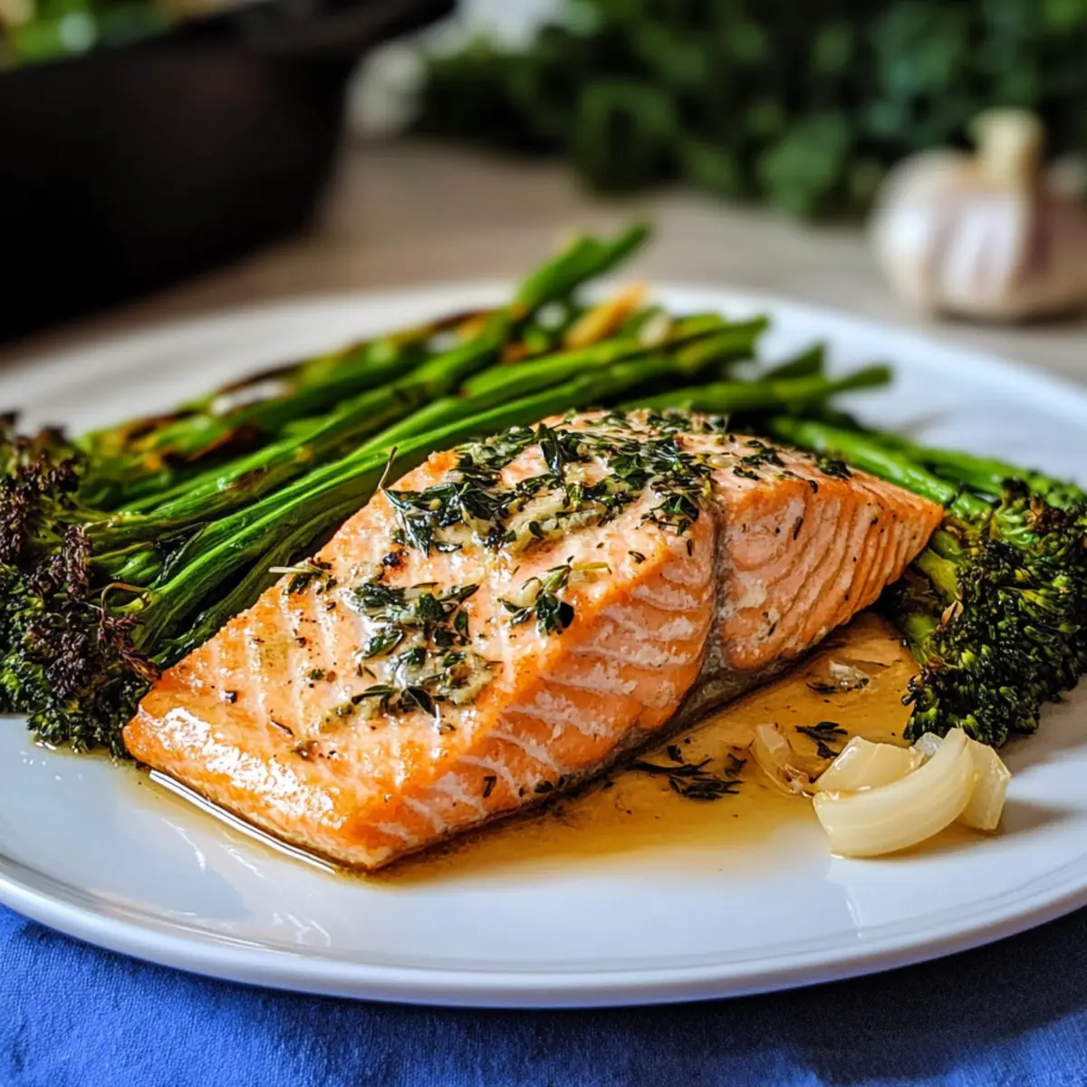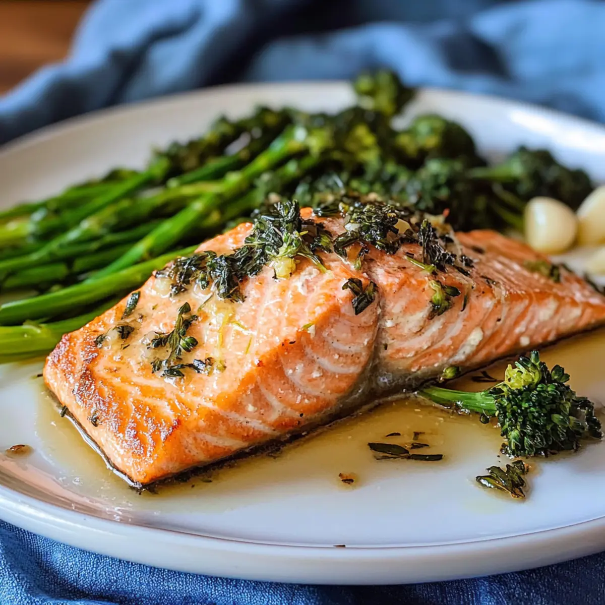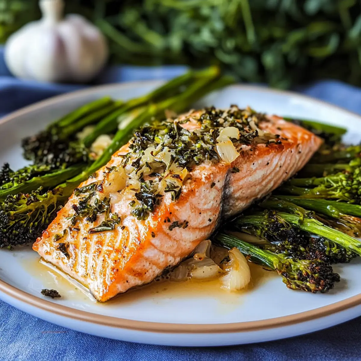 Jeden von uns kennt diese Momente, in denen man einen köstlichen, aber gesunden Abendessen wünscht, der zugleich schnell und einfach zuzubereiten ist. Genau so entstand mein Rezept für Buttery gebackenen Lachs mit Babybrokkoli, das in nur 30 Minuten zubereitet werden kann. Diese köstliche Kombination aus zartem, saftigem Lachs und knackigem Brokkoli, gewürzt mit aromatischem Knoblauch und Schalotten, bringt nicht nur den Geschmack von hochwertigen Restaurantgerichten auf den Tisch, sondern ist auch glutenfrei und perfekt für eine Low-Carb-Diät. Ob als schnelles Familienessen unter der Woche oder für ein besonderes Dinner, dieses Gericht überzeugt immer und wird zum neuen Favoriten in deiner Küche. Welche kleinen Tricks denkst du, könnte ich noch hinzufügen, um das Rezept noch unwiderstehlicher zu machen? Warum wirst du dieses Rezept lieben? Schnelligkeit: In nur 30 Minuten hast du ein köstliches Abendessen auf dem Tisch! Gesunde Wahl: Dieser Buttery gebackene Lachs mit Babybrokkoli ist nicht nur glutenfrei, sondern auch eine hervorragende Option für alle, die auf ihre Kohlenhydrate achten. Einfachheit: Die Zubereitung erfordert keine speziellen Kochkünste – perfekt für schnelle Familienabende! Aromenvielfalt: Die Kombination aus Knoblauch, Schalotten und frischen Kräutern verleiht dem Gericht eine aromatische Tiefe, die du lieben wirst. Vielseitigkeit: Probiere verschiedene Gemüsesorten aus oder füge ein paar Zitronenscheiben hinzu, um zusätzliche Frische zu genießen. Wenn du weitere leckere Fischrezepte suchst, schau dir auch unseren Teriyaki Lachs Aus oder den Knusprigen Lachs Auf an! Buttery gebackener Lachs mit Babybrokkoli Zutaten Entdecke die perfekten Zutaten für ein schnelles, gesundes Abendessen! Für den Lachs Echter Butter – sorgt für reichhaltige Feuchtigkeit im Lachs. Hinweis: Kann durch Olivenöl oder Ghee für eine milchfreie Variante ersetzt werden. Knoblauch (3 Zehen, fein gehackt) – verleiht ein aromatisches Aroma. Ersatz: In einer Notlage kann Knoblauchpulver (1/4 Teelöffel pro Zehe) verwendet werden. Schalotte (1, ca. ½ Tasse, gehackt) – fügt eine milde Süße hinzu, die das Gericht verbessert. Ersatz: Verwende Zwiebel, wenn Schalotten nicht verfügbar sind. Wildlachsfilet (1 ½ – 2 Pfund) – der Hauptbestandteil, der beim richtigen Garen schön flockig wird. Hinweis: Frischer oder gefrorener Lachs ist geeignet; lasse gefrorenen Lachs vorher auftauen. Meersalz (½ Teelöffel + nach Geschmack) – verbessert alle Aromen. Tipp: Verwende koscheres Salz für eine bessere Textur. Getrocknetes Basilikum (1 Teelöffel) – bringt eine erdige Kräuternote. Frisches Basilikum kann verwendet werden (3 Teelöffel), beeinflusst jedoch die Garzeit. Frisch gemahlener schwarzer Pfeffer – verleiht eine subtile Schärfe. Tipp: Frisch gemahlener Pfeffer schmeckt besser als vorgeriebener. Für den Brokkoli Süßer Babybrokkoli oder Brokkoli (1 Pfund) – eine nahrhafte Beilage, die beim Rösten leicht knusprig wird. Hinweis: Brokkoli kann den Babybrokkoli ersetzen, wenn nötig. Olivenöl (2-3 Esslöffel) – sorgt für Feuchtigkeit und Geschmack der Gemüse. Ersatz: Jedes Öl kann verwendet werden, z.B. Avocado- oder Traubenkernöl. Frische Rosmarinzweige (2-3) – verleiht ein duftendes Aroma und passt gut zum Lachs. Ersatz: Thymian kann ebenfalls verwendet werden, um ein anderes Geschmacksprofil zu erzielen. Schritt-für-Schritt-Anleitung für Buttery gebackener Lachs mit Babybrokkoli Step 1: Ofen vorheizen Heize den Ofen auf 190°C (375°F) vor und lege ein großes Backblech mit Backpapier aus. Diese Vorbereitung sorgt dafür, dass der Lachs und der Babybrokkoli gleichmäßig garen und nicht anbrennen. Wenn der Ofen vorgeheizt ist, bereitest du die anderen Zutaten in der Zwischenzeit vor. Step 2: Butter und Aromen schmelzen Erhitze in einer kleinen Pfanne bei mittlerer Hitze die Butter. Wenn die Butter vollständig geschmolzen ist, füge den gehackten Knoblauch und die Schalotten hinzu und brate sie etwa 30 Sekunden lang, bis sie aromatisch sind. Achte darauf, dass sie nicht verbrennen, da dies den Geschmack des Buttery gebackenen Lachses beeinträchtigen könnte. Step 3: Lachs vorbereiten Trockne das Lachsfilet mit einem Küchentuch ab und lege es mit der Hautseite nach unten auf das Backblech. Gieße die geschmolzene Butter-Knoblauch-Mischung gleichmäßig über den Lachs. Diese Schicht sorgt dafür, dass der Lachs saftig bleibt und die Aromen gut einziehen, während er im Ofen gart. Step 4: Würzen und Brokkoli anrichten Würze den Lachs mit Meersalz, getrocknetem Basilikum und frisch gemahlenem schwarzem Pfeffer. Arrangiere den Babybrokkoli rund um den Lachs und träufle etwas Olivenöl darüber. Bestreue auch das Gemüse leicht mit Salz und Pfeffer, damit die Aromen zusammenkommen und die Mischung beim Backen lecker ist. Step 5: Kräuter hinzufügen Lege die frischen Rosmarinzweige sowohl oben auf dem Lachs als auch um den Fisch herum an. Diese Kräuter verleihen dem Buttery gebackenen Lachs mit Babybrokkoli ein wunderbares Aroma und verstärken den Geschmack. Achte darauf, die Zweige so zu platzieren, dass sie nicht verbrennen, während das Gericht im Ofen ist. Step 6: Backen Schiebe das Backblech in den vorgeheizten Ofen und backe alles für 15 bis 20 Minuten. Überprüfe den Lachs nach 15 Minuten, indem du die dickste Stelle mit einer Gabel testest; der Lachs sollte flockig und leicht durchscheinend, aber nicht roh sein. Der Babybrokkoli sollte zart und leicht knusprig sein. Step 7: Servieren Nimm das Backblech aus dem Ofen und lasse den Lachs kurz ruhen. Du kannst optional etwas frischen Zitronensaft darüber träufeln oder mit einem Spritzer Pfeffer verfeinern. Serviere den Buttery gebackenen Lachs mit Babybrokkoli direkt auf Tellern und genieße ein schnelles, gesundes Abendessen. Was passt gut zu Buttery gebackenem Lachs mit Babybrokkoli? Genieße ein harmonisches Dinner-Erlebnis, das sowohl die Sinne erfreut als auch den Gaumen verw