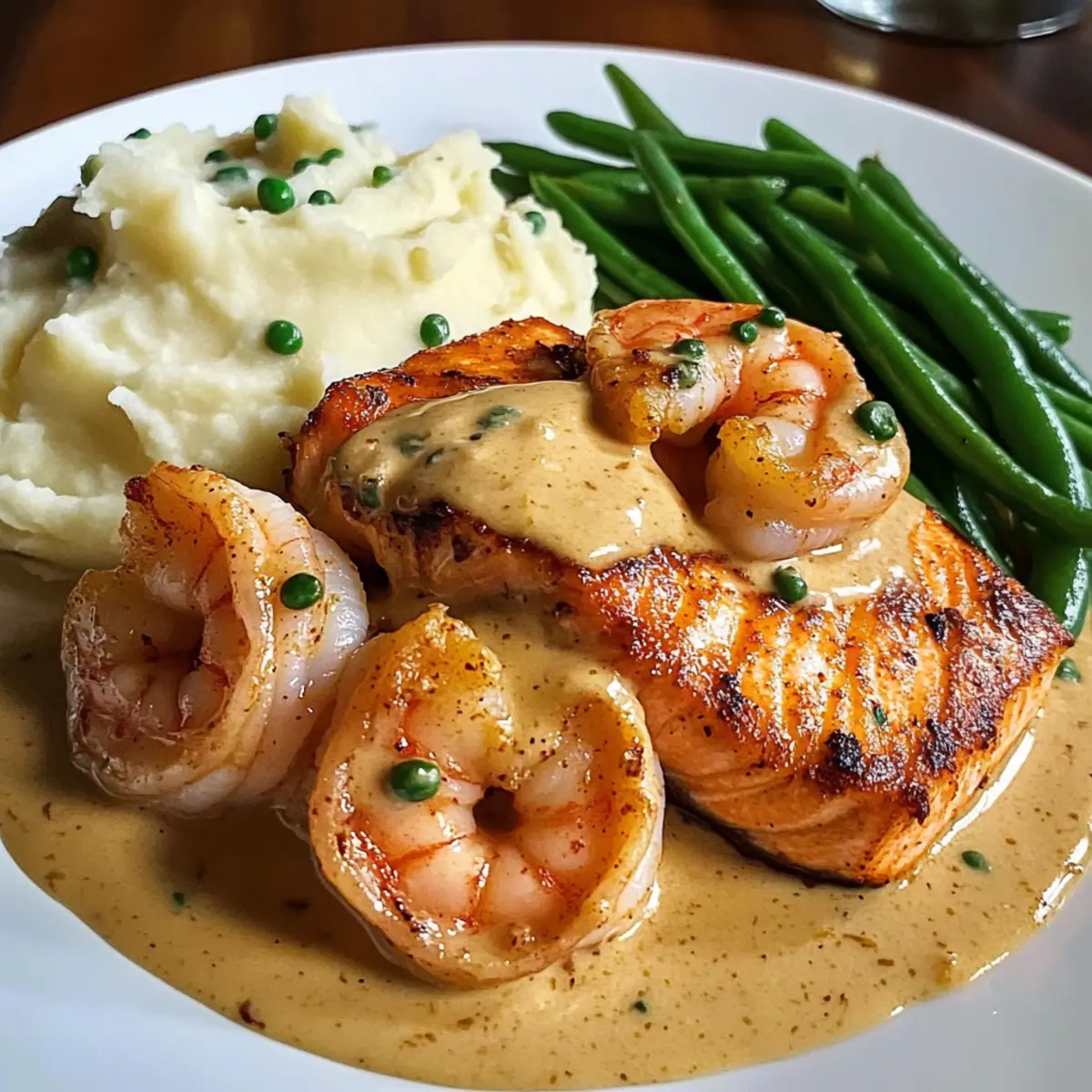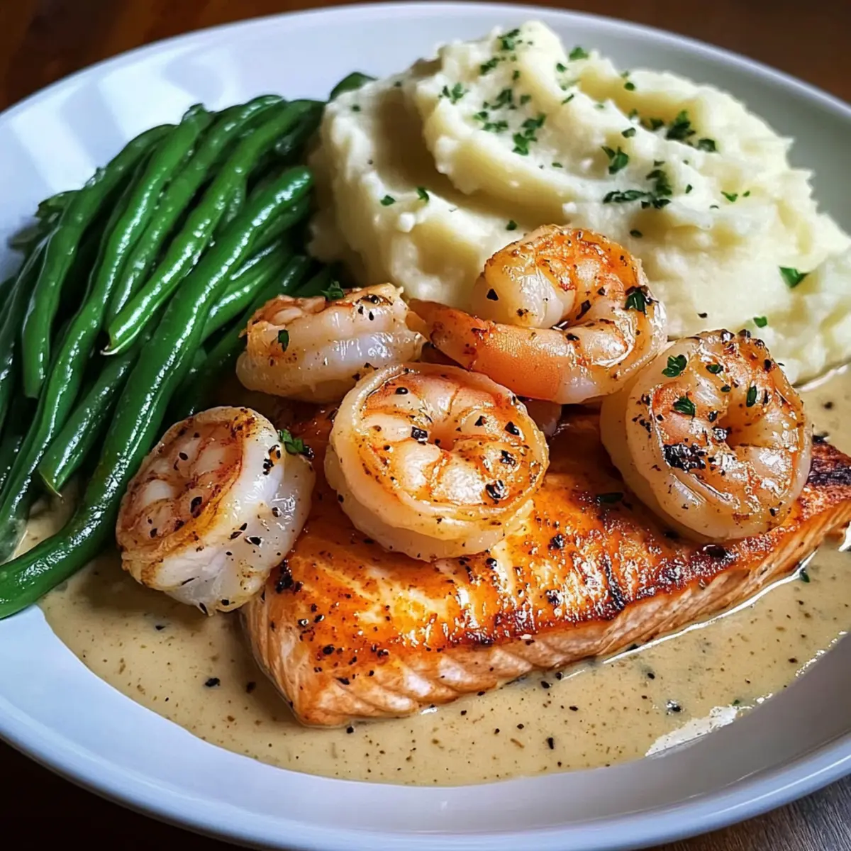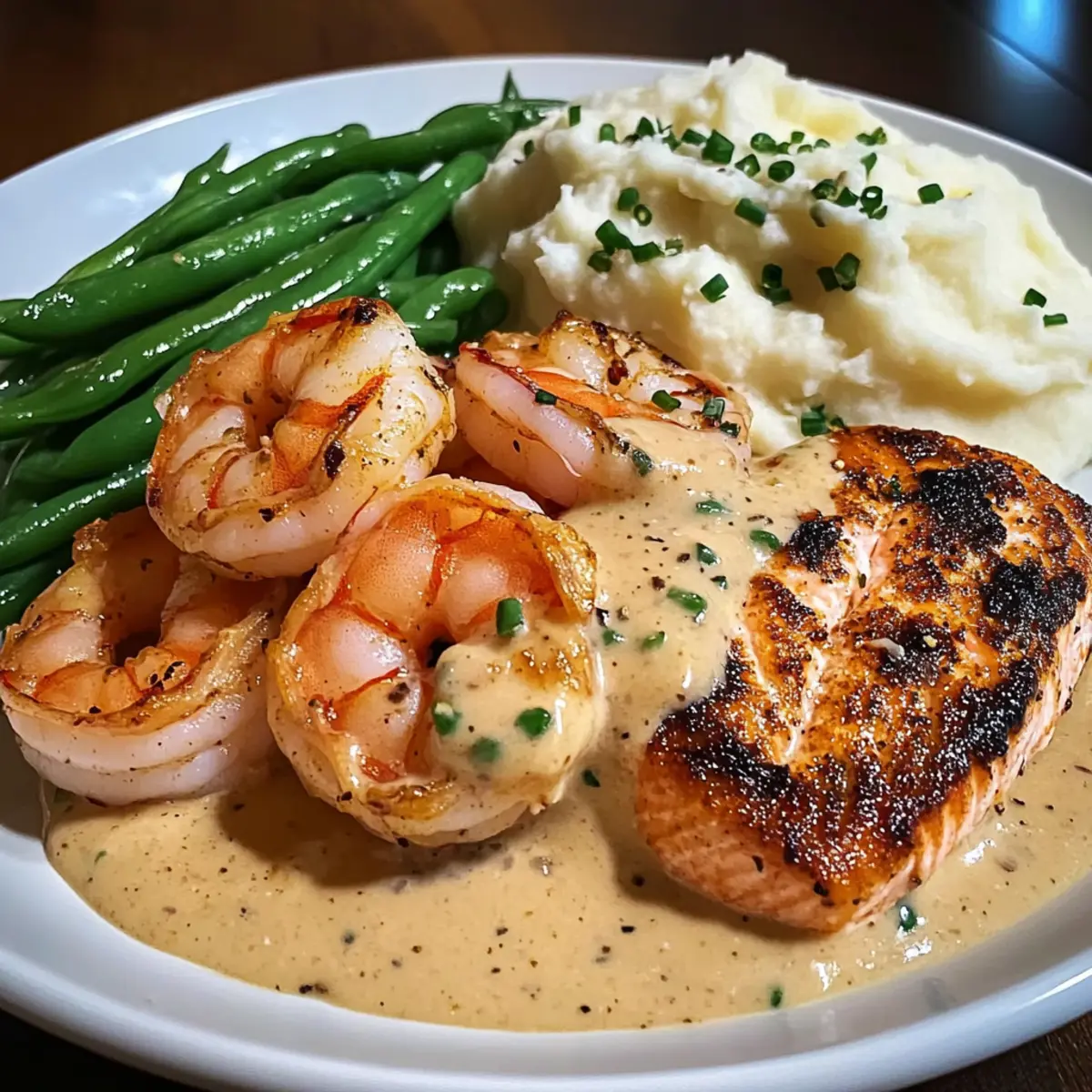 Unbemerkt in meiner Küche, während ich nach einem echten Comfort-Food-Dinner suchte, entdeckte ich das perfekte Rezept: Cajun Garnelen und Lachs in einer cremigen Knoblauchsauce. Diese Kombination aus zarten Garnelen und saftigem Lachs, samt den gewürzigen Aromen von Cajun-Gewürzen, sorgt für ein unvergessliches Geschmackserlebnis. Die sämige Knoblauchsauce, zusammen mit fluffigen Kartoffelbrei und knackigen grünen Bohnen, macht dieses Gericht nicht nur zu einem echten Gaumenschmaus, sondern auch zu einer schnellen Option, die sich wunderbar für jede Gelegenheit eignet – ob für ein gemütliches Familienessen oder ein romantisches Date. Du wirst staunen, wie flexibel dieses Rezept ist: Es lässt sich ganz nach deinem Geschmack anpassen, von den Proteinen bis hin zu den Beilagen. Neugierig auf die Zubereitung? Lass uns gemeinsam loslegen! Warum sind diese Cajun Garnelen ein Hit? Vielfalt: Die Möglichkeit, mit verschiedenen Proteinen zu experimentieren, macht dieses Rezept ideal für jeden Geschmack – ob Garnelen, Lachs, Hähnchen oder sogar Tofu! Einfache Zubereitung: Mit klaren Schritten und wenigen Zutaten ist es ein Kinderspiel, dieses Gericht zu meistern. Du benötigst nur Grundkenntnisse in der Küche, um ein köstliches Essen zu zaubern. Reicher Geschmack: Die Kombination aus würzigen Cajun-Gewürzen und der cremigen Knoblauchsauce verleiht den Garnelen und dem Lachs eine unverwechselbare Tiefe, die deine Geschmacksknospen verzaubern wird. Vielseitige Beilagen: Genieße die Cajun Garnelen mit beliebigen Seiten wie Püree aus Süßkartoffeln oder knackigen, gedünsteten Gemüse – die Möglichkeiten sind endlos und immer lecker! Schnelle Zubereitung: Dieses Gericht ist nicht nur köstlich, sondern auch schnell zubereitet – perfekt für einen vollen Wochentag, an dem du trotzdem etwas Besonderes servieren möchtest. Crowd-Pleaser: Ob für ein Familienessen oder ein romantisches Dinner, diese Kombination wird deine Gäste begeistern und sie nach dem Rezept fragen! Cajun Garnelen Zutaten • Hier sind alle Zutaten, die du für diese köstlichen Cajun Garnelen benötigst! Für die Garnelen und den Lachs Garnelen – sorgen für Proteine und einen süßen maritime Geschmack; ideal sind frische oder tiefgekühlte, aber optimiere den Garprozess. Lachs – bringt seinen reichen Geschmack und wertvolle Omega-3-Fettsäuren mit; du kannst ihn auch durch Hühnchenbrust oder Tofu ersetzen, um eine nicht-meeresfrüchterei Option zu bieten. Für die Cajun-Gewürzmischung Cajun-Gewürz – verleiht dem Gericht die charakteristische Würze und Schärfe; erhöhe die Menge für mehr Hitze oder füge Jalapeños hinzu für ein zusätzliches Kick. Für die Knoblauchcremesauce Knoblauch – intensiviert den Geschmack; frischer Knoblauch ist für das beste Ergebnis zu empfehlen. Schlagsahne – sorgt für die reichhaltige und cremige Textur der Sauce; ersetze sie durch halbe & halbe für eine leichtere Variante. Butter – verleiht sowohl der Sauce als auch den Beilagen ein zusätzliches Aroma; du kannst auch Olivenöl verwenden, um das Gericht leicher zu halten. Für die Beilagen Kartoffeln – eine perfekte, cremige Seite; du kannst sie auch durch Süßkartoffeln ersetzen für eine süßere Note. Grüne Bohnen – bieten einen knackigen Kontrast; du kannst zusätzliche Aromen mit sautierten Pilzen oder Cherrytomaten hinzufügen, um das Gericht zu verfeinern. So, bereit, deine Cajun Garnelen zu zaubern? Schritt-für-Schritt-Anleitung für Cajun Garnelen mit Knoblauchcreme Step 1: Zutaten vorbereiten Beginne damit, die Garnelen und den Lachs großzügig mit Cajun-Gewürz zu würzen. Achte darauf, dass die Gewürze gleichmäßig verteilt sind. Dies sorgt dafür, dass die Cajun Garnelen und der Lachs beim Kochen den vollen Geschmack entfalten. Lass die Gewürze etwa 10 Minuten einziehen, während du die anderen Zutaten vorbereitest. Step 2: Meeresfrüchte garen Erhitze eine große Pfanne bei mittlerer Hitze und gib etwas Öl hinzu. Die Pfanne sollte heiß sein, damit die Garnelen und der Lachs eine schöne Kruste bekommen. Brate die Garnelen für ca. 3-4 Minuten, bis sie pink und zart sind. Nimm sie aus der Pfanne und lege sie zum Warmhalten beiseite. Brate anschließend den Lachs für 4-5 Minuten auf jeder Seite, bis er durchgegart und leicht goldbraun ist. Step 3: Sauce zubereiten In derselben Pfanne, in der du die Meeresfrüchte gegart hast, füge nun etwas Butter hinzu. Reduziere die Hitze auf mittel-niedrig und lass die Butter schmelzen. Füge den gehackten Knoblauch hinzu und brate ihn für 1-2 Minuten, bis er aromatisch ist. Gieße dann die Schlagsahne hinein und rühre gut um, bis die Sauce anfängt zu köcheln und leicht andickt. Step 4: Meeresfrüchte kombinieren Gib die gebratenen Cajun Garnelen und den Lachs zurück in die Pfanne mit der Knoblauchcremesauce. Achte darauf, dass die Meeresfrüchte gut mit der Sauce überzogen sind. Lasse das Ganze für weitere 2-3 Minuten bei schwacher Hitze köcheln, damit sich die Aromen verbinden und die Garnelen schön warm bleiben. Step 5: Beilagen vorbereiten Während die Sauce köchelt, bringe einen Topf mit Wasser zum Kochen und koche die Kartoffeln für etwa 15-20 Minuten, bis sie weich sind. Danach die Kartoffeln abgießen und mit Butter, Salz und Pfeffer pürieren, bis sie schön cremig sind. In der Zwischenzeit die grünen Bohnen 5-7 Minuten dämpfen oder sautieren, bis sie hellgrün und zart sind, aber noch etwas Biss haben. Step 6: Anrichten und Servieren Verteile die Cajun Garnelen und den Lachs auf Tellern und gieße die großzügige Knoblauchcremesauce darüber. Serviere das Gericht zusammen mit dem cremigen Kartoffelpüree und den knackigen grünen Bohnen. Garnisiere nach Belieben mit frischen Kräutern. Dieses überzeugende Gericht wird deine Familie und Freunde sicher begeistern! Expertentipps für Cajun Garnelen Seehund gefangen: Achte darauf, dass die Meeresfrüchte vor dem Kochen trocken sind, um eine schöne Kruste zu erziele