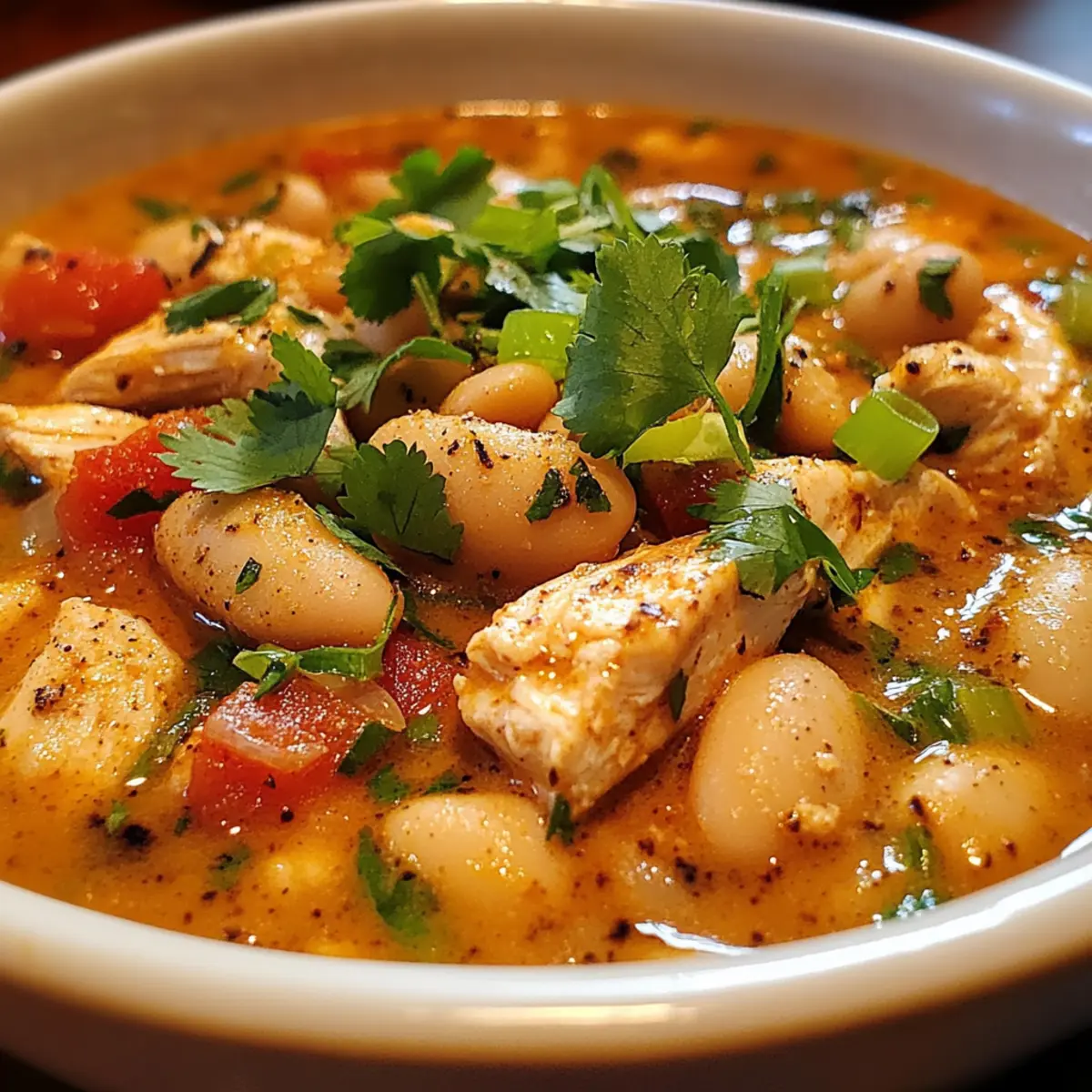 Kennen Sie das Gefühl, wenn die Temperaturen sinken und Sie sich nach etwas Wärmendem sehnen? Dann ist mein Cajun Weiße Hühner-Chili genau das Richtige für Sie! Diese cremige und würzige Köstlichkeit bringt nicht nur Komfort in Ihre Küche, sondern ist auch in weniger als einer Stunde zubereitet – ideal für hektische Abende oder gesellige Zusammenkünfte mit Freunden. Dank der herzhaften weißen Bohnen und dem zarten Hühnerfleisch ist dieses Gericht nicht nur glutenfrei, sondern auch eine echte Proteinbombe. Es erfüllt die Seele und sorgt zugleich für ein wenig Abenteuer auf dem Teller. Neugierig, wie Sie sich eine Schüssel voll wohltuender Wärme zaubern können? Lassen Sie uns gleich ans Kochen gehen!