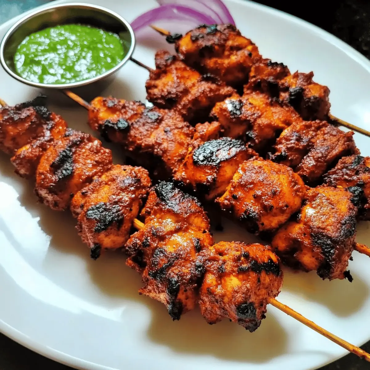 Zwischen den Geschichten indischer Feste und den Aromen, die die Sinne betören, wartet ein wahres Highlight auf uns: Chicken Angara Kabab. Diese köstlichen, feurigen Spieße aus zart mariniertem Hähnchen sind nicht nur eine Augenweide, sondern auch ein absolutes Muss auf jeder Feier. Mit einer geschickten Mischung aus Gewürzen, die beim Grillen einen rauchigen Geschmack entfalten, sind diese Kababs die perfekte Ergänzung für dein nächstes geselliges Beisammensein. Egal, ob im Ofen, auf der Grillpfanne oder am Holzkohlegrill zubereitet, der unvergleichliche Geschmack wird sicher alle Gäste begeistern. Zudem lässt sich diese herrliche Delikatesse ruck, zuck zubereiten und macht sie zur idealen Wahl für stressfreie Vorbereitungen. Bist du bereit, deine Gäste mit diesen geschmackvollen Hähnchen-Kababs zu überraschen? Warum solltest du Chicken Angara Kabab probieren? Einzigartiger Geschmack: Die geheime Angara-Marinade sorgt für eine erlesene Mischung aus Gewürzen, die jeden Bissen zum Erlebnis macht. Einfach zuzubereiten: Mit nur wenigen Schritten kannst du diese köstlichen Kababs im Ofen oder auf dem Grill zubereiten. Vielseitigkeit: Diese Kababs sind perfekt für Feste, aber auch eine wunderbare Hauptspeise für ein entspanntes Abendessen. Geselliges Kochen: Verwandele dein nächstes Treffen in ein Fest, indem du deine Gäste einlädst, beim Grillen oder Würzen zu helfen, wie bei unserem zarten geschmorten Rinderkurzbraten. Überraschende Textur: Die kababs sind außen schön knusprig, dabei innen saftig – ein echter Genuss! Kreative Variationen: Probiere Alternativen mit Paneer oder Tofu oder variiere das Rezept mit unseren Rinderrouladen mit Enoki Pilzen für eine vegetrarische Option. Hähnchen Angara Kabab Zutaten • Um sicherzustellen, dass deine Chicken Angara Kabab perfekt gelingen, sind hier die wichtigen Zutaten, die du brauchst. Für die Marinade Boneless Chicken – Essentiell für zarte Kababs; benutze Brustfilets oder Oberschenkel, in 2,5 cm große Stücke geschnitten. Garlic – Fügt Pikanter hinzu; grob gehackter Knoblauch verstärkt den Geschmack. Ginger – Liefert Wärme und Frische; grob gewürfelt für einfaches Mischen. Yogurt – Sorgt für Feuchtigkeit und Zartheit; die ungesüßte Variante bevorzugt. Dry Kashmiri Red Chilies – Schlüssel für die lebendige Farbe und den Geschmack; vor der Verwendung kochen, um sie leichter zu pürieren. Almond Flour – Fügt Reichtum hinzu; kann durch Mandelpaste ersetzt werden, um zusätzliche Cremigkeit zu erhalten. Tomato Paste – Trägt zur Feuchtigkeit und Umami bei. Mustard Oil – Verbessert den Geschmack mit einem charakteristischen Biss. Lemon Juice – Verleiht Helligkeit und balanciert die Gewürze. Salt – Essentiell zum Würzen; nach Geschmack anpassen. Ghee – Zum Bestreichen der Kababs für zusätzlichen Reichtum und Geschmack. Für die Gewürze Paprika – Gibt Farbe und einen milden Geschmack. Chaat Masala – Fügt einen einzigartigen Geschmack hinzu, der für die indische Küche charakteristisch ist. Coriander Powder – Würzt mit frischer Kräuter-Note. Star Anise Powder – Sorgt für eine komplexe und aromatische Tiefe. Garam Masala – Verleiht eine traditionelle indische Geschmacksbasis. Tandoori Masala – Rundet die Marinade und verstärkt den Geschmack. Für die Zubereitung Charcoal – Für die Dhungar-Methode zur Infusion von rauchigem Geschmack; muss vorsichtig gehandhabt werden. Step-by-Step Instructions für Spicy Chicken Angara Kabab Step 1: Hähnchen vorbereiten Wasche die Hähnchenstücke gründlich unter fließendem Wasser und tupfe sie mit Küchenpapier trocken. Achte darauf, dass die Stücke gleichmäßig groß sind, etwa 2,5 cm, um eine gleichmäßige Garzeit zu gewährleisten. Step 2: Marinade zubereiten Koche die trockenen Kashmiri-Chilischoten bis sie weich sind. Püriere dann zusammen mit grob gehacktem Knoblauch und Ingwer in einem Mixer zu einer glatten Paste. Diese würzige Mischung gibt den Chicken Angara Kabab den charakteristischen Geschmack. Step 3: Hähnchen marinieren Mische in einer großen Schüssel die Chili-Paste mit Joghurt, Tomatenmark, Mandelmehl, Senföl, Zitronensaft und allen Gewürzen. Gib die Hähnchenstücke hinzu und vermenge alles gut, bis das Hähnchen gleichmäßig mit der Marinade bedeckt ist. Step 4: Marinieren lassen Decke die Schüssel mit Frischhaltefolie ab und stelle sie über Nacht in den Kühlschrank. Dies ermöglicht eine komplexe Geschmacksentwicklung, sodass die Chicken Angara Kabab besonders zart und würzig werden. Step 5: Hähnchen aufspießen Stecke die marinierten Hähnchenstücke dicht auf Metallspieße. Wenn du Holzspieße verwendest, weiche sie vorher in Wasser ein, um ein Verbrennen während des Grillens zu verhindern. Achte darauf, dass die Stücke nicht zu locker sitzen, damit sie beim Grillen nicht auseinanderfallen. Step 6: Backofen vorheizen Heize den Ofen auf 190 °C (375 °F) vor. Lege die Spieße auf ein geöltes Backgitter und stelle sicher, dass sie gut platziert sind, damit die Luft zirkulieren kann. Step 7: Hähnchen backen Backe die Spieße etwa 40 Minuten lang. Wende die Spieße nach der Hälfte der Zeit und bestreiche sie mit Ghee, um eine schöne, goldene Kruste und zusätzlichen Geschmack zu erzielen. Step 8: Hähnchen broilen Schalte den Ofen auf die Grillfunktion und grille die Kababs für 5-6 Minuten, bis sie an den Rändern leicht angebrannt sind und eine appetitliche Farbe haben. Achte genau darauf, um ein Überbräunen zu vermeiden. Step 9: Dhungar-Methode anwenden Erhitze während des Grillens Holzkohle, bis sie rotglühend ist. Lege sie in ein kleines Gefäß, gieße etwas Ghee darüber und decke es gut ab. Lasse die Kababs 10 Minuten lang ziehen, um das rauchige Aroma der Chicken Angara Kabab zu intensivieren, bevor du sie servierst. Was passt gut zu Chicken Angara Kabab? Genieße ein festliches Essen, das deine Sinne betört und deinen Gästen ein unvergessliches Geschmackserlebnis bietet. 