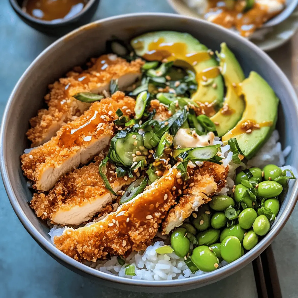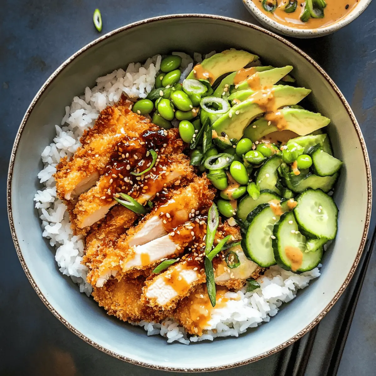 Ein unvorhergesehener Geruch durchzog meine Küche, als ich mit dem Zubereiten von Chicken Katsu Bowls begann. Der knusprige, panko-beschichtete Hähnchenfilet, der perfekt zu einem erfrischenden Gurken-Edamame-Salat passt, hat das Potenzial, selbst den hektischsten Wochentag in ein kulinarisches Fest zu verwandeln. Diese schnelle und einfache Mahlzeit ist nicht nur in nur 30 Minuten zubereitet, sondern auch anpassbar, damit jedes Familienmitglied seine eigene kreative Schüssel mit verschiedenen Saucen und Toppings gestalten kann. Die Kombination aus knusprigem Hähnchen, knackigem Gemüse und einer cremigen Sauce macht diese Chicken Katsu Bowls zu einem absoluten Publikumsliebling, der sowohl bei Erwachsenen als auch bei Kindern gut ankommt. Bist du bereit, etwas Magie in deiner eigenen Küche zu entfalten? Warum wirst du dieses Rezept lieben? Einfachheit: Die Zubereitung ist schnell und unkompliziert, sodass du in nur 30 Minuten ein köstliches Essen auf den Tisch zaubern kannst. Vielfältige Anpassungsmöglichkeiten: Jeder kann seine eigene Schüssel mit verschiedenen Toppings und Saucen nach Geschmack gestalten, was die Mahlzeit zu einem spaßigen Erlebnis für die ganze Familie macht. Knuspriger Genuss: Mit der panko-beschichteten Hähnchenschicht erhältst du einen unverwechselbaren Crunch, der wirklich das Beste aus beiden Welten vereint: zartes Fleisch und eine knusprige Kruste. Gesunde Frische: Der Gurken-Edamame-Salat bringt eine erfrischende Komponente ins Spiel und ergänzt perfekt das Hähnchen. Klassisch und modern: Diese Chicken Katsu Bowls kombinieren traditionelle Aromen mit einem modernen Twist. Für weitere gesunde Alternativen schau dir auch unser Rezept für Spinat Feta Einfach an! Zutaten für Chicken Katsu Bowls Note: Hier sind die Zutaten für die köstlichen Chicken Katsu Bowls, die in 30 Minuten zubereitet werden. Für den Gurkensalat • Sojasauce – verleiht einen umami Geschmack; kann durch Tamari für glutenfreies Kochen ersetzt werden. • Reisessig – sorgt für die nötige Säure; kein direkter Ersatz, aber weißer Essig kann als letzte Option dienen. • Zucker – süßt das Dressing, für eine natürliche Alternative kann auch Ahornsirup oder Honig verwendet werden. • Sesamöl – bringt ein nussiges Aroma; kann durch Avocadoöl ersetzt werden, falls nicht verfügbar. • Sriracha – optionale Schärfe; kann weggelassen oder durch eine milde Chilipaste ersetzt werden. • Englische Gurke – sorgt für Knackigkeit und Frische; kann durch gewürfelten Sellerie oder Radieschen ersetzt werden. • Edamame – liefert Protein und Textur; gekochte Erbsen sind eine gute Alternative. • Frühlingszwiebeln – geben einen milden Zwiebelgeschmack; können durch fein gehackte Zwiebeln oder Schnittlauch ersetzt werden. • Frischer Ingwer – fügt Wärme und Würze hinzu; gemahlener Ingwer kann verwendet werden, aber frisch ist besser. Für das Hähnchen • Hähnchenfilets – die Hauptproteinquelle; kann durch Hähnchenbrust oder Tofu für eine vegetarische Option ersetzt werden. • Allzweckmehl – hilft, das Ei am Hähnchen haften zu lassen; für glutenfrei kann Mandelmehl verwendet werden. • Eier – binden die Panade; Leinsamenmehl mit Wasser kann als Ei-Ersatz dienen. • Panko-Brösel – sorgt für eine krosse Kruste; reguläre Paniermehl kann verwendet werden, allerdings wird die Kruste weniger knusprig. • Salz – verstärkt den Geschmack; je nach persönlichem Geschmack anpassen, besonders für low-sodium Diäten. • Gemüseöl – wird zum Braten des Hähnchens verwendet; kann durch Raps- oder Erdnussöl ersetzt werden. Für die Schüssel • Gekochter weißer Reis – die Basis für die Schüssel; brauner Reis kann für eine gesündere Option verwendet werden. • Avocado – sorgt für Cremigkeit; kann weggelassen oder mit gewürfeltem festen Tofu ersetzt werden. • Mayonnaise – verleiht der Sauce Reichhaltigkeit; griechischer Joghurt kann für eine leichtere Variante verwendet werden. • Sesamkörner – optionale Garnitur für zusätzlichen Crunch und Geschmack; kann weggelassen werden, wenn gewünscht. Schritt-für-Schritt-Anleitung für Krosse Chicken Katsu Bowls Schritt 1: Gurkensalat zubereiten In einer Schüssel Sojasauce, Reisessig, Zucker, Sesamöl und Sriracha gut verrühren, bis der Zucker aufgelöst ist. Fügen Sie dann die gewürfelte englische Gurke, die Edamame, die geschnittenen Frühlingszwiebeln und den frisch geriebenen Ingwer hinzu. Alles gut vermengen und den Salat für mindestens 10 Minuten ruhen lassen, damit die Aromen sich entfalten können. Schritt 2: Sriracha-Mayonnaise vorbereiten In einer kleinen Schüssel die Mayonnaise und die Sriracha gründlich miteinander vermengen. Passen Sie die Schärfe nach Ihrem Geschmack an, indem Sie mehr oder weniger Sriracha hinzufügen. Diese würzige Mayonnaise wird später über die Katsu Bowls gegeben und sorgt für einen cremigen, pikanten Extra-Kick. Schritt 3: Hühnchen panierieren Die Hähnchenfilets leicht flachklopfen und mit einer Prise Salz würzen. Richten Sie eine Panierstation ein, indem Sie drei Schalen vorbereiten: eine mit Allzweckmehl, eine mit geschlagenem Ei und eine mit Panko-Bröseln. Zuerst jedes Hähnchenfilet in das Mehl tauchen, dann in das Ei und schließlich in die Panko-Brösel, um eine gleichmäßige, knusprige Schicht zu erhalten. Schritt 4: Hähnchen braten In einer großen Pfanne das Gemüseöl bei mittlerer Hitze erhitzen. Sobald das Öl heiß ist (es sollte leicht klirren), die panierten Hähnchenfilets vorsichtig hineingeben. Braten Sie die Filets für 2-3 Minuten auf jeder Seite, bis sie goldbraun und durchgegart sind. Anschließend die fertigen Stücke auf Küchenpapier abtropfen lassen, um überschüssiges Öl zu entfernen. Schritt 5: Schüsseln zusammenstellen Die gekochte weiße Reisbasis gleichmäßig in Schalen verteilen. Ihre vorbereiteten Gurkensalat und die in Scheiben geschnittenen Avocados über den Reis geben. Legen Sie di
