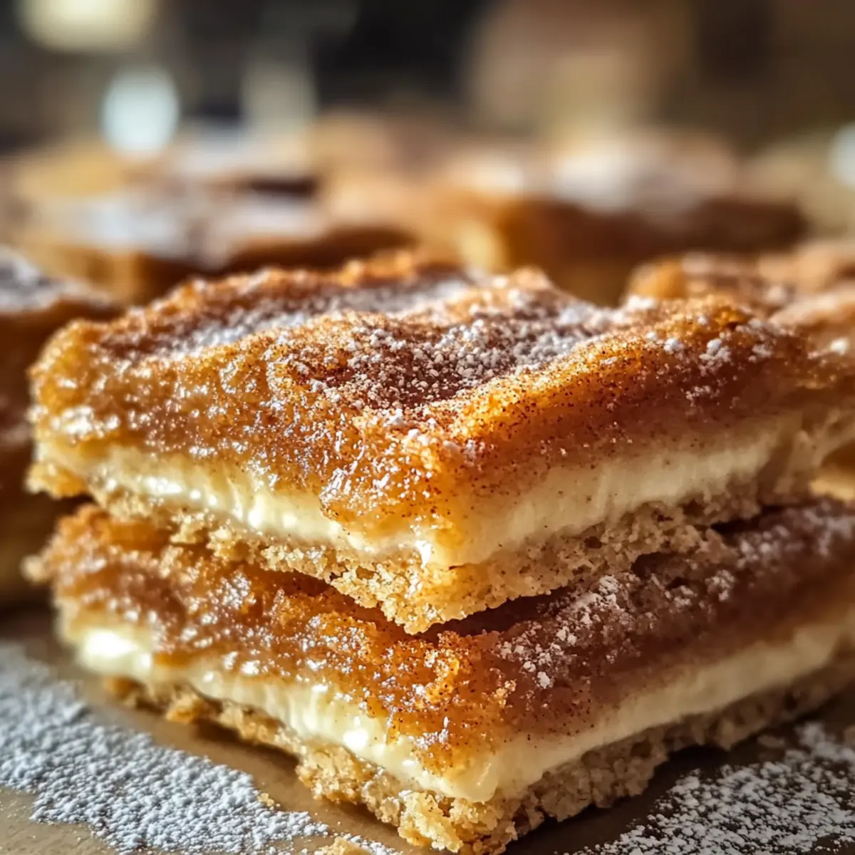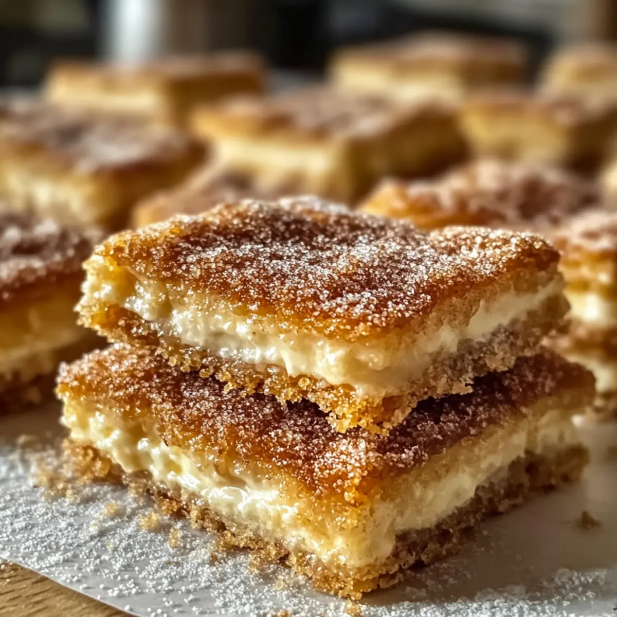 Während ich die Küchentür öffnete, umfing mich der verlockende Duft von Karamell und Zimt, der die Luft erfüllte. Es ist kaum zu fassen, wie einfach es sein kann, eine solche Geschmacksexplosion mit den Churro Saltine Toffee Bars zu kreieren! Diese himmlischen Leckerbissen vereinen die süße, salzige und knusprige Textur, die wir so sehr lieben, ohne die Mühe des Frittierens. Perfekt für jeden Anlass, lassen sie sich in Windeseile zubereiten und sind ein absoluter Publikumsmagnet. Ob für eine Feier oder einfach als süßer Snack für zwischendurch – sie sind die ideale Wahl. Neugierig geworden, wie dieses einfache Rezept deine Dessert-Spielereien bereichern kann? Lass uns gemeinsam in die Zubereitung eintauchen! Warum wirst du dieses Rezept lieben? Einfache Zubereitung: Dieses Rezept ist äußerst unkompliziert und benötigt keine besonderen Backkünste. Süße und Salzigkeit: Die Kombination aus süßem Karamell und salzigen Salzine-Crackern sorgt für eine ideale Geschmacksharmonie. Köstliche Textur: Der knusprige Biss der Salzine trifft auf die cremige Toffee-Schicht – ein echter Genuss! Vielfältige Variationen: Ob mit Schokolade überzogen oder mit Nüssen ergänzt, du kannst kreativ sein. Perfekt für jeden Anlass: Diese Leckerei zieht garantiert alle Blicke auf sich, egal ob bei Feiertagen oder gemütlichen Abenden. Kaffee-Begleiter: Serviere sie zusammen mit einer Tasse Kaffee oder heißer Schokolade für einen rundum gelungenen Genuss! Churro Saltine Toffee Zutaten • Neugierig auf die köstlichen Zutaten? Hier ist, was du brauchst: Für die Salzine-Basis: Salzine-Cracker – liefern die perfekte salzige Basis und erstellen einen köstlichen Kontrast zur süßen Toffee-Glasur. Für die Toffee-Schicht: Butter – sorgt für den Reichtum und die richtige Textur der Toffee; verwende ungesalzene Butter für besseren Geschmack. Brauner Zucker – süßt die Mischung und hilft, die Karamellisierung der Toffee-Schicht zu erreichen. Schlagsahne – macht den Toffee schön cremig und intensiviert den Geschmack. Vanilleextrakt – hebt das gesamte Geschmacksprofil des Toffees hervor. Für das Finish: Zimt – gibt den speziellen Churro-Geschmack; passe die Menge nach deinem persönlichen Geschmack an. Puderzucker – hinterlässt eine süße Staubschicht für eine ansprechende Präsentation. Mach dich bereit, diese Churro Saltine Toffee Bars zu genießen, die eine perfekte Mischung aus lecker und cremig bieten! Schritt-für-Schritt-Anleitung für Churro Salzine Toffee Step 1: Ofen vorheizen und Backblech vorbereiten Heize deinen Ofen auf 175 °C vor und lege ein Backblech mit Backpapier aus. Das Backpapier sorgt dafür, dass die Churro Salzine Toffee Bars nach dem Backen leicht herausgenommen werden können. Achte darauf, dass die gesamte Fläche des Backblechs gut mit Papier ausgekleidet ist, um ein Ankleben zu verhindern. Step 2: Salzine-Cracker anordnen Lege die Salzine-Cracker in einer einzigen Schicht gleichmäßig auf das Backblech. Die Cracker sollten sich nicht überlappen, um eine gleichmäßige Verteilung der Toffee-Schicht zu gewährleisten. Das Salzigkeitsprofil der Crackern wird später die Süße des Toffees wundervoll ergänzen. Step 3: Butter und Zucker schmelzen In einem mittelgroßen Kochtopf die ungesalzene Butter zusammen mit dem braunen Zucker bei mittlerer Hitze schmelzen. Rühre die Mischung kontinuierlich um, bis sie zu blubbern beginnt und eine goldbraune Farbe annimmt, was etwa 5-7 Minuten dauern sollte. Achte dabei darauf, dass die Mischung nicht anbrennt. Step 4: Sahne und Vanille hinzufügen Nehme den Kochtopf vom Herd und füge vorsichtig die Schlagsahne und den Vanilleextrakt hinzu. Rühre kräftig um, bis die Mischung gleichmäßig und cremig ist. Diese Schritte tragen zur perfekten Konsistenz der Toffee-Schicht bei und sorgen für ein intensives Geschmackserlebnis. Step 5: Toffee über die Cracker gießen Gieße die heiße Toffeemischung gleichmäßig über die angeordneten Salzine-Cracker. Sorge dafür, dass jede Cracker-Oberfläche mit der köstlichen Mischung bedeckt ist. Diese Schicht verleiht den Bars ihre charakteristische Süße, die die salzige Basis perfekt ausbalanciert. Step 6: Backen Backe die Churro Salzine Toffee Bars für etwa 10-12 Minuten im vorgeheizten Ofen. Die Toffee-Schicht sollte anfangen zu blubbern und die Ränder leicht goldbraun werden. Behalte die Bars während des Backens im Auge, um sicherzustellen, dass sie nicht überbacken werden. Step 7: Zimt und Puderzucker bestäuben Sobald die Bars aus dem Ofen kommen, bestreue sie sofort großzügig mit einer Mischung aus Zimt und Puderzucker. Dies verleiht den Churro Salzine Toffee Bars das charakteristische churroartige Aroma und sorgt für eine süße, einladende Oberfläche. Step 8: Abkühlen und in Riegel schneiden Lass die Toffee Bars vollständig abkühlen, bevor du sie in Riegel schneidest. Es ist wichtig, dass du Geduld hast, da das frühzeitige Schneiden dazu führen kann, dass die Bars zerbrechen. Nach dem Abkühlen sind sie bereit, serviert zu werden oder in einem luftdichten Behälter aufbewahrt zu werden. Aufbewahrungstipps für Churro Saltine Toffee Zimmertemperatur: Bewahre die Churro Saltine Toffee Bars in einem luftdichten Behälter auf, um ihre Frische zu erhalten. Sie sind bei Zimmertemperatur bis zu einer Woche haltbar. Kühlschrank: Wenn du eine längere Haltbarkeit wünschst, kannst du die Bars auch im Kühlschrank aufbewahren. In diesem Fall sind sie bis zu zwei Wochen genießbar. Achte darauf, sie gut zu verpacken, um Feuchtigkeit zu vermeiden. Gefrierfach: Für eine langfristige Lagerung kannst du die Bars einzeln in Frischhaltefolie einwickeln und in einem Gefrierbeutel aufbewahren. So bleiben sie bis zu drei Monate frisch. Auftauen: Lass die gefrorenen Churro Saltine Toffee Bars einfach bei Zimmertemperatur auftauen, und genieße sie dann mit einem heißen Kaffee oder einer Tasse Schokolade! Meal Prep für Churro Saltine Toffee Bars Die Churro