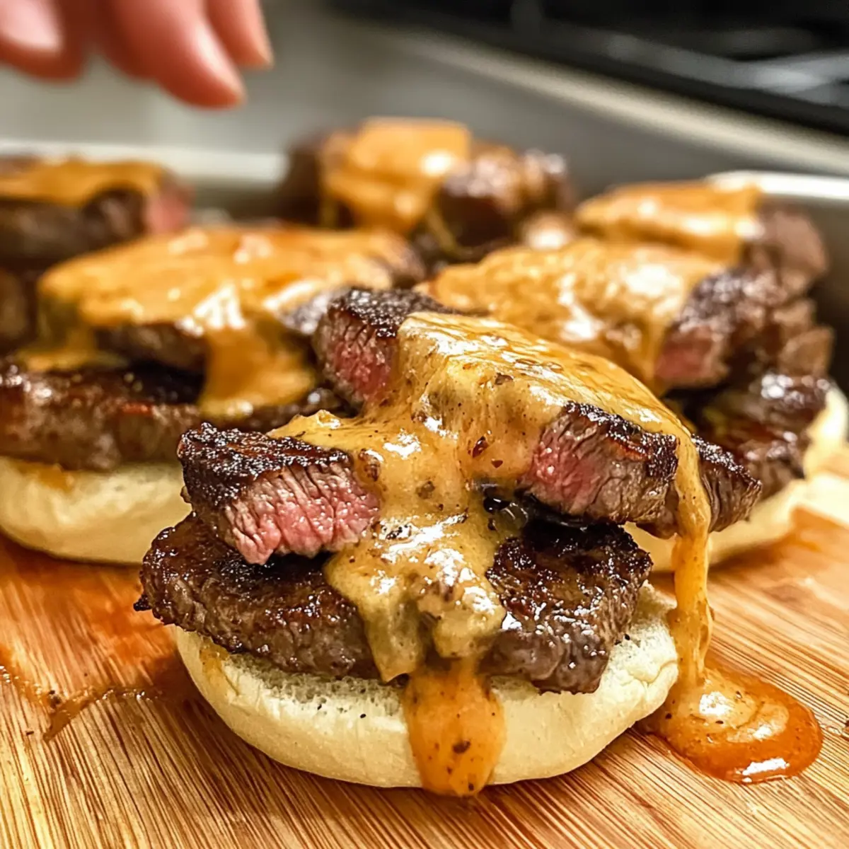 • Zustellung der Zwiebeln:: Karamellisiere die Zwiebeln langsam bei mittlerer Hitze. Hochwertige Zwiebeln verleihen den Sliders eine süße Tiefe, die das Steak wunderbar ergänzt.