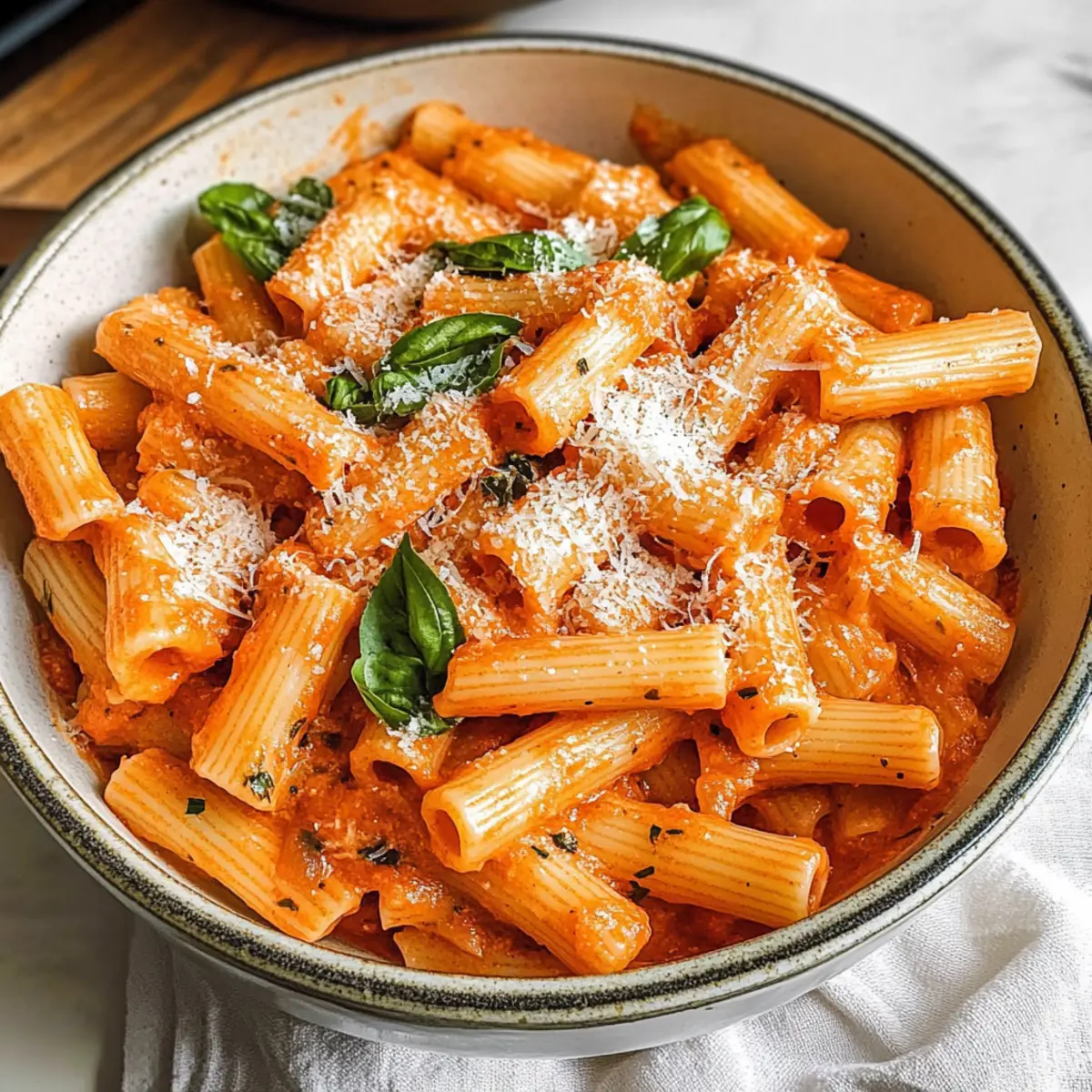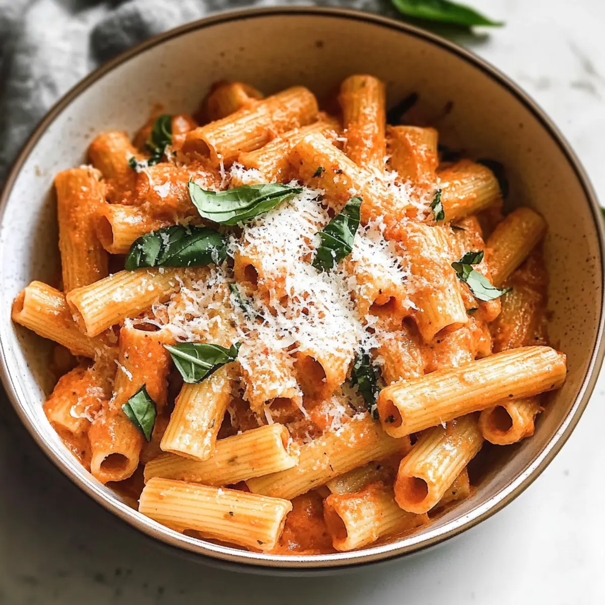 Frische Zutaten verwenden: Verwende frisches Basilikum und frisch geriebenen Parmesan für den besten Geschmack und die ansprechendste Präsentation deiner cremigen gerösteten Paprika-Pasta.