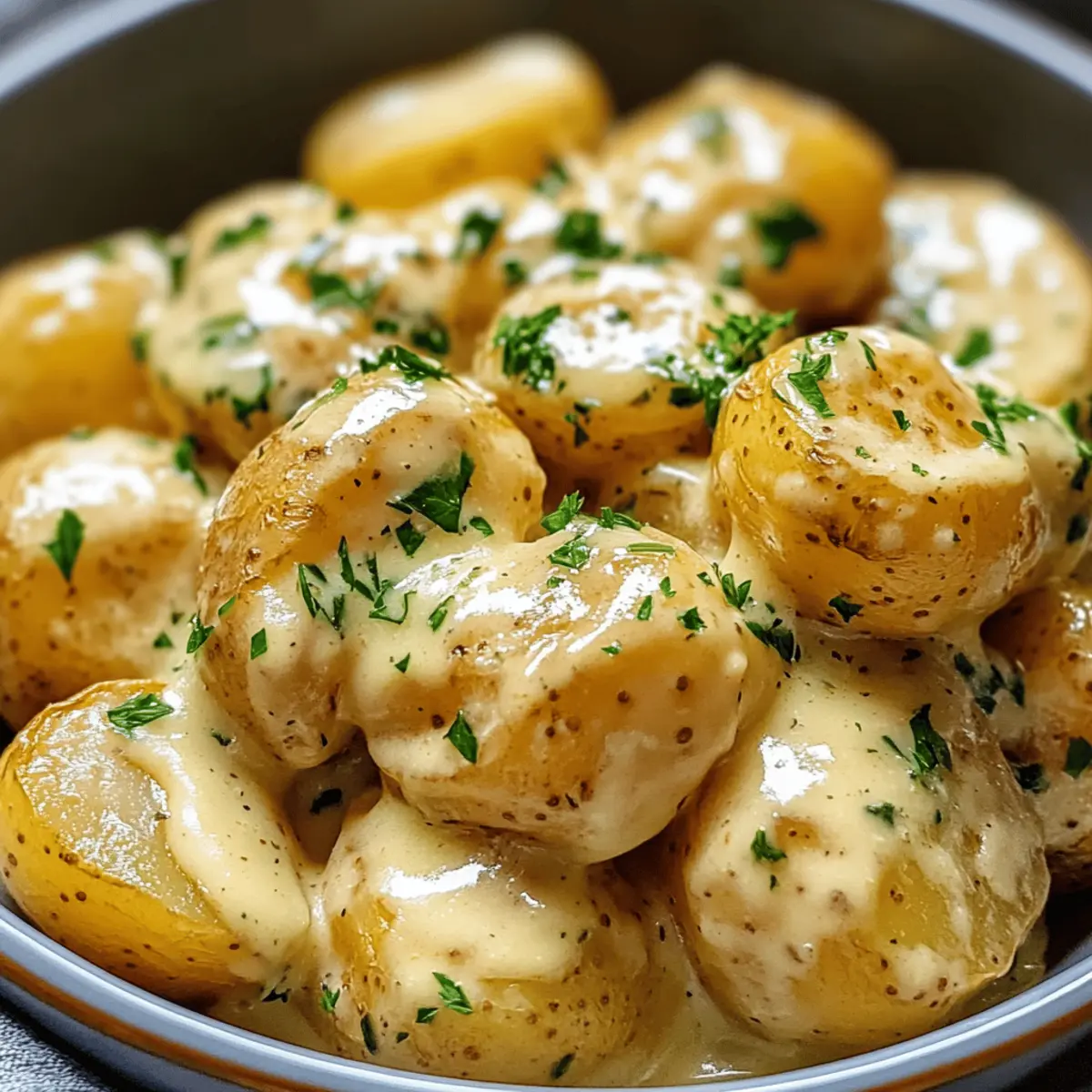 Ein Abendessen mit Freunden, das gemütlich und unvergesslich zugleich ist – was könnte besser sein? Während ich die cremigen Knoblauchsoße Baby-Kartoffeln zubereite, schaue ich auf die lächelnden Gesichter am Tisch und kann kaum erwarten, ihre Reaktionen zu sehen. Diese Schätze aus der Erde sind perfekt für das Abendessen, denn sie sind nicht nur schnell zubereitet, sondern auch ein wahrer Komfort für die Seele. Mit ihrer zarten Textur, umhüllt von einer samtigen, aromatischen Soße, sind sie eine elegante Beilage, die die Herzen aller Gäste erobert. Und das Beste? Sie lassen sich leicht anpassen, um allen Geschmäckern gerecht zu werden – sei es vegetarisch oder vegan. Bereit, das Geheimnis dieser köstlichen Kombination zu entdecken? Warum werden Sie dieses Rezept lieben? Einfachheit: Die Zubereitung erfordert nur grundlegende Kochkenntnisse und ist schnell erledigt. Aromatische Soße: Die Kombination aus frischem Knoblauch und cremiger Textur sorgt für ein Geschmackserlebnis, das niemand widerstehen kann. Flexibilität: Passen Sie das Rezept ganz nach Ihrem Geschmack an: Fügen Sie Kräuter, Käse oder sogar Speck hinzu! Geselligkeit: Diese Kartoffeln sind nicht nur ideal für ein schnelles Abendessen, sondern auch für festliche Anlässe – ein echter Blickfang auf jedem Tisch. Vegan Optionen: Möchten Sie es pflanzlich? Tauschen Sie einfach die Butter gegen pflanzliche Alternativen aus und genießen Sie dennoch die Cremigkeit! Perfekte Beilage: Ob zu Zuckerplaetzchen Rezept Gelingen oder Pistazien Traum Kekse, diese Kartoffeln ergänzen jedes Hauptgericht perfekt. Cremige Knoblauchsoße Baby-Kartoffeln Zutaten • Für die Kartoffeln Baby-Kartoffeln – zarte Grundlage für das Gericht; rote, gelbe oder gemischte Sorten eignen sich hervorragend. Olivenöl oder Butter – sorgt für Reichhaltigkeit und hilft beim Anbraten des Knoblauchs; wähle ungesalzene Butter für kontrollierte Würze. • Für die Knoblauchsauce Knoblauch – frischer Knoblauch ist entscheidend für die Geschmacksstärke; gerösteter Knoblauch bietet eine mildere Note. Zwiebel (optional) – fein gehackt für zusätzliche Geschmacksintensität. Schlagsahne – schafft eine cremige, luxuriöse Sauce; Halbfettcreme ist ein leichterer Ersatz. Hühner- oder Gemüsebrühe – verstärkt den Geschmack der Sauce; verwende Gemüsebrühe für eine vegetarische Variante. Salz und schwarzer Pfeffer – wichtig zum Ausbalancieren der Aromen; nach Geschmack anpassen. Getrockneter Thymian oder italienische Gewürzmischung – für kräuterliche Noten, die die Cremigkeit verstärken. Parmesan (optional) – fügt der Sauce nussige Tiefe hinzu. Frische Petersilie – zur Garnitur, die das Gericht visuell aufhellt. Schritt-für-Schritt-Anleitung für Cremige Knoblauchsoße Baby-Kartoffeln Schritt 1: Kartoffeln vorbereiten Wasche die Baby-Kartoffeln gründlich und schrubbe sie, um Schmutz zu entfernen. Wenn die Kartoffeln größer sind, halbiere sie, sodass sie gleichmäßig garen. Stelle sicher, dass sie gut vorbereitet sind, um die perfekte Textur in der cremigen Knoblauchsoße zu erreichen. Schritt 2: Kartoffeln kochen Koche die vorbereiteten Baby-Kartoffeln in einem Topf mit leicht gesalzenem Wasser. Bring das Wasser zum Kochen und lasse die Kartoffeln etwa 12 bis 15 Minuten lang kochen, bis sie mit einer Gabel zart sind. Nach dem Kochen die Kartoffeln abgießen und beiseite stellen, während du die cremige Knoblauchsoße zubereitest. Schritt 3: Knoblauchcreme-Sauce herstellen Erhitze in einer großen Pfanne bei mittlerer Hitze das Olivenöl oder die Butter. Füge den fein gehackten Knoblauch hinzu und, falls gewünscht, auch die Zwiebel. Sauté diesen Mix für 1-2 Minuten, bis der Knoblauch aromatisch und leicht golden ist. Achte darauf, dass er nicht anbrennt, da dies den Geschmack beeinträchtigen kann. Schritt 4: Sahne und Gewürze hinzufügen Gieße die schwere Sahne und die Brühe in die Pfanne und rühre die Mischung gut um. Würze die Sauce mit Salz, frisch gemahlenem schwarzem Pfeffer und getrocknetem Thymian oder italienischen Gewürzen. Lass die Sauce 3-4 Minuten lang köcheln, bis sie leicht eindickt und die Aromen gut verschmelzen. Schritt 5: Kombinieren und servieren Füge die gegarten Baby-Kartoffeln direkt in die Pfanne mit der cremigen Knoblauchsoße hinzu. Wenn du möchtest, kannst du auch den geriebenen Parmesan einrühren, um zusätzliche Cremigkeit und Geschmack zu verleihen. Lasse die Kartoffeln in der Sauce für weitere 2-3 Minuten köcheln, damit sie den köstlichen Geschmack aufnehmen. Schritt 6: Anrichten und garnieren Serviere die cremigen Knoblauchsoße Baby-Kartoffeln heiß auf einem schönen Servierteller. Garniere das Gericht mit frisch gehackter Petersilie, um ihm einen farbenfrohen Akzent zu verleihen. Diese Beilage wird sicherlich jedem gefallen und deinen Tisch elegant aufwerten. Variationen der cremigen Knoblauchsoße Baby-Kartoffeln Lass deiner Kreativität freien Lauf und passe dieses Rezept nach deinem Geschmack an! Vegan: Ersetze die Butter durch pflanzliches Öl und benutze eine pflanzliche Sahne für die cremige Note. Käse-Variation: Füge geriebenen Parmesan oder Mozzarella hinzu, um eine extra cremige Textur zu erhalten. Würzige Note: Gib eine Prise rote Pfefferflocken oder einen Spritzer scharfer Sauce für einen feurigen Kick dazu. Speck: Mische knusprige Baconstücke unter die Kartoffeln für eine herzhafte, rauchige Note. Frische Kräuter: Experimentiere mit frischem Dill, Basilikum oder Thymian, um besondere Geschmäcker zu entfalten. Gerösteter Knoblauch: Verwende gerösteten Knoblauch anstelle von frischem, um eine süßere und mildere Sauce zu kreieren. Zwiebeln: Füge sautierte Zwiebeln für zusätzliche Geschmackstiefe hinzu. Lemon-Boost: Ein Spritzer frischer Zitronensaft am Ende bringt Frische und belebt die Aromen. Entdecke auch meine anderen köstlichen Rezepte wie die Zuckerplätzchen Rezept Gelingen für weitere Inspiration, die sowohl einfach als 
