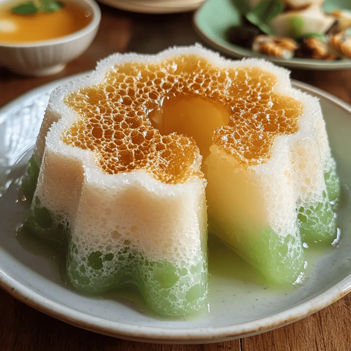 Als ich neulich in einem kleinen vietnamesischen Café saß, überwältigte mich der verführerische Duft von frisch gedämpften Bánh Bò Nướng. Dieser Dampfkuchen, der für seine einzigartige Honigkombenstruktur bekannt ist, verbindet geschmacklich hervorragend die Aromen von Kokosnuss und Pandan. Diese glutenfreie Delikatesse ist nicht nur einfach zuzubereiten, sondern auch ein echter Hingucker auf jeder Tischdekoration. Mit seiner zähen Konsistenz und dem süßen, aromatischen Geschmack ist er ein perfektes Dessert für besondere Anlässe oder einfach, um sich selbst zu verwöhnen. Und das Beste daran? Du kannst ihn ganz nach deinem Geschmack variieren! Hast du schon darüber nachgedacht, mit verschiedenen Aromen wie Ube oder Matcha zu experimentieren? Lass uns gemeinsam in die Welt des Steamed Vietnamese Honeycomb Cake eintauchen!