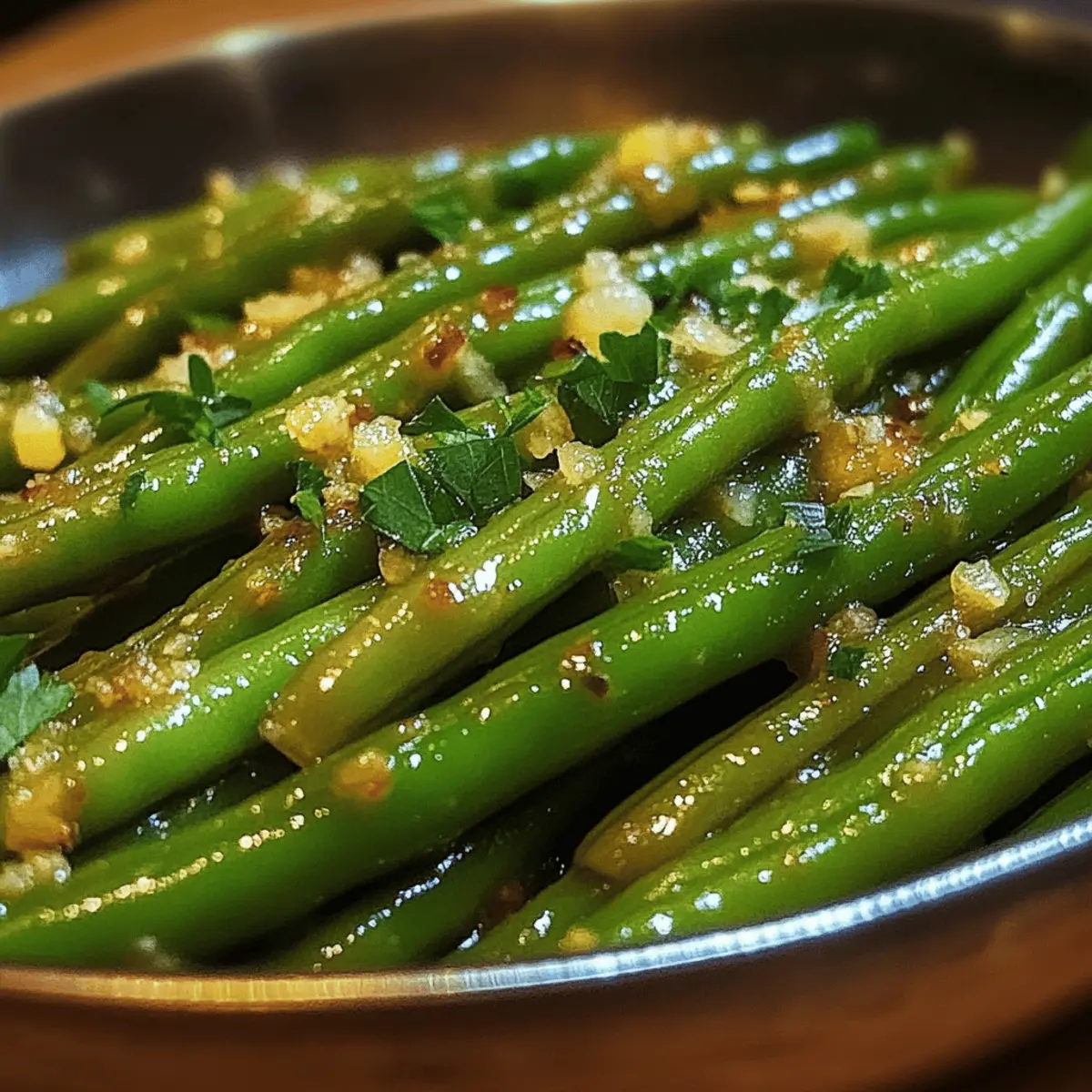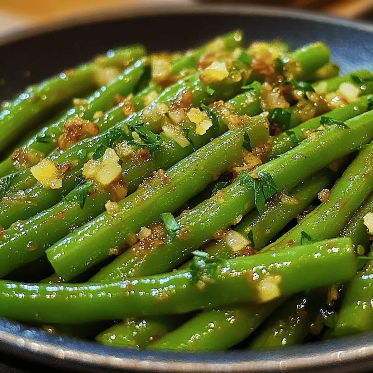 Während ich in der Küche stehe und die frischen grünen Bohnen wasche, erfüllt der aromatische Duft von Knoblauchbutter den Raum und weckt Erinnerungen an familiäre Abendessen und gemütliche Zusammenkünfte. Dieses Rezept für „Savory Garlic Butter Green Beans“ ist nicht nur einfach zuzubereiten, sondern spricht auch die Herzen aller an, die hausgemachtes Essen lieben. In nur 20 Minuten verwandelst du knackige grüne Bohnen in eine köstliche Beilage, die mit einer Vielzahl von Hauptgerichten harmoniert. Dieses Gericht ist glutenfrei und kalorienarm – ein wahres Freude für alle, die gesund essen möchten, ohne auf den vollen Geschmack zu verzichten. Willst du wissen, wie du diesen herzhaften Genuss noch individueller gestalten kannst? Lass uns gemeinsam die Zubereitung erkunden! Warum sind diese Bohnen ein Muss? Einfachheit: Dieses Rezept ist kinderleicht und benötigt nur grundlegende Küchentechniken. In nur 20 Minuten zauberst du eine köstliche Beilage! Vielseitigkeit: Die grünen Bohnen lassen sich wunderbar mit anderen Gemüsesorten oder sogar Proteinen kombinieren. Probiere dazu z.B. die Feta Quesadillas Rezept! Gesundheitlich vorteilhaft: Mit nur 100–120 Kalorien pro Portion ist diese Beilage nicht nur schmackhaft, sondern auch nährstoffreich und glutenfrei. Aromatischer Genuss: Die Kombination aus Knoblauch, Zitrone und Kräutern verleiht jedem Bissen einen besonderen Kick. Familienfreundlich: Jeder wird diese Bohnen lieben, ob als Beilage zu gegrilltem Fleisch oder zu einem vegetarischen Gericht. Perfekt für jede Gelegenheit! Die Zutaten für Knoblauchbutter-Grüne Bohnen • Diese Beilage ist nicht nur einfach, sondern auch gesund und lecker – perfekt für jeder, der das Ausgeben liebt! Für die Bohnen Frische grüne Bohnen – Sie sind die Hauptzutat und sorgen für Farbe und Crunch. Alternativ: Gefrorene grüne Bohnen (vor der Verwendung auftauen). Unausgesalzene Butter – Fügt den Bohnen eine reiche, buttrige Note hinzu. Alternativ: Verwende Olivenöl für eine leichtere Variante. Für das Aroma Knoblauch (5 Zehen, gehackt) – Unentbehrlich für den Geschmack und verleiht Wärme und Aroma. Hinweis: Frisch gehackt ist am besten; vorgehackten Knoblauch vermeiden. Salz (1 Teelöffel) – Verstärkt die natürlichen Aromen des Gerichts. Geschmack anpassen. Schwarzer Pfeffer (1/2 Teelöffel) – Fügt eine subtile Schärfe hinzu. Optional: Frisch gemahlen ist bevorzugt für besseren Geschmack. Für die Frische Zitronensaft (1 Esslöffel) – Sorgt für die nötige Frische und hebt den Geschmack. Frisch gepresst ist ideal. Zitronenschale – Fügt aromatische Öle und Tiefe hinzu. Rote Pfefferflocken (1/4 Teelöffel, optional) – Fügt eine zusätzliche Schärfe hinzu, je nach Vorliebe. Frische Petersilie – Zum Garnieren, verleiht Farbe und einen frischen Kräutergeschmack. Schritt-für-Schritt-Anleitung für das Ausgeben von Knoblauchbutter-Grünen Bohnen Step 1: Grüne Bohnen blanchieren Bring einen Topf mit gesalzenem Wasser zum Kochen und füge die frischen grünen Bohnen hinzu. Koche sie für 3-4 Minuten, bis sie leuchtend grün und zart-knackig sind. Anschließend die Bohnen mit einem Schöpflöffel herausnehmen und sofort in eine Schüssel mit Eiswasser geben, um den Garprozess zu stoppen und die Farbe zu bewahren. Step 2: Knoblauchbutter zubereiten Erhitze eine Pfanne bei mittlerer Hitze und füge die ungesalzene Butter hinzu. Lass die Butter schmelzen und füge den gehackten Knoblauch hinzu, während du ständig rührst. Sauté den Knoblauch für etwa 1-2 Minuten, bis er duftet und leicht goldbraun ist, aber achte darauf, dass er nicht verbrennt. Step 3: Bohnen anbraten Sobald der Knoblauch duftet, gib die blanchierten grünen Bohnen in die Pfanne. Wende die Bohnen gut, damit sie gleichmäßig mit der aromatischen Knoblauchbutter überzogen werden. Würze die Mischung mit Salz, schwarzem Pfeffer und optionalen roten Pfefferflocken. Brate die Bohnen für weitere 5-6 Minuten, bis sie warm und leicht gebräunt sind. Step 4: Mit Zitrone abschließen Reduziere die Hitze und gieße den frisch gepressten Zitronensaft sowie die Zitronenschale über die Bohnen in der Pfanne. Rühre alles gut um, sodass die Bohnen gleichmäßig mit der Zitrone überzogen werden. Diese Kombination sorgt für einen erfrischenden Kick in deinem Rezept für das Ausgeben von Knoblauchbutter-Grünen Bohnen. Step 5: Servieren Übertrage die fertig zubereiteten Knoblauchbutter-Grünen Bohnen auf eine Servierplatte. Garniere sie mit frischer Petersilie, um Farbe und eine frische Note hinzuzufügen. Serviere die Bohnen sofort, während sie heiß sind, und genieße diese köstliche und gesunde Beilage zu deinem Lieblingsgericht! Aufbewahrungstipps für Knoblauchbutter-Grüne Bohnen Raumtemperatur: Diese Bohnen sollten nicht bei Raumtemperatur gelagert werden, um die Frische zu bewahren. Kühlschrank: Bewahre Reste in einem luftdichten Behälter im Kühlschrank auf. Sie sind bis zu 3 Tage haltbar. Achte darauf, sie gut zu verschließen, um Austrocknung zu vermeiden. Aufwärmen: Zum Aufwärmen die Bohnen sanft in einer Pfanne bei niedriger Hitze erhitzen oder in der Mikrowelle für 1–2 Minuten aufwärmen, bis sie wieder warm sind. Einfrieren: Knoblauchbutter-Grüne Bohnen können eingefroren werden, jedoch kann die Textur beeinträchtigt werden. Für besten Geschmack innerhalb von 1–2 Monaten verbrauchen. Expertentipps für das Ausgeben von Knoblauchbutter-Grünen Bohnen Knoblauch genau beobachten: Achte darauf, dass der Knoblauch nicht anbrennt, da er schnell bitter werden kann. Halte ihn im Blick, während du ihn brätst. Mittlere Hitze verwenden: Koche die Bohnen bei mittlerer Hitze, um das Aroma optimal zu entfalten und ein Anbrennen zu vermeiden. Bohnen regelmäßig wenden: Wende die grünen Bohnen während des Bratens häufig, damit sie gleichmäßig garen und das köstliche Aroma der Knoblauchbutter absorbieren können. Zitronensaft frisch pressen: Verwende frisch gepressten 