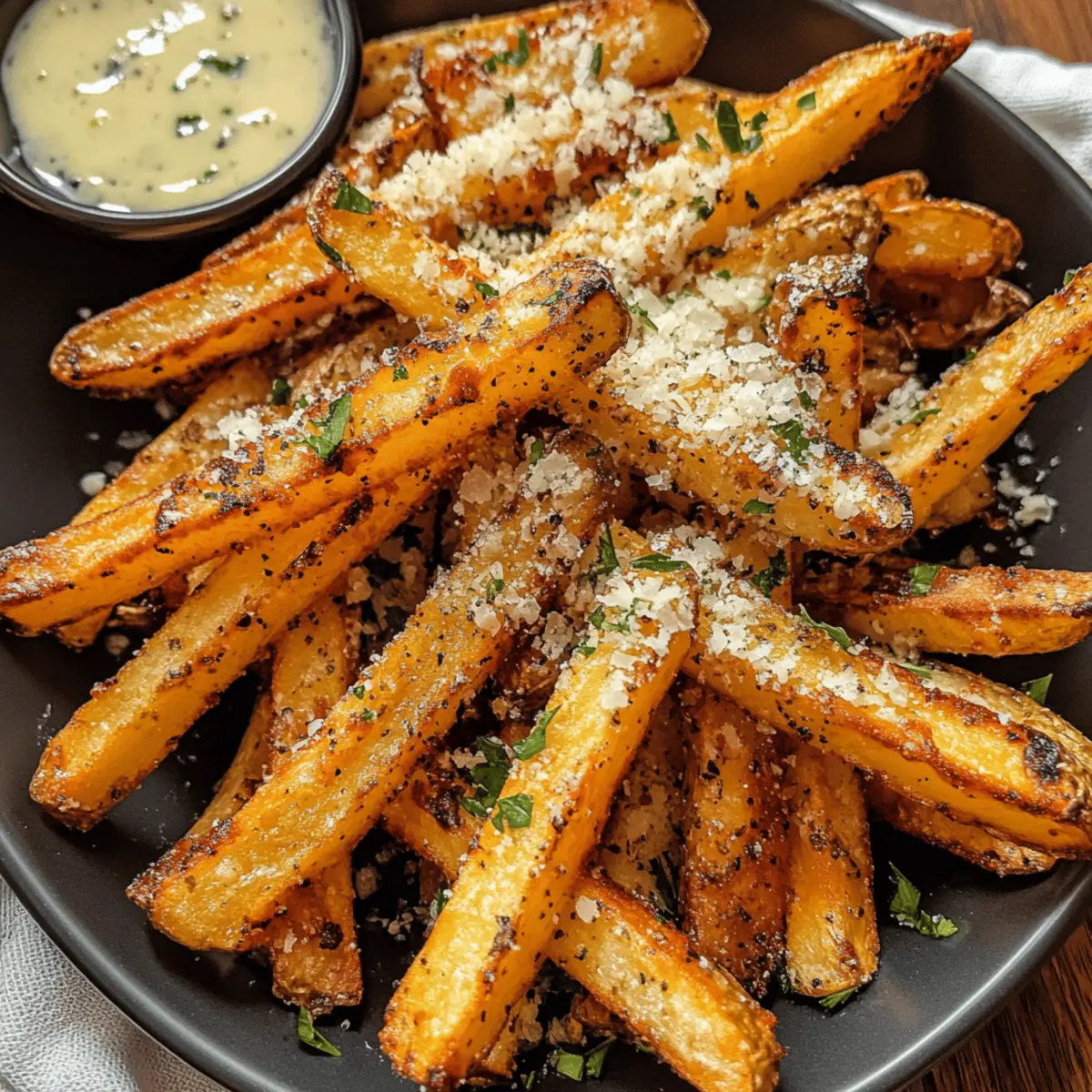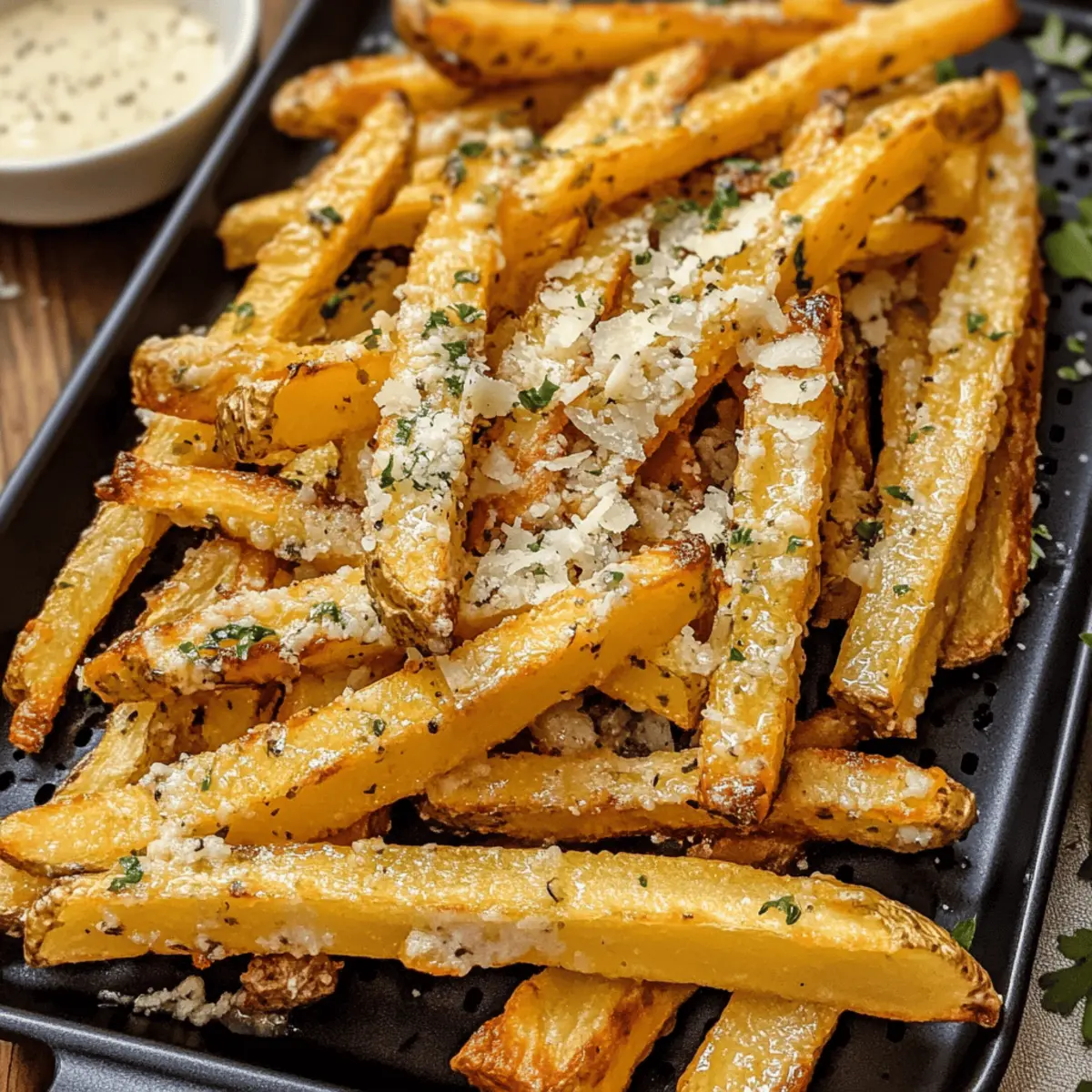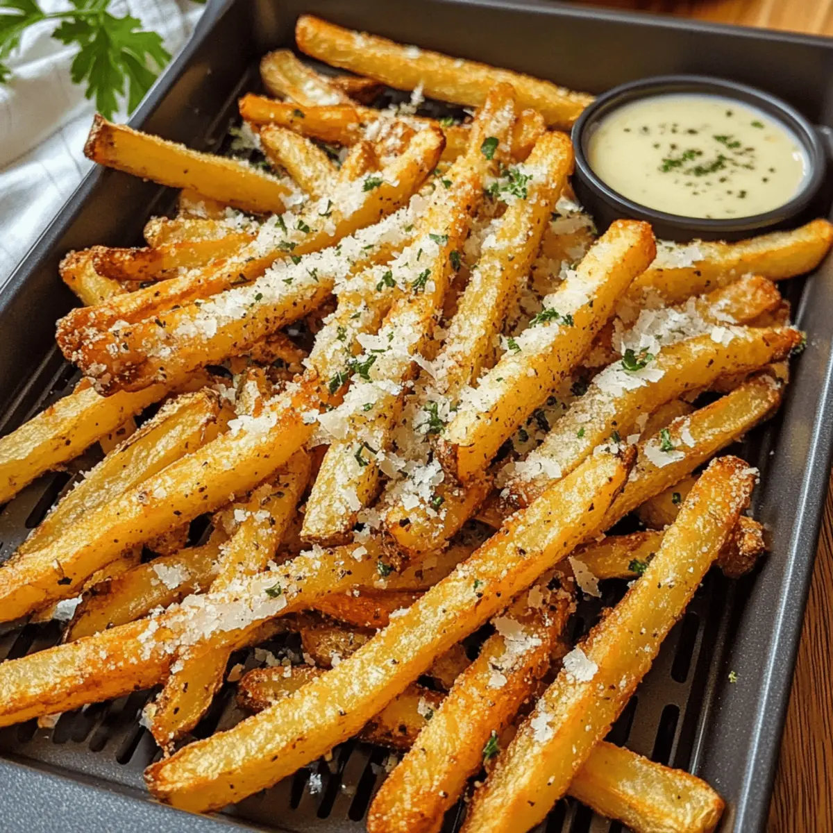 Wenn ich an gemütliche Abende in der Küche denke, kommt mir sofort der verführerische Duft von frisch gebackenen Air Fryer Knoblauch-Parmesan-Pommes in den Sinn. Diese Pommes frites haben eine knackige Außenschicht und ein zartes, schmelzendes Innenleben, das mit aromatischem Knoblauch und würzigem Parmesan überzogen ist – einfach himmlisch! Sie sind nicht nur ein schneller und glutenfreier Snack, sondern auch das perfekte Gericht für Familientreffen oder entspannte Filmabende. Das Beste daran? In nur 30 Minuten kannst du sie zubereiten! Bist du bereit, deine eigenen knusprigen Pommes zu kreieren? Lass uns gemeinsam loslegen! Warum wirst du dieses Rezept lieben? Einfachheit in Vollendung: Die Zubereitung dieser Pommes ist kinderleicht und erfordert nur wenige Handgriffe, sodass jeder sie meistern kann. Vielseitigkeit: Mit unterschiedlichen Kartoffelsorten wie Yukon oder Süßkartoffeln kannst du nach Belieben variieren. Unwiderstehlicher Geschmack: Der aromatische Mix aus Knoblauch und würzigem Parmesan sorgt für einen Geschmack, der süchtig macht – perfekt zu deinen Lieblingsdips! Energie sparen: Dank der schnellen Zubereitungszeit von nur 30 Minuten sind sie eine ideale Lösung für eilige Abende. Gesunde Alternative: Diese glutenfreien Pommes sind nicht nur leicht, sondern auch sättigend und bieten eine gesunde Abwechslung zu Fast Food. Wenn du also auf der Suche nach einer köstlichen Beilage oder einem Snack bist, schau doch auch mal bei unserem Rezept für Parmesan Käse Hühnchen vorbei! Der Ausgang für die Pommes • Kartoffeln – Grundzutat für die Pommes; Substitution: Verwende Yukon, Süßkartoffeln oder Russet für Abwechslung. • Extra Virgin Olivenöl – Sorgt für Feuchtigkeit und hilft, die Knusprigkeit zu erreichen. • Maisstärke – Trägt zur crunchy Textur der Pommes bei. • Knoblauchpulver – Liefert einen reichen Knoblauchgeschmack. • Geräuchertes Paprikapulver – Fügt eine rauchige Note und Farbe hinzu. • Getrocknete Petersilie – Bringt Farbe und milde Kräuteraromen. • Getrocknete Kräuter (Basilikum, Oregano, Thymian) – Verbessern das Geschmacksprofil mit einer kräuterigen Note. • Geriebener Parmesan – Für den charakteristischen Käsegeschmack und fördert die Bräunung. • Knoblauch-Parmesan-Sauce – Optional, als schmackhafte Dip-Sauce. Mach dich bereit, die köstlichsten Air Fryer Knoblauch Parmesan Pommes zu genießen! Step-by-Step Instructions for Crispy Air Fryer Knoblauch Parmesan Pommes Step 1: Kartoffeln vorbereiten Wasche die Kartoffeln gründlich, trocken sie ab und schneide jede Kartoffel in ½ cm dicke Stücke, um “stabähnliche” Formen zu erhalten. Lege die geschnittenen Kartoffeln in eine Schüssel mit Eiswasser und füge Salz hinzu. Lass sie für etwa 20 Minuten einweichen, um die Stärke zu entfernen, was die Knusprigkeit erhöht. Step 2: Kartoffeln trocknen Nachdem die Kartoffeln eingeweicht sind, gieße das Wasser ab und tupfe die Stücke mit einem Küchentuch trocken. Lege die Kartoffeln auf ein paar Papiertücher und lasse sie für 30 Minuten bis 1 Stunde an der Luft trocknen, damit sie die Feuchtigkeit verlieren und eine bessere Textur erhalten. Step 3: Air Fryer vorheizen Heize den Air Fryer auf 200 °C (400 °F) vor und sprühe den Korb leicht mit Kochspray ein, um ein Ankleben der Pommes zu verhindern. Der vorgeheizte Luftfrittierer sorgt dafür, dass die Pommes gleichmäßig und knusprig garen. Step 4: Zutaten mischen In einer großen Schüssel die trockenen Kartoffelscheiben mit dem extra vergine Olivenöl, der Maisstärke, dem Knoblauchpulver, dem geräucherten Paprikapulver, der getrockneten Petersilie, dem Basilikum, dem Oregano, dem Thymian sowie dem geriebenen Parmesan vermengen. Stelle sicher, dass alle Kartoffelstücke gleichmäßig mit der Mischung überzogen sind. Step 5: Pommes frittieren Lege die gewürzten Pommes in den Korb des Air Fryers und koche sie für 10 bis 15 Minuten. Überprüfe nach der Hälfte der Zeit, ob die Pommes goldbraun und zart sind. Schüttle den Korb während des Garens einmal, um eine gleichmäßige Bräunung zu gewährleisten. Step 6: Sauce vorbereiten Optional – wenn du eine Knoblauch-Parmesan-Sauce zum Dippen zubereiten möchtest, folge deinem bevorzugten Rezept, um die perfekte Begleitung zu deinen knusprigen Air Fryer Knoblauch Parmesan Pommes zu kreieren. Meal Prep für Crispy Air Fryer Knoblauch Parmesan Pommes Die Crispy Air Fryer Knoblauch Parmesan Pommes sind ideal für die Wochenvorbereitung! Du kannst die geschnittenen Kartoffeln bis zu 24 Stunden im Voraus einweichen und in Eiswasser aufbewahren, um die Stärke zu entfernen, was die Knusprigkeit erhöht. Nach dem Trocknen können sie bis zu 3 Tage im Kühlschrank aufbewahrt werden. Wenn du bereit bist, sie zuzubereiten, mische die getrockneten Kartoffeln mit den anderen Zutaten und frittiere sie im Air Fryer bei 200 °C (400 °F) für 10 bis 15 Minuten. Zudem bleibt die Qualität erhalten, wenn du die Pommes nach dem Frittieren in einem luftdichten Behälter aufbewahrst und sie beim Aufwärmen im Air Fryer für optimale Knusprigkeit zubereitest. So hast du jederzeit frische, leckere Pommes! Was passt zu Crispy Air Fryer Knoblauch Parmesan Pommes? Wenn du die zart-knusprigen Pommes genießt, möchtest du sicherstellen, dass du eine vollständige und köstliche Mahlzeit auf den Tisch bringst. Saftige Burger: Ein frisch zubereiteter Burger mit würzigem Käse und knackigem Gemüse bietet den perfekten Kontrast zu den Pommes. Schnelle Sandwiches: Ein herzhaftes Sandwich, gefüllt mit Hähnchen oder Avocado, ergänzt die Pommes ideal und schafft eine ausgewogene Mahlzeit. Frischer Salat: Ein knackiger Caesar- oder Griechischer Salat bringt Frische und Leichtigkeit und harmoniert wunderbar mit dem herzhaften Geschmack der Pommes. Dips: Sichere dir ein paar leckere Dips wie Ketchup, Mayonnaise oder eine hausgemachte Knoblauch-Parmesan-Sauce für das ultimative Geschmackserlebnis. Helles Bier oder