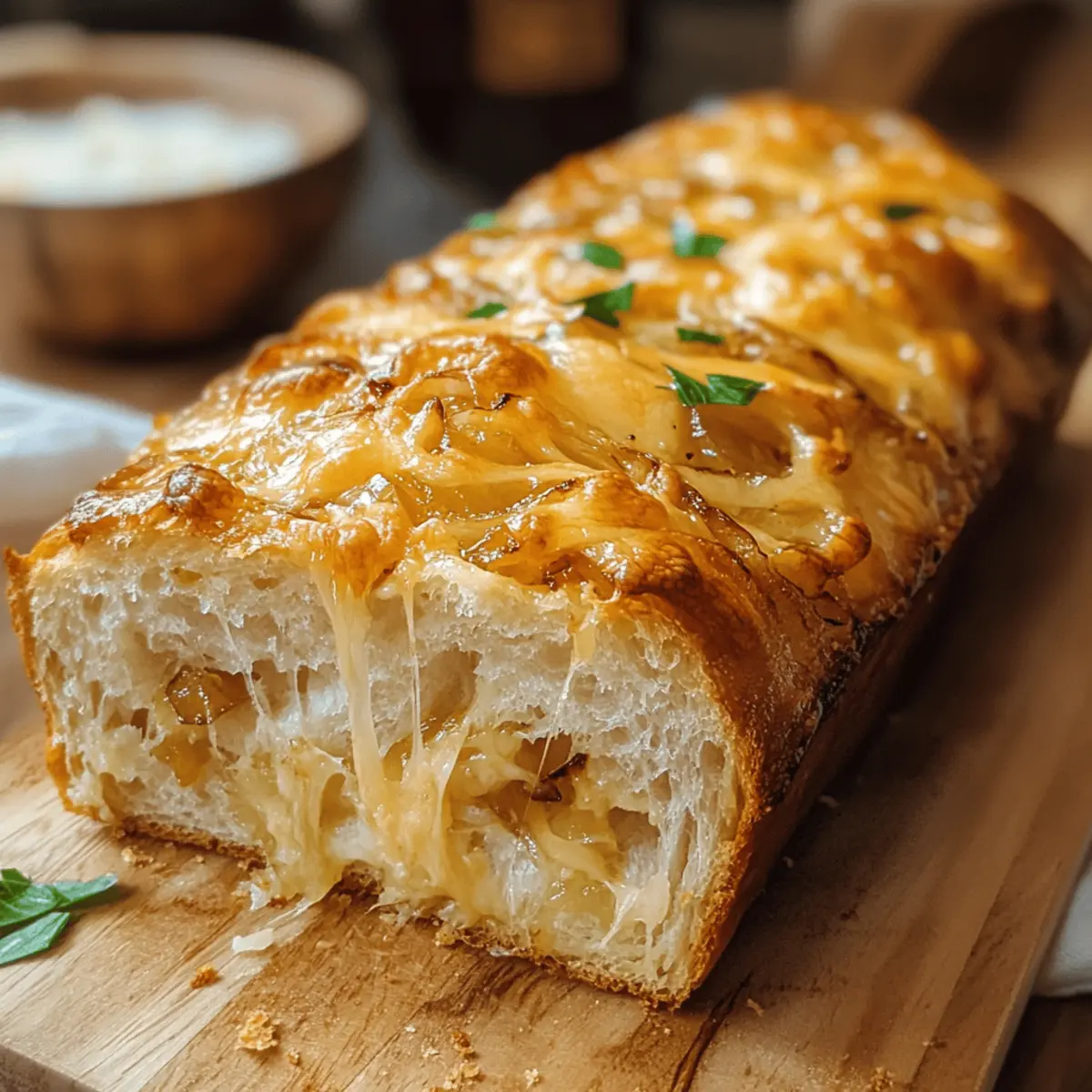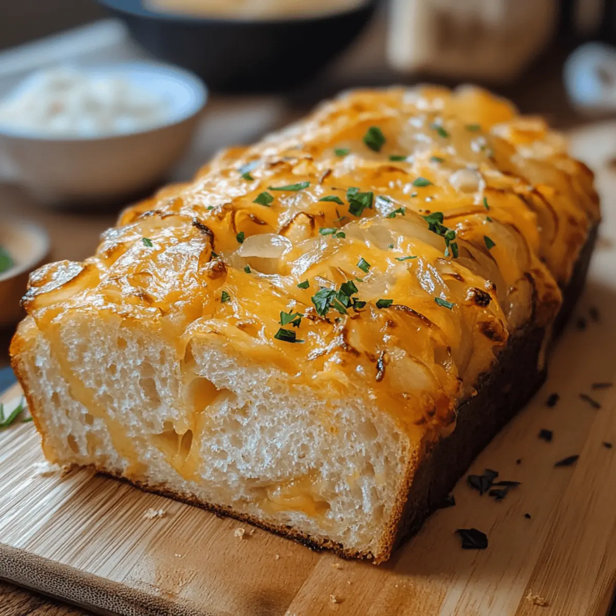Unwiderstehlicher Duft: Der heiße, aromatische Geruch von frisch gebackenem Käse-Zwiebelbrot wird deine Küche in einen einladenden Ort verwandeln, der alle anzieht.