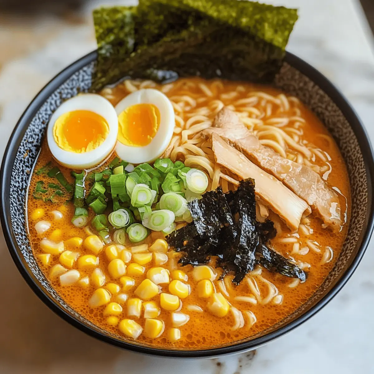 In der kühlen Jahreszeit ist es oft ein einziges Gericht, das die Herzen höher schlagen lässt: Japans köstliches Curry Ramen. Die Kombi aus aromatisch gewürztem Brühe, zarten Ramen-Nudeln und einer liebevollen Portion Gemüse oder Fleisch macht diesen Teller zur perfekten Umarmung für den Magen. Was mich besonders begeistert, ist, dass dieses Rezept schnell zubereitet ist und sowohl großen als auch kleinen Essern Freude bereitet. Ihr werdet die ehrfürchtigen Blicke eurer Familie genießen, wenn sie den ersten Löffel der herzhaften, goldenen Brühe nehmen, die voller umami ist. Und für alle Vegetarier: Es gibt ganz leicht eine fleischlose Variante! Neugierig, wie du dieses wundervolle Gericht selbst zubereiten kannst? Warum ist dieses Rezept besonders? Herzhafter Genuss: Dieses Curry Ramen vereint die besten Aromen Japans und sorgt für wahre Glücksmomente bei jedem Bissen. Schnelle Zubereitung: Mit nur wenigen Zutaten und einfachen Schritten habt ihr in kürzester Zeit ein festliches Gericht auf dem Tisch. Familienfreundlich: Egal ob Groß oder Klein, die harmonische Mischung begeistert jeden! Flexibel & Vielseitig: Passt die Zutaten nach eurem Geschmack an – probiert zum Beispiel rote Samt Keksteig oder Pistazien Torte Rezept. Mit solchen Anpassungen wird jede Schüssel Curry Ramen zu einer einzigartigen Erfahrung. Zutaten für den Japanischen Curry Ramen • Diese Zutaten bilden die Grundlage für ein herzhaftes Gericht, das jeder lieben wird! Für die Brühe Gemüseöl – Ideal zum Anbraten von Aromaten; kann durch Olivenöl ersetzt werden. Zwiebel – Sorgt für Süße und Tiefe im Geschmack; gelbe oder weiße Zwiebeln sind am besten. Knoblauch – Liefert aromatischen Geschmack; frischer Knoblauch sorgt für das beste Ergebnis. Ingwer – Fügt eine wärmende, würzige Note hinzu; frischer Ingwer ist vorzuziehen. Japanisches Curry-Pulver – Der Hauptgeschmacksträger dieses Gerichts; verwende echtes japanisches Curry-Pulver für Authentizität. Sojasauce – Fügt Umami und Salzigkeit hinzu; Tamari ist eine glutenfreie Option. Mirin – Optional für eine süßliche Note; kann durch eine Mischung aus Zucker und Wasser ersetzt werden. Hühnerbrühe – Bildet die Basis der Suppe; kann durch Gemüsebrühe für eine vegetarische Version ersetzt werden. Wasser – Zum Erreichen der gewünschten Brühenkonsistenz. Maisstärke – Verdickt die Brühe; mit Wasser mischen, um Klumpen zu verhindern. Für die Hauptzutaten Hähnchenschenkel – Hauptproteingehalt; kann durch festen Tofu für eine vegetarische Option ersetzt werden. Ramen-Nudeln – Dünne, kleine Sorte empfohlen; die Zubereitung gemäß Verpackungsanweisung befolgen. Für das Topping Weichgekochte Eier – Fügen zusätzliche Cremigkeit hinzu; kann für eine vegane Version weggelassen werden. Maiskörner – Bringt Süße und Farbe ins Gericht; tiefgefrorene oder aus der Dose sind gut geeignet. Frühlingszwiebeln – Frische Garnitur, die Knusprigkeit und Farbexplosion hinzufügt. Nori – Algenstreifen für zusätzlichen Umami-Geschmack; optional als Garnitur. Sesamkerne – Bringt einen nussigen Abschluss; können für mehr Geschmack geröstet werden. Mit diesen Zutaten könnt ihr euch auf ein wunderbares Geschmackserlebnis freuen – perfekt für ein gemütliches Abendessen oder eine schnelle Mahlzeit an einem kalten Tag! Schritt-für-Schritt-Anleitungen für Japanisches Curry Ramen Step 1: Aromaten anbraten Erhitze das Gemüseöl in einem mittleren Topf bei mittlerer Hitze. Gib die gewürfelte Zwiebel, den gehackten Knoblauch und den geriebenen Ingwer hinzu und brate sie für etwa 3 Minuten, bis die Zwiebeln glasig und aromatisch sind. Achte darauf, die Mischung regelmäßig umzurühren, damit nichts anbrennt. Step 2: Curry-Pulver hinzufügen Streue das japanische Curry-Pulver in den Topf und röste es für 30 Sekunden mit den Aromaten. Dies intensiviert die Aromen und gibt dem Gericht seinen charakteristischen Geschmack. Rühre gut um, damit das Curry-Pulver gleichmäßig verteilt wird und nicht anbrennt. Step 3: Brühe kombinieren Füge nun die Hühnerbrühe, das Wasser, die Sojasauce und den Mirin in den Topf. Rühre gründlich um, um alle Zutaten zu kombinieren. Bringe die Mischung zum Simmern; die Brühe sollte leicht blubbern, um die Aromen gut entfalten zu können. Step 4: Brühe verdicken Mische die Maisstärke mit etwas Wasser in einer Schüssel, bis sie glatt ist. Gib die Mischung langsam in die Brühe, während du ständig umrührst. Koche die Brühe 1-2 Minuten weiter, bis sie leicht eindickt und eine geschmeidige Konsistenz erreicht. Step 5: Hähnchen garen Füge die in Scheiben geschnittenen Hähnchenschenkel in die Brühe und lasse sie bei niedriger Hitze 5-7 Minuten köcheln, bis das Fleisch durchgegart und saftig ist. Das Hähnchen sollte nicht mehr rosa sein und eine Innentemperatur von 75 °C erreichen. Step 6: Nudeln zubereiten Bereite die Ramen-Nudeln gemäß den Anweisungen auf der Verpackung zu. Koche sie in einem separaten Topf mit sprudelndem Wasser ca. 3-5 Minuten, bis sie al dente sind. Achte darauf, die Nudeln nicht zu lange zu kochen, um eine Überweichung zu vermeiden. Step 7: Anrichten Verteile die gekochten Ramen-Nudeln gleichmäßig auf vorgewärmte Schalen. Löffle die heiße Currybrühe mit dem gekochten Hähnchen großzügig über die Nudeln. Toppe jede Portion mit weichgekochten Eiern, Maiskörnern, frischen Frühlingszwiebeln, Nori und gerösteten Sesamkernen, um das Japanische Curry Ramen perfekt zu vollenden. Was passt zu Japanischem Curry Ramen? Das perfekte Essen für eine kalte Nacht erfordern dazu oft einige köstliche Begleiter, die den Genuss auf ein neues Level heben. Cremige Misosuppe: Die sanft gewürzte Brühe ergänzt das herzhaft würzige Curry und sorgt für zusätzliche Wärme und Tiefe. Frisch gebackenes Baguette: Ideal zum Tunken in die würzige Brühe; seine knusprige Kruste und weiche Innenseite harmonieren perfekt mit dem Ramen. Gemüsegyoza: Diese 