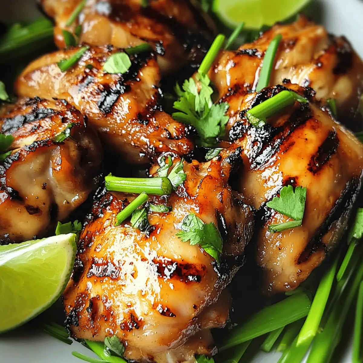 Ein köstlicher Duft weht durch die Küche, während ich die Marinade für mein vietnamesisches Grillhähnchen anrühre. Die Kombination aus Fischsauce, Knoblauch und einem Hauch von Süße durch braunen Zucker und Honig schafft eine Geschmacksexplosion, die mich direkt nach Vietnam transportiert. Dieses Rezept für gegrilltes Hähnchen ist nicht nur einfach zuzubereiten, sondern auch ein absoluter Publikumsliebling – perfekt für ein schnelles Abendessen unter der Woche oder ein geselliges BBQ im Sommer. Nach nur wenigen Handgriffen kann ich ein zartes, saftiges Hähnchen servieren, das auf der Zunge zergeht. Neugierig, wie du diese Aromen auch auf deinen Teller bringen kannst? Lass uns gemeinsam loslegen! Warum ist dieses Rezept so besonders? Einfachheit, Die Zubereitung ist denkbar unkompliziert und erfordert nur wenige Schritte – ideal für Köche aller Niveaus! Vibrante Aromen, Die spezielle Marinade aus Fischsauce und Gewürzen bringt einen authentischen vietnamesischen Geschmack auf den Tisch, der jedem den Atem raubt. Vielseitigkeit, Du kannst das Rezept leicht anpassen, indem du Gemüse grillst oder mit verschiedenen Beilagen wie Jasminreis kombinierst. Schnelligkeit, In nur wenigen Minuten hast du ein köstliches Gericht gezaubert, das perfekt für belebte Wochentage geeignet ist. Beliebtheit, Mit diesem Rezept kannst du deine Familie und Freunde beeindrucken – ein absolutes Muss für jedes BBQ! Verpasse nicht die Chance, frische Geschmäcker zu entdecken, während du die Spinat Feta Einfach zubereitest und dein Menü bereicherst! Zutaten für Vietnamesisches Grillhähnchen Für die Marinade: Fischsauce – sorgt für Umami und kann für eine glutenfreie Option durch Tamari ersetzt werden. Sojasauce – verleiht Tiefe; verwende natriumarme Sojasauce, um den Salzgehalt zu steuern. Brauner Zucker – balanciert die herzhaften Elemente mit Süße; Kokosblütenzucker kann als Ersatz genutzt werden. Knoblauch – fügt ein aromatisches Aroma hinzu; frisch ist am besten. Ingwer – bringt Wärme und Gewürze; gerieben für eine einfachere Verarbeitung. Pflanzenöl – hilft der Marinade am Hähnchen zu haften und verhindert das Ankleben beim Grillen. Kann durch Sesamöl für einen nussigeren Geschmack ersetzt werden. Honig – sorgt für natürliche Süße und Karamellisierung während des Grillens; Ahornsirup kann eine Alternative sein. Schwarzer Pfeffer – bietet milde Schärfe; je nach Vorliebe anpassen. Chilipulver – passe die Schärfe nach Geschmack an; Cayenne oder Paprika können als Alternativen verwendet werden. Für das Hähnchen: Hähnchenschenkel – die Hauptproteinquelle für einen tiefen und geschmackvollen Genuss; am besten mit Knochen und ohne Haut für weniger Fett. Für die Garnitur: Frische Kräuter (Koriander) – zur Verfeinerung, erhöht die Präsentation und fügt Frische hinzu. Limettenviertel – zum Servieren, um die Säure hinzuzufügen, die das Gericht aufhellt. Mit diesen Zutaten bist du bestens gerüstet, um ein köstliches, vietnamesisches Grillhähnchen zuzubereiten, das allen auf der Zunge zergeht! Schritt-für-Schritt-Anleitungen für Vietnamesisches Grillhähnchen Step 1: Marinade zubereiten In einer Rührschüssel die Fischsauce, Sojasauce, braunen Zucker, fein gehackten Knoblauch, geriebenen Ingwer, Pflanzenöl, Honig, schwarzen Pfeffer und Chilipulver gut vermischen. Rühre die Zutaten so lange, bis der Zucker vollständig aufgelöst ist. Dies ist die Marinade für das vietnamesische Grillhähnchen, die dem Hähnchen seinen reichen und herzhaften Geschmack verleiht. Step 2: Hähnchen marinieren Die Hähnchenschenkel in die vorbereitete Marinade legen und sicherstellen, dass sie gleichmäßig bedeckt sind. Bedecke die Schüssel mit Frischhaltefolie und lasse das Hähnchen für mindestens 1 Stunde im Kühlschrank marinieren. Für noch intensiveren Geschmack kann das Hähnchen auch über Nacht marinieren. So zieht das Aroma richtig in das Fleisch ein. Step 3: Grill vorheizen Den Grill auf mittelhohe Hitze vorheizen, was etwa 200 °C entspricht. Wenn du einen Grill mit Deckel verwendest, schließe diesen während des Vorheizens, um die Temperatur gleichmäßig zu halten. Ein gut vorgeheizter Grill sorgt für ein optimales Anbraten und eine leckere Grillmarkierung auf dem Hähnchen. Step 4: Hähnchen grillen Nehme die marinierten Hähnchenschenkel aus dem Kühlschrank und lasse überschüssige Marinade abtropfen. Grille die Hähnchen für 5-7 Minuten auf jeder Seite, bis sie eine goldbraune Farbe haben und die Innentemperatur mindestens 75 °C erreicht. Verwende ein Fleischthermometer, um sicherzustellen, dass das Hähnchen gut durchgegart ist und saftig bleibt. Step 5: Ruhen lassen Nach dem Grillen das Hähnchen vom Grill nehmen und auf einen Teller legen. Lasse es etwa 5 Minuten ruhen, bevor du es anschneidest. Dieses Ruhen ist entscheidend, damit die Säfte im Hähnchen bleiben und es zart und saftig bleibt. Step 6: Garnieren und servieren Serviere das Vietnamesische Grillhähnchen auf einer großen Platte, garniert mit frischem Koriander und Limettenvierteln. Die Limetten geben zusätzliche Frische und Säure, die das Aroma des Gegrillten perfekt ergänzt. Dieses Gericht begeistert sowohl mit seinem Aussehen als auch mit seinem unverwechselbaren Geschmack! Lagerungstipps für vietnamesisches Grillhähnchen Zimmertemperatur: Lasse das Grillhähnchen nach dem Grillen nicht länger als 2 Stunden bei Zimmertemperatur stehen, um das Risiko von Bakterienwachstum zu minimieren. Kühlschrank: Bewahre übrig gebliebenes Grillhähnchen in einem luftdichten Behälter im Kühlschrank auf, wo es bis zu 3 Tage haltbar ist. Stelle sicher, dass das Fleisch gut abgedeckt ist, um Trockenheit zu vermeiden. Gefrierer: Du kannst das marinierte oder gegrillte Hähnchen bis zu 3 Monate im Gefrierer aufbewahren. Verwende einen gefrierfesten Behälter oder vakuumversiegelte Beutel für die beste Qualität. Aufwärmen: Zum Aufwärmen das Hähnchen im vorgeheizten