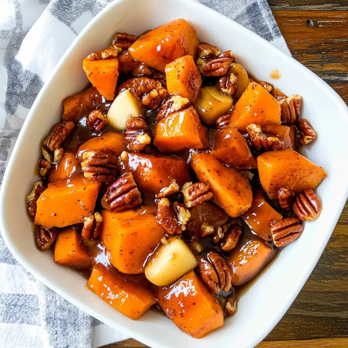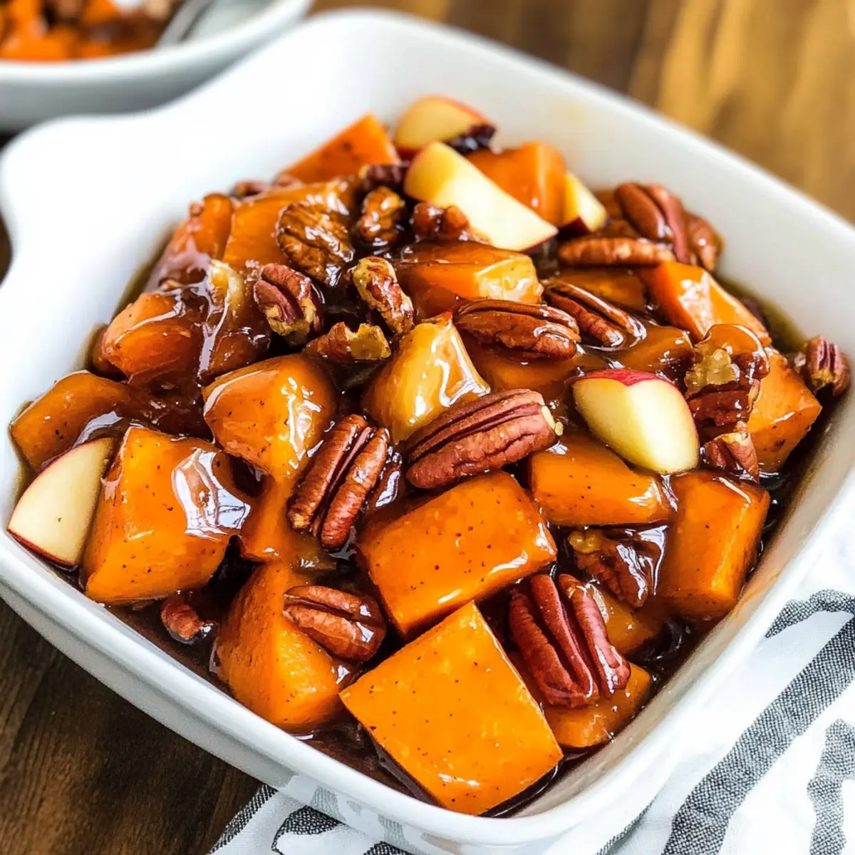 Einfachheit, Diese glasierten Süßkartoffeln sind so unkompliziert, dass sie selbst für Küchenneulinge geeignet sind! Aromatische Vielfalt, die Kombination aus Honig, Äpfeln und Whiskey sorgt für ein Geschmackserlebnis, das eure Gäste begeistern wird. Vielfältige Verwendung, perfekt als festliche Beilage zu jedem Hauptgericht oder sogar als eigenständiges Gericht. Zeitersparnis, bereitet sie im Voraus vor und backt sie einfach kurz vor dem Servieren! Und für eine weitere geschmackliche Entdeckung könnt ihr auch unser leckeres Rezept für Asiatisches Rinderhackfleisch mit Kohl ausprobieren. Herzhafte Tradition, diese Süßkartoffeln bringen die Wärme der Feiertage auf euren Tisch.