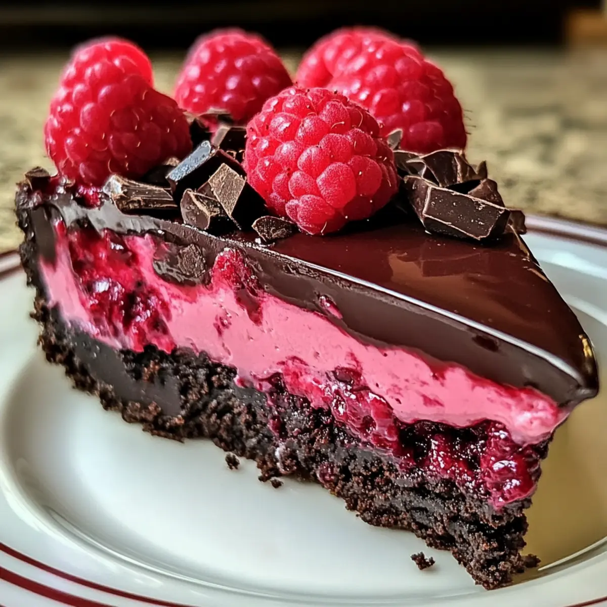 “Zuerst dachte ich, ich hätte mich in der Rezeptwelt verirrt, als ich auf diese verlockende Kombination stieß: Dunkle Schokolade trifft auf frische Himbeeren! Der Dunkle Schokoladen-Himbeer-Käsekuchen vereint die reichhaltige Cremigkeit einer klassischen Käsekuchenfüllung mit der fruchtigen Frische der Himbeeren. Was mich sofort begeisterte, ist die überraschend einfache Zubereitung – perfekt für Anfänger und erfahrene Köche gleichermaßen. Dieser Käsekuchen ist nicht nur ein Genuss für den Gaumen, sondern auch ein echter Hingucker für jede Feier. Egal, ob du ihn als krönenden Abschluss eines Festmahls oder einfach für dich selbst zubereitest, jedes Stück bringt pure Freude. Du fragst dich, wie du mit diesem Rezept deine Lieben beeindrucken kannst? Lass uns gemeinsam eintauchen!” Warum ist dieser Käsekuchen ein Muss? Einfachheit: Die Zubereitung ist so unkompliziert, dass du dich selbst überraschen wirst. Selbst Anfänger in der Küche können diesen feinen Käsekuchen mühelos meistern. Vielfältige Anpassungsmöglichkeiten: Mit der Option, die Himbeeren durch deine Lieblingsbeeren zu ersetzen, erhältst du immer wieder neue Geschmackserlebnisse. Intensiver Geschmack: Die Kombination aus dunkler Schokolade und frischen Himbeeren macht jeden Bissen zu einem Fest der Aromen und der Texturen. Perfekte Präsentation: Mit seiner eleganten Optik ist dieser Käsekuchen der ideale Hingucker für jede Feier. Denke daran, ihn mit einem Klecks Schlagsahne oder einer Prise Kakaopulver zu servieren – das wird beeindrucken! Zeitersparnis: Da er im Kühlschrank einfach durchziehen muss, kannst du ihn im Voraus zubereiten und Gäste ohne Stress empfangen. Schau auch mal bei unseren anderen leckeren Käsekuchen-Rezepten vorbei, um noch mehr Inspiration zu erhalten! Dunkle Schokoladen-Himbeer-Käsekuchen Zutaten Für den Boden: Zerdrückte Schokoladenkekse – Sie bilden die Grundlage des Bodens; du kannst sie auch durch Graham-Crackern ersetzen, wenn du einen klassischeren Geschmack möchtest. Geschmolzene Butter – Bindet den Boden; keine Substitute empfohlen. Für die Füllung: Frischkäse (450 g) – Hauptbestandteil für die cremige Textur; verwende am besten die vollfette Blockvariante für optimale Ergebnisse. Zucker (200 g) – sorgt für die nötige Süße; du kannst braunen Zucker verwenden, um einen reichhaltigeren Geschmack zu erzielen. Geschmolzene dunkle Schokolade (225 g) – Für intensiven Geschmack und Farbe; wähle Schokolade mit 60 % bis 72 % Kakao für ein harmonisches Gleichgewicht. Vanilleextrakt (1 TL) – Verleiht der Füllung Tiefe; keine Alternativen empfohlen. Eier (3 große) – Dienen der Struktur und dem Reichtum; schlage sie minimal, um Risse im Käsekuchen zu vermeiden. Frische Himbeeren (150 g) – Bringen die fruchtige Frische; beim Ersetzen mit gefrorenen könnte die Textur abweichen. Mit diesen Zutaten wird dein Dunkle Schokoladen-Himbeer-Käsekuchen zu einem absoluten Highlight und einem Genuss, den niemand vergessen wird! Schritt-für-Schritt-Anleitung für Dunkle Schokoladen-Himbeer-Käsekuchen Schritt 1: Ofen vorheizen Heize den Ofen auf 160 °C vor und bereite eine gefettete oder mit Backpapier ausgelegte 23 cm Springform vor. Achte darauf, dass die Form gut vorbereitet ist, damit der Käsekuchen später leicht herausgenommen werden kann. Ein vorgeheizter Ofen sorgt für eine gleichmäßige Backtemperatur und ein perfektes Ergebnis. Schritt 2: Boden zubereiten Vermische die zerdrückten Schokoladenkekse mit der geschmolzenen Butter in einer Schüssel, bis die Mischung gut verbunden ist. Drücke diese Mischung gleichmäßig in den Boden der vorbereiteten Springform. Achte darauf, dass der Boden gut festgedrückt ist, um eine feste Grundlage für deinen Dunklen Schokoladen-Himbeer-Käsekuchen zu schaffen. Schritt 3: Füllung anrühren In einer großen Schüssel den Frischkäse mit dem Zucker kräftig schlagen, bis die Mischung schön glatt ist. Füge dann die geschmolzene dunkle Schokolade und den Vanilleextrakt hinzu und rühre alles gut unter, bis sich die Zutaten gleichmäßig vermengen. Diese Basis sorgt für die cremige und reichhaltige Textur deines Käsekuchens. Schritt 4: Eier hinzufügen Gib die Eier nacheinander bei geringer Geschwindigkeit hinzu und rühre nur so lange, bis sie gut eingearbeitet sind. Versuche, die Eier nicht zu übermixen, um Risse im Käsekuchen zu vermeiden. Diese sorgsame Handhabung sorgt dafür, dass dein Dunkle Schokoladen-Himbeer-Käsekuchen sanft und cremig bleibt. Schritt 5: Himbeeren unterheben Falte vorsichtig die frischen Himbeeren in die Käsekuchenmasse ein. Achte darauf, dass sie gleichmäßig verteilt werden, ohne zu zerdrücken. Die Himbeeren bringen eine wunderbare fruchtige Frische in Kombination mit der intensiven Schokolade, was deinen Käsekuchen zu einem besonderen Genuss macht. Schritt 6: Mischung backen Gieße die Füllung über den vorbereiteten Keksboden und glätte die Oberfläche mit einem Spatel. Klopfe die Form sanft auf die Arbeitsfläche, um Luftblasen zu entfernen. Backe den Dunklen Schokoladen-Himbeer-Käsekuchen für etwa 60 Minuten, bis die Mitte leicht wackelig aussieht – das bedeutet, dass der Käsekuchen perfekt ist. Schritt 7: Abkühlen lassen Schalte den Ofen aus und lasse die Tür einen Spalt weit offen, während der Käsekuchen im Ofen für 1 Stunde abkühlt. Diese langsame Abkühlung im Ofen hilft, Risse zu vermeiden und sorgt für eine gleichmäßige Konsistenz. Anschließend sollte der Käsekuchen mindestens 4 Stunden im Kühlschrank ruhen, bevor du ihn servierst. Schritt 8: Servieren Serviere deinen Dunklen Schokoladen-Himbeer-Käsekuchen mit zusätzlichen frischen Himbeeren oder einem Schuss geschmolzener Schokolade für eine elegante Präsentation. Der Käsekuchen ist nun bereit, um deine Gäste zu beeindrucken, und jeder Bissen wird ihre Herzen erwärmen. Was passt zum Dunklen Schokoladen-Himbeer-Käsekuchen? Lass uns ein komplettes Menü zaubern, das diesen h
