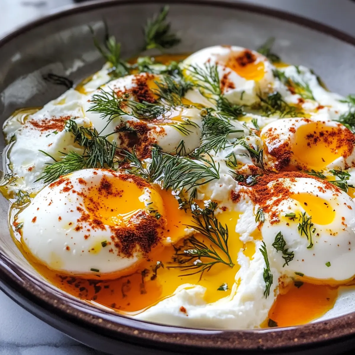 Entdecke die unwiderstehlichen Türkischen Eier (Cilbir) mit cremigem Joghurt und zarten, perfekt pochierten Eiern. Ein proteinreicher Frühstücksgenuss!
