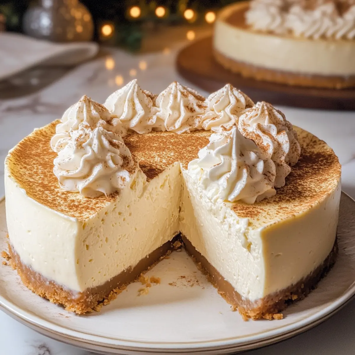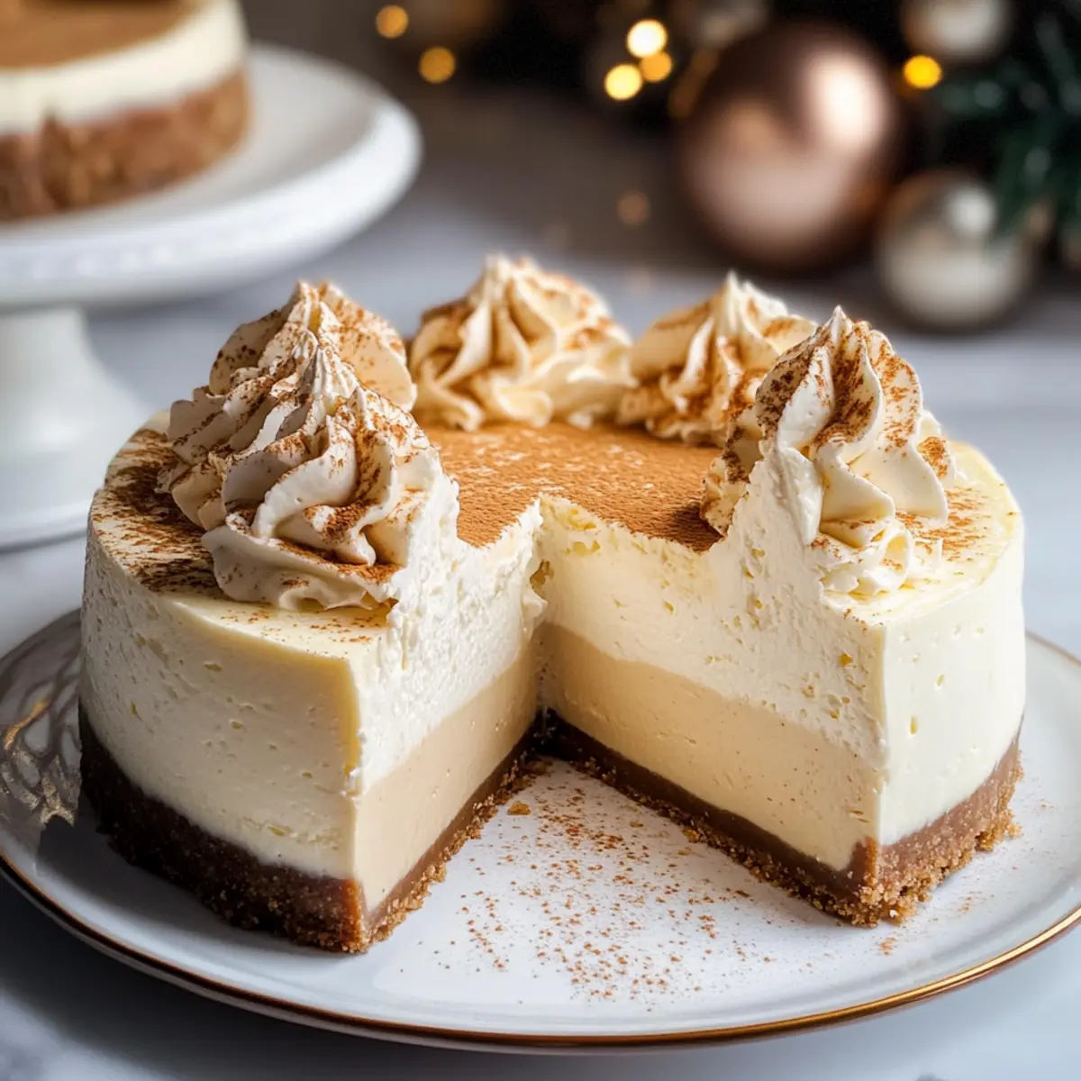 Die festliche Jahreszeit bringt nicht nur strahlende Lichter und fröhliche Musik mit sich, sondern auch eine unwiderstehliche Vorliebe für köstliche Desserts. In dieser Zeit könnte nichts besser passen als ein cremiger Eierlikör-Käsekuchen, der die Gemütlichkeit dieser besonderen Tage auf perfekte Weise einfängt. Mit seiner samtigen Textur und den warmen Aromen von Muskatnuss und Vanille ist dieser Käsekuchen nicht nur einfach zuzubereiten, sondern lässt sich auch im Voraus machen – perfekt für stressfreie Feiertage. Jede Scheibe wird zu einer kleinen Umarmung, die Sie und Ihre Gäste in weihnachtliche Stimmung versetzt. Also, sind Sie bereit, sich in die Welt des Dessertgenusses zu stürzen und Ihre Lieben mit diesem besonderen Kuchen zu verwöhnen? Warum werden Sie diesen Kuchen lieben? Einfachheit: Die Zubereitung ist unkompliziert und erfordert keine besonderen Backfähigkeiten – perfekt für jeden Heimkoch! Cremiger Genuss: Der Eierlikör-Käsekuchen vereint die Aromen von Muskatnuss und Vanille zu einem unvergesslichen Geschmack, der jedem Fest zugutekommt. Vielseitig: Diese Leckerei lässt sich ganz einfach im Voraus zubereiten, sodass Sie entspannt feiern können, ohne in der Küche zu stehen. Zuschauerliebling: Jeder liebevoll zubereitete Kuchen wird Ihre Gäste beeindrucken und in festliche Stimmung versetzen. Perfektes Finish: Ergänzen Sie den Kuchen mit frischen Früchten oder einem Hauch Karamellsauce – eine köstliche Bereicherung für jeden Bissen! Tradition trifft Innovation: Der Eierlikör-Käsekuchen verbindet Tradition mit modernen Akzenten, ideal für alle, die nach etwas Neuem suchen. Eierlikör-Käsekuchen Zutaten Für den Boden • Graham Cracker Krümel – Stellen Sie die Basis für den Boden her; kann durch glutenfreie Kekse ersetzt werden. • Zucker – Fügt eine süße Note hinzu; die Menge nach Geschmack anpassen. • Gemahlener Zimt – Verstärkt den Geschmack im Boden; kann auch durch Muskatnuss ersetzt werden. • Ungesalzene Butter – Bindet die Zutaten des Bodens; verwenden Sie geschmolzene Butter für die beste Konsistenz. Für die Füllung • Frischkäse – Hauptzutat für die Cremigkeit des Kuchens; kann durch griechischen Joghurt für eine leichtere Variante ersetzt werden. • Weizenmehl – Stabilisiert den Käsekuchen, um Risse zu vermeiden; glutenfreies Mehl kann hier ebenfalls verwendet werden. • Eierlikör – Sorgt für Geschmack und Feuchtigkeit in der Füllung, was ihn herrlich reich macht; Halbfett-Milch mit einem Hauch Muskatnuss kann als Alternative genommen werden. • Große Eier – Unterstützen die Struktur des Kuchens; Zimmertemperatur sorgt für besseres Mischen. • Gemahlene Muskatnuss – Fügt ein aromatisches Gewürz hinzu; frisch geriebene Muskatnuss hebt den Geschmack weiter. • Vanilleextrakt – Bringt eine zusätzliche Geschmacksdimension; verwenden Sie reinen Vanilleextrakt für den besten Geschmack. Für die Sahne • Schlagsahne – Sorgt für die luftige Topping; eine pflanzliche Sahnealternative kann verwendet werden. • Puderzucker – Süßt die Sahne; Granulated sugar kann, aber mit einer sehr groben Textur enden. • Gemahlene Muskatnuss – Verstärkt das Aroma in der Sahne und passt perfekt zum Kuchen; eine Prise mehr sorgt für zusätzlichen Kick. Mit diesen Zutaten wird Ihr Eierlikör-Käsekuchen zu einem echten Festgenuss, der Ihre Gäste verzaubern wird! Schritt-für-Schritt-Anleitung für Eierlikör-Käsekuchen Step 1: Boden vorbereiten Mischen Sie die Graham Cracker Krümel, Zucker, gemahlenen Zimt und die geschmolzene Butter in einer Schüssel, bis die Mischung feucht ist und aussieht wie nasser Sand. Drücken Sie die Mischung gleichmäßig in den Boden einer 9-Zoll-Springform und stellen Sie die Form anschließend für mindestens 30 Minuten in den Kühlschrank, damit der Boden fest wird. Step 2: Füllung zubereiten Schlagen Sie in einer großen Rührschüssel den weichen Frischkäse mit dem Zucker und Weizenmehl, bis die Mischung glatt ist. Fügen Sie langsam den Eierlikör, die gemahlene Muskatnuss und den Vanilleextrakt hinzu, und vermischen Sie alles gut. Geben Sie die großen Eier einzeln dazu, und rühren Sie nach jeder Zugabe sanft, bis alles gut vermischt ist. Step 3: Kombinieren und backen Gießen Sie die Füllung über den gekühlten Boden in der Springform. Bereiten Sie ein Wasserbad vor, indem Sie die Springform in eine größere Auflaufform stellen und heißes Wasser bis zur Hälfte der Seiten der Springform gießen. Backen Sie den Eierlikör-Käsekuchen bei 160 °C (325 °F) für etwa 60 Minuten, bis die Mitte nur leicht wackelt. Step 4: Abkühlen und kühlen Lassen Sie den Käsekuchen nach dem Backen bei leicht geöffnetem Ofen eine Stunde lang abkühlen, damit er sich setzen kann. Nehmen Sie ihn dann aus dem Ofen, lassen Sie ihn auf Zimmertemperatur abkühlen, und decken Sie die Form ab. Stellen Sie den Käsekuchen für mindestens 6 Stunden oder über Nacht in den Kühlschrank, damit er vollständig fest wird. Step 5: Schlagsahne zubereiten Schlagen Sie in einer kühlen Schüssel die kalte Schlagsahne mit dem Puderzucker, der gemahlenen Muskatnuss und dem Vanilleextrakt auf hoher Stufe, bis sich weiche Spitzen bilden. Achten Sie darauf, nicht zu lange zu schlagen, damit die Sahne nicht gerinnt. Step 6: Servieren Lösen Sie den Eierlikör-Käsekuchen vorsichtig aus der Springform und setzen Sie ihn auf eine Servierplatte. Garnieren Sie den Käsekuchen großzügig mit der frisch geschlagenen Sahne und bestäuben Sie ihn mit zusätzlicher Muskatnuss für einen festlichen Touch. Schneiden Sie ihn in Stücke und genießen Sie jede köstliche Scheibe! Expertentipps für den Eierlikör-Käsekuchen Zutaten vorbereiten: Stellen Sie alle Zutaten (insbesondere Frischkäse und Eier) auf Zimmertemperatur für eine glatte und homogene Füllung sicher. Wasserbad nutzen: Ein Wasserbad verhindert Risse im Käsekuchen und sorgt für eine gleichmäßige Hitzeverteilung; daher sol