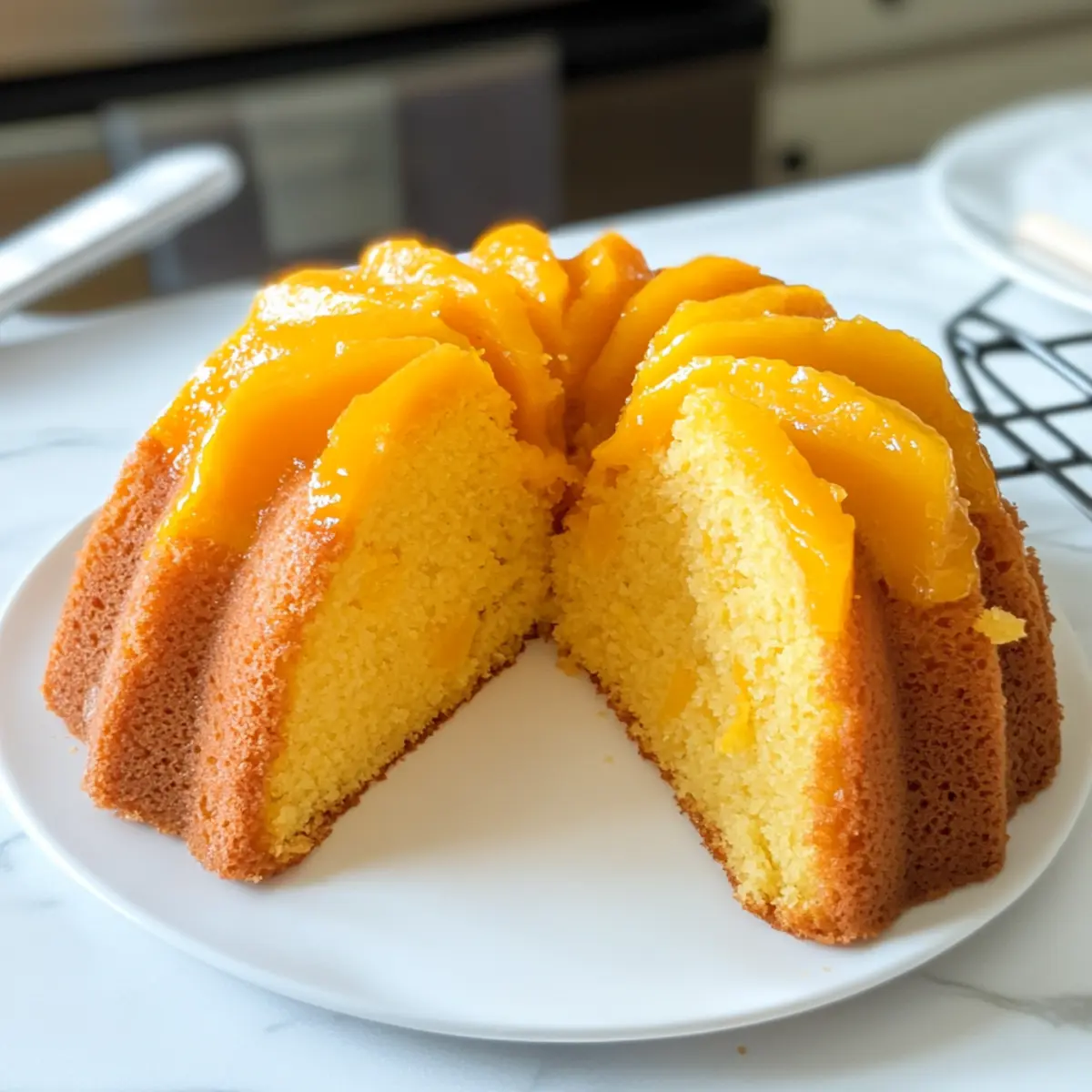 Mit jedem Bissen dieses saftigen, eierlosen Mango Bundt Kuchens fühlt man sich in ein tropisches Paradies versetzt. An einem heißen Sommertag ist nichts erfrischender als ein Stück dieses köstlichen Kuchens, dessen zarte Textur und das süße Aroma reifer Mangos perfekt harmonieren. Diese unkomplizierte Rezeptur eignet sich hervorragend für ein entspanntes Teekränzchen mit Freunden oder einfach zum Genießen an einem ruhigen Nachmittag. Nicht nur ist der Kuchen schnell zubereitet, sondern er kommt auch ganz ohne Eier aus, sodass er ideal für alle ist, die nach einer fruchtigen und leicht bekömmlichen Nachspeise suchen. Bereit, sich von diesem tropischen Genuss verführen zu lassen? Lass uns gemeinsam in die Welt des eierlosen Mango Bundt Kuchens eintauchen! Warum wirst du diesen Kuchen lieben? Fruchtige Frische: Mit jedem Bissen des eierlosen Mango Bundt Kuchens erlebst du die süße Intensität reifer Mangos, die an sonnigen Sommertagen erfrischt. Einfachheit: Die Zubereitung ist unkompliziert und erfordert keine speziellen Backfähigkeiten – perfekt für jeden, der gerne backt. Vielfältige Variationen: Du kannst die Mango durch andere Früchte, wie Banane oder Pfirsich, ersetzen, um eine neue Geschmackserfahrung zu kreieren. Teekränzchen-Rockstar: Dieser Kuchen eignet sich hervorragend für gesellige Runden, denn er sorgt immer für Begeisterung! Luftige Textur: Die Kombination aus Joghurt und Butter ergibt eine zarte, fluffige Konsistenz, die jeden bei jedem Bissen begeistert. Wenn du nach mehr fruchtigen Köstlichkeiten suchst, schau dir auch unser Rezept für Mango Sago oder die Mango Schnitten an! Eierloser Mango Bundt Kuchen Zutaten • Entdecke die wichtigsten Zutaten für deinen perfekten eierlosen Mango Bundt Kuchen! Für den Teig: Allzweckmehl – sorgt für die nötige Struktur und ist unerlässlich für die Textur. Backpulver – lässt den Kuchen schön aufgehen; achte darauf, dass es frisch ist. Backsoda – reagiert mit der Essig und sorgt für die richtige Lockerung; vermeide Überdosierung. Tafelsalz – verstärkt die Süße und balanciert die Aromen; benutze feines Meersalz oder normales Salz. Puderzucker – süßt und trägt zur Textur bei; kann durch Kristallzucker ersetzt werden, was die Konsistenz leicht verändert. Ungesalzene Butter (geschmolzen) – fügt Reichtum und Feuchtigkeit hinzu; ersetze sie bei Bedarf durch gesalzene Butter, aber reduziere das zusätzliche Salz. Mango-Püree – liefert den Hauptgeschmack und die Feuchtigkeit; frische oder konservierte Mangos sind möglich. Joghurt – sorgt für Feuchtigkeit und einen leicht säuerlichen Geschmack; selbstgemachter Joghurt ist ideal. Vanilleextrakt – verstärkt das Geschmacksprofil; verwende immer reinen Vanilleextrakt für die beste Qualität. Mango-Extrakt (optional) – intensiviert den Mangogeschmack, aber sparsam verwenden, um Bitterkeit zu vermeiden. Wasser – hilft, die Konsistenz des Teigs anzupassen; keine Substitution erforderlich. Essig – reagiert mit Backkova; kann durch Zitronensaft ersetzt werden, ist jedoch für das Aufgehen wichtig. Du bist bereit, deinen Kuchen zu backen und das fruchtige Aroma des eierlosen Mango Bundt Kuchens zu genießen! Schritt-für-Schritt-Anleitung für Eierloser Mango Bundt Kuchen Schritt 1: Trockene Zutaten vorbereiten Sichere dir einen großen Rührschüssel und siebe das Allzweckmehl, Backpulver, Backsoda und Salz hinein. Mische alles gut, um sicherzustellen, dass die Zutaten gleichmäßig verteilt sind. Dies ist entscheidend für die luftig-leichte Textur des eierlosen Mango Bundt Kuchens. Stelle die Mischung beiseite. Schritt 2: Butter-Joghurt-Mischung herstellen Schmelze die ungesalzene Butter in einem kleinen Topf und lasse sie einige Minuten abkühlen. In einer separaten Schüssel vermische die abgekühlte Butter mit dem Vanille- und optionalen Mango-Extrakt. Rühre dann den Joghurt ein, bis sich alles gut verbunden hat und eine cremige Konsistenz erreicht ist. Schritt 3: Zutaten kombinieren Gib die Butter-Joghurt-Mischung in eine große Rührschüssel und füge abwechselnd das Mango-Püree und die trockenen Zutaten hinzu. Mische die Zutaten vorsichtig mit der „Cut-and-Fold“-Technik, um die Luftigkeit des Teigs zu erhalten. Achte darauf, nicht zu übermixen, um die zarte Textur des Kuchens zu bewahren. Schritt 4: Finale Zugaben Streue essig und wasser in den Teig und rühre nur so lange, bis die Zutaten gerade so kombiniert sind. Das Hinzufügen des Essigs sorgt dafür, dass der eierlose Mango Bundt Kuchen schön aufgeht. Achte darauf, dass der Teig keine Klumpen mehr aufweist und die Zutaten gleichmäßig verteilt sind. Schritt 5: Backen Verteile den Teig gleichmäßig in eine vorbereitete 9-Zoll Bundtform und heize den Backofen auf 170°C (340°F) vor. Backe den Kuchen für etwa 35 Minuten. Du kannst testen, ob er fertig ist, indem du einen Zahnstocher in die Mitte stichst – er sollte sauber herauskommen, wenn der Kuchen gebacken ist. Schritt 6: Abkühlen lassen Lasse den Kuchen für etwa 15 Minuten in der Form abkühlen, bevor du ihn vorsichtig herausnimmst. Platziere ihn dann auf einem Kuchengitter, um vollständig abzukühlen. Warte mindestens eine Stunde, bevor du den eierlosen Mango Bundt Kuchen in Scheiben schneidest. So bleibt er schön saftig und zart. Meal Prep für den eierlosen Mango Bundt Kuchen Der eierlose Mango Bundt Kuchen eignet sich perfekt für die Vorbereitung im Voraus, was dir viel Zeit an einem geschäftigen Tag spart! Du kannst das Mango-Püree bis zu 3 Tage im Voraus zubereiten und im Kühlschrank aufbewahren, um die Frische zu bewahren. Auch die trockenen Zutaten (Mehl, Backpulver, Backsoda und Salz) lassen sich schon am Vortag abmessen und in einer luftdichten Box lagern. Wenn du bereit bist zu backen, mische einfach die Butter-Joghurt-Mischung mit den vorbereiteten Zutaten und füge das Mango-Püree sowie den Essig hinzu, bevor du den Teig in die Form gibst. Beachte, dass die Luftigkeit des Teiges wi