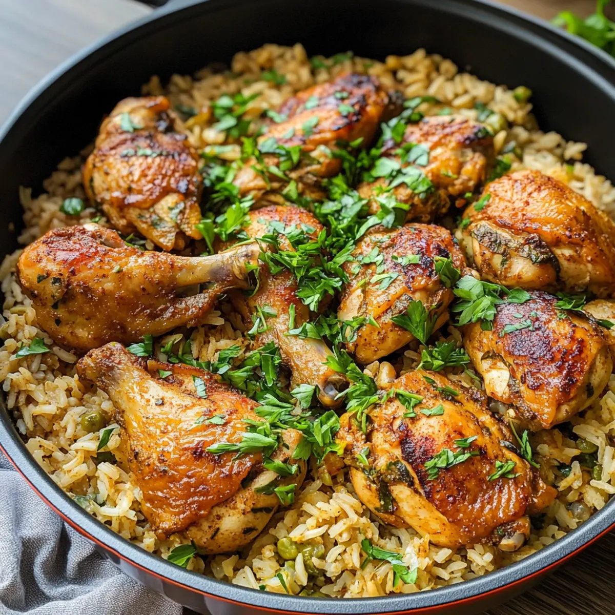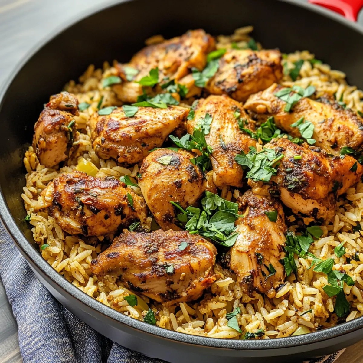 Absolut! Du kannst das Rezept leicht an deine Vorlieben anpassen. Setze Hähnchenschenkel durch Hähnchenbrust ein oder probiere verschiedene Reissorten wie Basmati oder Jasmin. Experimentiere auch mit den Gewürzen, um das Geschmackserlebnis zu variieren.