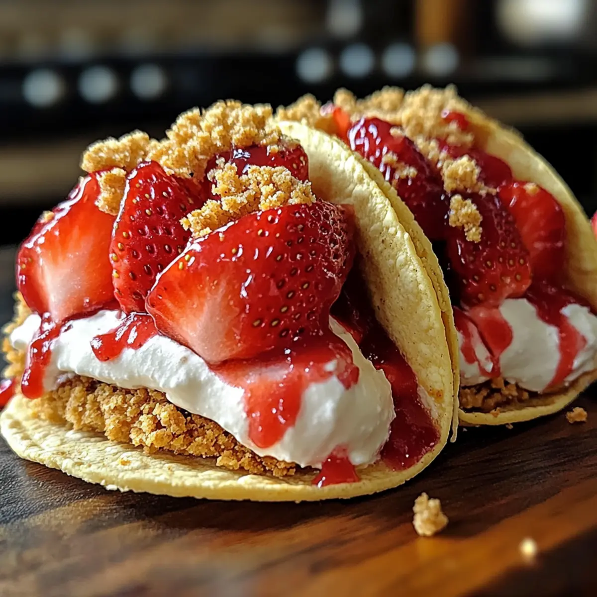 Wenn ich an Sommerabende denke, kommen mir sofort Bilder von leckeren, erfrischenden Desserts in den Sinn. Und in diesem Moment möchte ich euch mit meinen Erdbeer Crunch Käsekuchen Tacos entführen – eine wunderbare Kombination aus cremiger Käsespeise und knusprigem Keksboden, gekrönt von saftigen, frischen Erdbeeren. Dieses Rezept ist nicht nur ein Genuss für die Sinne, sondern auch super einfach zuzubereiten: kein Backen erforderlich! Perfekt, um beim nächsten Treffen mit Freunden für Begeisterung zu sorgen oder um einfach die eigenen Süßigkeiten in einer neuen Form zu genießen. Habt ihr euch je gefragt, wie man die klassischen Aromen des Käsekuchens in einem witzigen Taco-Format präsentieren kann? Lasst uns gemeinsam herausfinden, wie! Warum sind diese Tacos so besonders? Einzigartig: Diese Erdbeer Crunch Käsekuchen Tacos kombinieren den klassischen Käsekuchen mit einer aufregenden Taco-Form. Jeder Biss ist eine köstliche Überraschung! Einfachheit: Kein Backen erforderlich – die Zubereitung ist kinderleicht und benötigt nur wenige Schritte! Perfekt für Anfänger und vielbeschäftigte Köche. Frische: Frische Erdbeeren und die cremige Füllung sorgen für ein unvergleichliches Geschmackserlebnis. Ihr könnt auch andere Beeren ausprobieren, um euer ganz persönliches Dessert zu kreieren! Überlegt euch, die Zutaten zu variieren und andere Früchte oder Nüsse hinzuzufügen. Gesellig: Ein ideales Dessert für Partys, das garantiert ein Lächeln auf die Gesichter eurer Gäste zaubert! Jeder wird begeistert sein von dieser kreativen Nachspeise. Praktisch: Ihr könnt die Taco-Schalen im Voraus vorbereiten und dann kurz vor dem Servieren füllen – so bleibt alles frisch und knusprig! Erdbeer Crunch Käsekuchen Tacos Zutaten Für die Käsekuchen-Füllung Frischkäse – sorgt für die cremige und reichhaltige Basis, bitte vor der Verwendung weich werden lassen. Zucker – fügt die nötige Süße hinzu, ein kalorienarmer Süßstoff ist eine gesunde Alternative. Vanilleextrakt – intensiviert den Geschmack, nur reines Vanillearoma verwenden für die besten Ergebnisse. Schlagsahne – bringt Leichtigkeit und Cremigkeit, Kokoscreme ist eine gute vegane Option. Frische Erdbeeren – liefern süße, saftige Frische; andere Beeren wie Himbeeren oder Heidelbeeren sind ebenfalls geeignet. Für die Taco-Schalen Graham-Cracker-Brösel – bilden die knusprige Schale, glutenfreie Brösel können für eine glutenfreie Version verwendet werden. Ungesalzene Butter – bindet die Kruste, kann durch Kokosöl ersetzt werden für eine milchfreie Variante. Für das Topping Geröstete Pekannüsse (optional) – sorgen für zusätzlichen Crunch und Geschmack, Mandeln oder Walnüsse sind ebenfalls möglich. Zusätzliche gehackte Erdbeeren (optional) – garnieren das Dessert und steigern die optische Anziehungskraft. Genießt die Zubereitung dieser köstlichen Erdbeer Crunch Käsekuchen Tacos und lasst euch von den frischen Zutaten inspirieren! Schritt-für-Schritt-Anleitung für Erdbeer Crunch Käsekuchen Tacos Step 1: Käsekuchen-Füllung zubereiten Schlage zuerst den weich gewordenen Frischkäse in einer großen Schüssel mit einem Handmixer auf mittlerer Stufe, bis er schön glatt ist (ca. 2-3 Minuten). Füge dann den Zucker und den Vanilleextrakt hinzu und vermische alles gut. Du solltest eine homogene, cremige Masse erhalten, die süß und köstlich duftet. Step 2: Schlagsahne unterheben In einer separaten Schüssel die Schlagsahne steif schlagen, bis sich feste Spitzen bilden (ca. 3-5 Minuten). Hebe die Schlagsahne vorsichtig in die Käsekuchen-Mischung, indem du mit einem Gummispatel von unten nach oben faltest. Dies sorgt für eine leichte und luftige Konsistenz der Füllung für die Erdbeer Crunch Käsekuchen Tacos. Step 3: Erdbeeren hinzufügen Wasche die frischen Erdbeeren gründlich, schneide sie in kleine Stücke und füge sie zur Käsekuchen-Füllung hinzu. Vermische alles sanft, bis die Erdbeeren gleichmäßig verteilt sind. Diese süßen Fruchtstücke bringen frische Aromen in die Füllung und machen die Tacos zu einem wahren Genuss. Step 4: Taco-Schalen vorbereiten In einer separaten Schüssel die Graham-Cracker-Brösel mit der geschmolzenen ungesalzenen Butter vermengen, bis die Mischung die Konsistenz von feuchten Sand hat. Achte darauf, dass alles gut vermischt ist, um die perfekte knusprige Basis für deine Erdbeer Crunch Käsekuchen Tacos zu schaffen. Step 5: Taco-Schalen formen Drücke die Graham-Cracker-Mischung gleichmäßig in die Form von Taco-Schalen, indem du sie in Taco-Formen oder einem Muffinblech abdichtest. Achte darauf, dass die Schalen ausreichend fest sind, damit sie die Füllung halten. Stelle die Schalen für mindestens 30 Minuten in den Kühlschrank, damit sie fest werden. Step 6: Füllen der Taco-Schalen Nehme die gekühlten Taco-Schalen aus dem Kühlschrank und Fülle jede Schale gleichmäßig mit der vorbereiteten Käsekuchen-Füllung. Verwende dafür einen Löffel oder eine Spritztüte, um es einfacher zu machen, ohne die Schalen zu beschädigen. Jede Tacos sollte schön gefüllt sein und dekorativ aussehen. Step 7: Toppings hinzufügen Wenn gewünscht, streue einige geröstete Pekannüsse über die gefüllten Tacos, um zusätzlichen Crunch und Geschmack hinzuzufügen. Diese Option bringt eine köstliche Textur und Ergänzung zu den süßen Erdbeeren und der cremigen Füllung. Step 8: Garnieren und Kühlen Garnieren die Tacos mit zusätzlichen gehackten Erdbeeren oben drauf. Dies sorgt für eine frische und ansprechende Präsentation. Stelle die gefüllten Tacos erneut in den Kühlschrank und lasse sie für mindestens 30 Minuten kühlen, damit die Aromen gut durchziehen können. Step 9: Servieren Die Erdbeer Crunch Käsekuchen Tacos sind nun fertig und bereit zum Servieren! Serviere sie gut gekühlt für ein erfrischendes Dessert, das deine Gäste begeistern wird. Genieße die reiche Kombination aus cremiger Füllung und knusprigen Schalen. Erdb