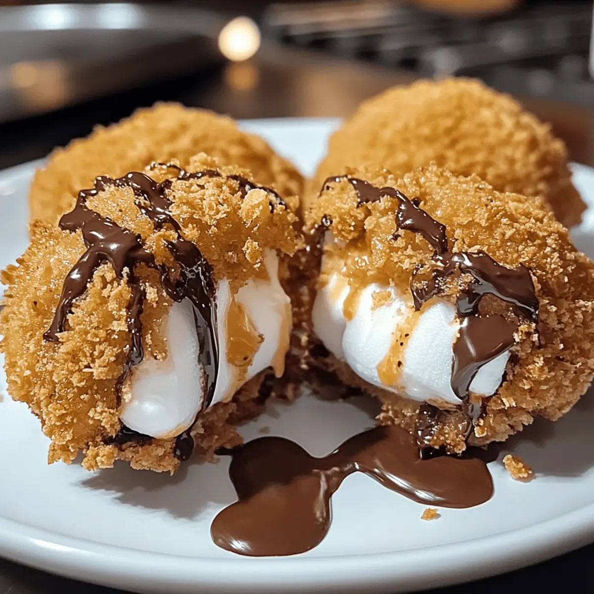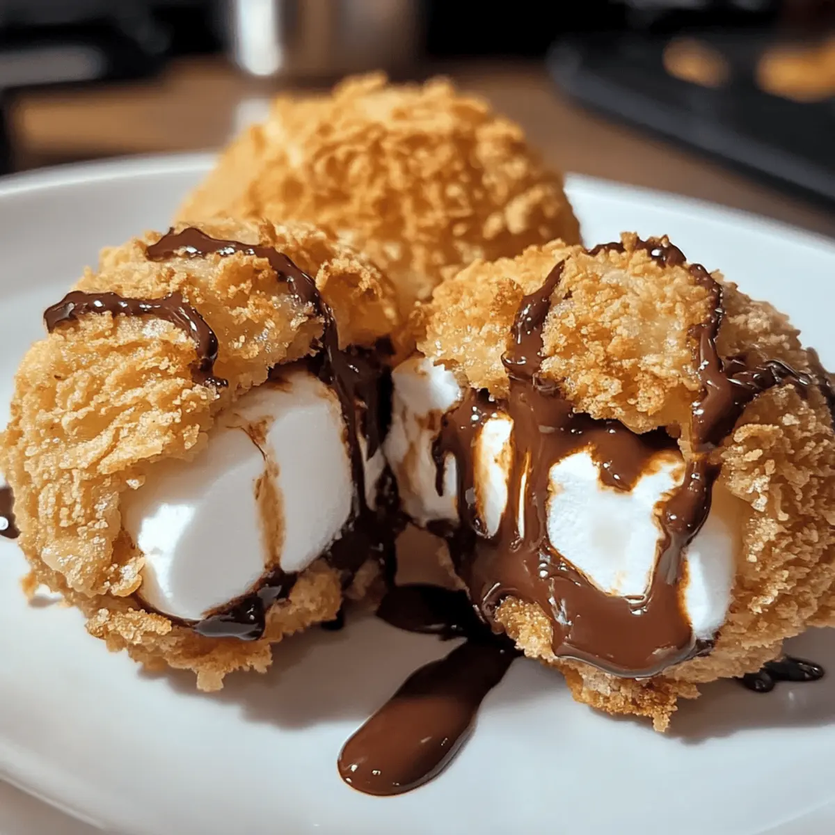 Eines Abends, als ich mich nach einem süßen Snack umsah, kam mir die Idee für die Fried S’mores Bombs – eine köstliche Mischung aus knusprigem Teig, gooey Marshmallows und zartschmelzendem Schokolade. Diese einfache Dessertidee ist nicht nur eine perfekte Wahl für gesellige Abende, sondern auch eine süße Belohnung für zwischendurch. Mit minimalem Aufwand verwandelst du die klassischen S’mores in eine unwiderstehliche Leckerei, die garantiert jeden begeistert. Am besten genießt man sie frisch ausgebacken, wenn der heiße Innenkern förmlich darauf wartet, entdeckt zu werden. Bist du bereit, deine Küche in einen kleinen Dessertspielplatz zu verwandeln? Warum wirst du dieses Rezept lieben? Einfachheit: Die Zubereitung ist unkompliziert und erfordert nur grundlegende Kochkenntnisse. Unwiderstehlicher Geschmack: Die Kombination aus warmen Marshmallows und zartschmelzender Schokolade in einem knusprigen Teig sorgt für ein Geschmackserlebnis der Extraklasse. Vielseitigkeit: Experimentiere mit verschiedenen Füllungen wie Erdnussbutter oder fruchtigen Marshmallows für einen zusätzlichen Überraschungsmoment. Geselliges Dessert: Ideal für Partys oder gemütliche Abende – dieses Rezept bringt deine Gäste zum Schwärmen! Schnell & Zeitsparend: In nur wenigen Minuten zauberst du eine köstliche Nascherei, die perfekt für jeden Anlass ist. Klassische Kombination: Die beliebte Kombination von Schokolade und Keksen wird heute auf ein neues Level gehoben – der perfekte Genuss für alle, die fastfood satt haben! Frittierte S’mores Bomben Zutaten • Diese Zutatenliste wird dir helfen, die köstlichsten frittierte S’mores Bomben zuzubereiten! Für die Füllung Marshmallows – Sorgen für Süße und eine wunderbar gooey Textur. Tipp: Mini-Marshmallows können für einen anderen Bissen verwendet werden. Schokolade (Schokoladentafeln oder -stückchen) – Verleiht Reichtum und Geschmack. Tipp: Dunkle Schokolade sorgt für einen intensiveren Geschmack. Für den Teig Teig (kaufen oder selbst machen) – Erzeugt die knusprige Außenhülle. Tipp: Vorgefertigter Keksteig eignet sich hervorragend für Bequemlichkeit. Für das Frittieren Öl (zum Frittieren) – Notwendig, um die perfekte Knusprigkeit zu erzielen. Tipp: Pflanzenöl oder Rapsöl kann zum Frittieren verwendet werden. Diese frittierte S’mores Bomben sind eine süße Versuchung, die du nicht verpassen solltest! Schritt-für-Schritt-Anleitung für frittierte S’mores Bomben Schritt 1: Öl vorbereiten Erhitze das Öl in einem Frittierer oder einem großen Topf auf 175°C (350°F). Achte darauf, dass genügend Öl vorhanden ist, um die Bomben vollständig zu bedecken. Prüfe die Temperatur mit einem Küchenthermometer oder indem du ein kleines Stück Teig hineinwirfst; es sollte sofort sieden. Bereite in der Nähe ein Tablett mit Papiertüchern vor, um die gebratenen Bomben abtropfen zu lassen. Schritt 2: Bomben zusammenstellen Nimm ein Stück des Teigs und forme es zu einer kleinen Scheibe. Platziere in der Mitte einen Marshmallow und ein Stück Schokolade. Falte den Teig über die Füllung und drücke die Ränder fest zusammen, damit sie gut verschlossen sind. Achte darauf, dass die Füllung nicht herausquillt, während die Bomben gebraten werden. Wiederhole dies, bis alle Zutaten aufgebraucht sind. Schritt 3: Frittieren Lege die gefüllten Teigbällchen vorsichtig in das heiße Öl, wobei du darauf achtest, dass sie sich nicht berühren. Brate sie für etwa 2-3 Minuten, bis sie goldbraun sind. Drehe die Bomben während des Frittierens gelegentlich um, um eine gleichmäßige Bräunung zu gewährleisten. Die knusprige Textur sollte außen sichtbar sein, während die Füllung im Inneren schmilzt. Schritt 4: Abtropfen & Abkühlen Nimm die gebratenen S’mores Bomben vorsichtig mit einer Schaumkelle aus dem Öl und lege sie auf die vorbereiteten Papiertücher. Lass sie dort einige Minuten abkühlen, damit überschüssiges Öl abtropfen kann. Achte darauf, dass sie nicht zu lange draußen liegen, damit sie schön warm und schmelzend bleiben. Diese frittierte S’mores Bomben sind ideal, um sie frisch zu genießen! Expertentipps für frittierte S’mores Bomben Öltemperatur überprüfen: Die optimale Temperatur für das Frittieren ist entscheidend. Ein Thermometer hilft, die perfekte Hitze zu halten, damit deine Bomben knusprig werden. Teigränder schließen: Achte darauf, die Ränder des Teigs gut zu versiegeln. So verhinderst du, dass die leckere Füllung beim Frittieren austritt. Klein anfangen: Teste zuerst mit einem kleinen Stück des Teigs im Öl, um sicherzustellen, dass die richtige Temperatur erreicht ist. So vermeidest du fettige oder verbrannte Bomben. Variationen probieren: Experimentiere mit verschiedenen Schokoladensorten oder Füllungen, um deine frittierte S’mores Bomben in verschiedenen Geschmäckern zu genießen. Auf den richtigen Zeitpunkt achten: Lass die Bomben nach dem Frittieren nicht zu lange abkühlen, damit sie warm und schmelzend bleiben. Variationen & Alternativen Bereite dich darauf vor, deiner Kreativität freien Lauf zu lassen und diese frittierte S’mores Bomben nach deinem Geschmack anzupassen! Dairy-Free: Verwende pflanzliche Butter und Kokosmilch für das Rezept, um eine milchfreie Option zu kreieren. Glutenfrei: Nutze glutenfreies Mehl für den Teig, um alle Genussfreunde einzubeziehen. Erdnussbutter: Ersetze die Schokolade durch Erdnussbutter für eine nussige Geschmacksexplosion, die du lieben wirst. Um deinem Dessert noch mehr Kick zu verleihen: Würzige Note: Füge einen Hauch von Zimt oder einer Prise Cayennepfeffer zum Teig hinzu, um die Geschmacksknospen zu überraschen. Und wenn du es fruchtig magst: Fruchtige Füllung: Nutze frische Beeren, wie Himbeeren oder Erdbeeren, für eine fruchtige Variante, die perfekt zu den schokoladigen Aromen passt. Karamell-Sauce: Ein Spritzer Karamellsauce innen und außen bringt zusätzliche Süße und eine herrliche Textur. Vergiss nicht, auch 