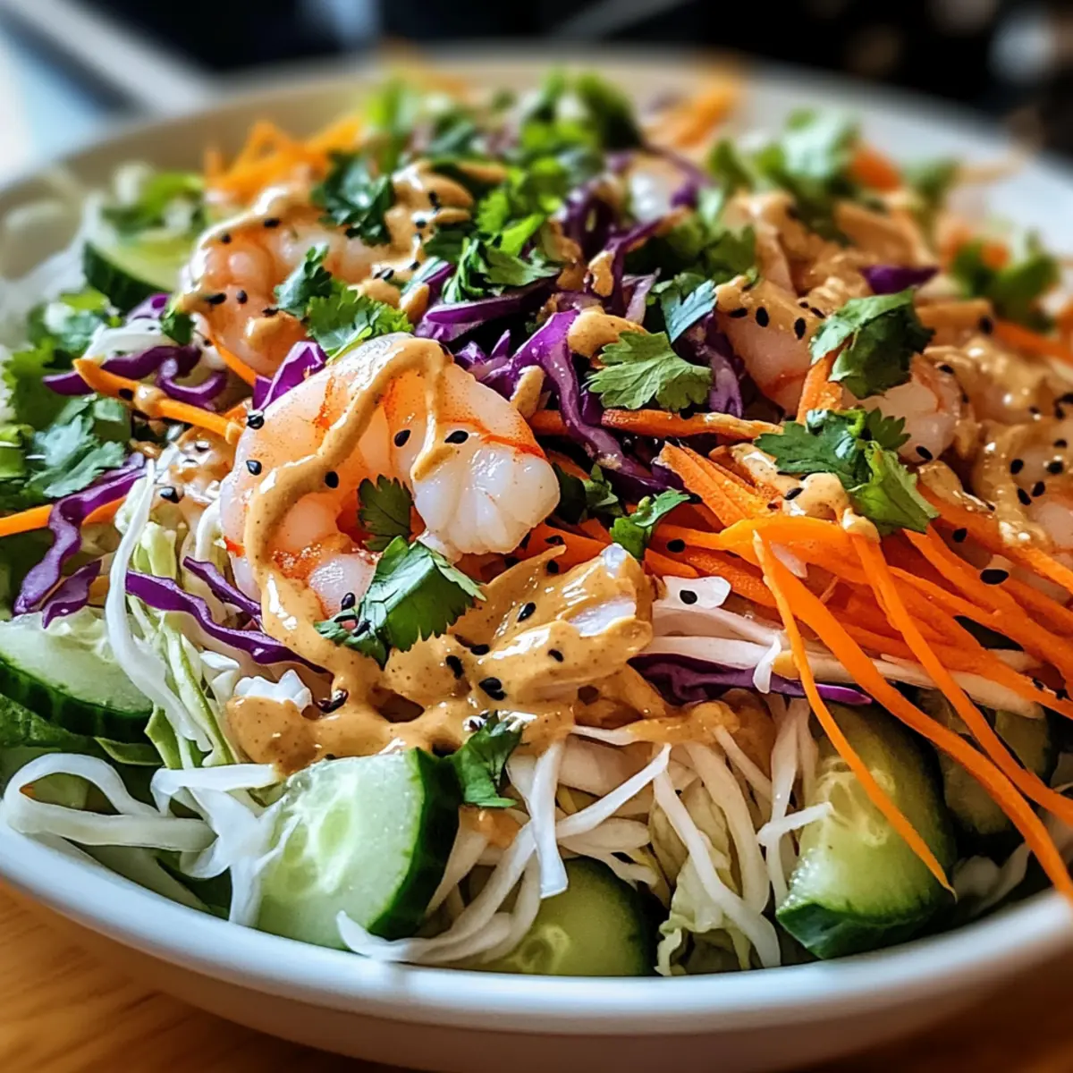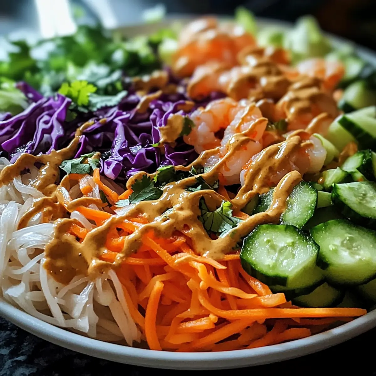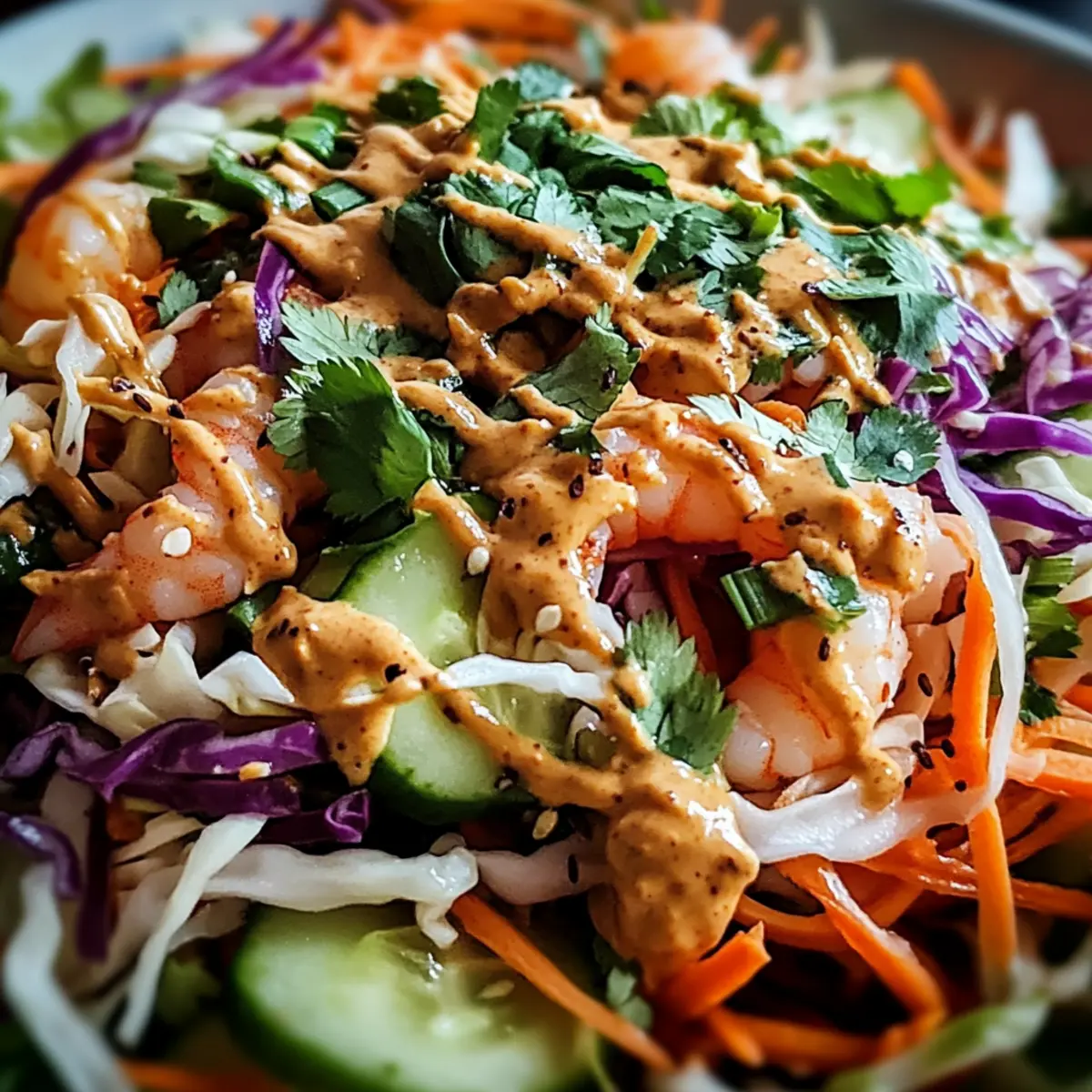 „Hast du jemals einen bunten Salat gesehen, der so frisch aussieht, dass du sofort reinbeißen möchtest?“ Genau so fühlt es sich an, einen Frühlingsrollen-Salat mit Erdnussoße zuzubereiten. Diese gesunde, 30-minütige Mahlzeit kombiniert knackigen Kohl, süße Karotten und einen Hauch von frischer Minze mit einer cremigen, würzigen Erdnussoße. Es ist ja nicht nur ein Genuss fürs Auge, sondern auch eine wahre Geschmacksexplosion! Perfekt für ein schnelles Abendessen nach einem langen Tag, und das Beste daran: Du kannst die Zutaten ganz nach deinem Geschmack anpassen. Egal, ob du einen veganen Twist mit Tofu oder eine proteinreiche Option mit gegrilltem Hähnchen bevorzugst – dieser Salat erfüllt all deine Wünsche. Bist du bereit, deine Küche in ein kleines asiatisches Bistro zu verwandeln? Warum wirst du diesen Salat lieben? Frische Aromen: Dieser Frühlingsrollen-Salat begeistert mit einem bunten Mix aus knackigem Kohl und süßen Karotten. Sie verleihen jedem Bissen eine lebendige Note. Einfache Anpassung: Du kannst die Zutaten ganz nach deinem Geschmack variieren – egal, ob mit Tofu für eine vegane Variante oder mit gegrilltem Hähnchen für mehr Protein. Gesunde Wahl: Mit der cremigen Erdnussoße ist dieses Gericht nicht nur lecker, sondern auch nahrhaft und perfekt für eine schnelle, gesunde Mahlzeit. Schnell zubereitet: In nur 30 Minuten ist dieser Salat fertig – ideal für stressige Wochentage oder überraschende Gäste. Crowd-Pleaser: Er ist eine wunderbare Beilage zu asiatischen Gerichten oder einfach solo – jeder wird ihn lieben! Entdecke auch den Griechischer Krautsalat Gesund oder den Tuerkischer Nudelsalat Koestlich, um dein Repertoire zu erweitern! Frühlingsrollen-Salat Zutaten • Entdecke die köstlichen Zutaten für deinen Frühlingsrollen-Salat mit Erdnussoße! Für den Salat SHREDDING CABBAGE – Für eine perfekte knusprige Basis verwende am besten Napa- oder grünen Kohl. SHREDDING CARROTS – Frisch gerieben sorgt für Süße und Farbe; auch vorverpackte Varianten sind okay. RED BELL PEPPER – Bringt zusätzlichen Geschmack und Farbe; du kannst auch gelbe oder orange Paprika verwenden. CUCUMBER – Für eine erfrischende Knackigkeit; schäle ihn, wenn du eine glattere Textur möchtest. FRESH CILANTRO – Verleiht dem Salat Frische; ersetze ihn durch Petersilie für einen milderen Geschmack. FRESH MINT – Sorgt für aromatische Frische; lasse ihn weg, wenn du keinen zur Hand hast, aber er ist wichtig für den Geschmack. ROASTED PEANUTS – Für einen nussigen Crunch; benutze Sonnenblumenkerne als nussfreien Ersatz. Für das Dressing RICE VINEGAR – Gibt die nötige Säure; alternativ kannst du auch Apfelessig verwenden. SMOOTH PEANUT BUTTER – Grundlage der Soße, die Cremigkeit bietet; probiere Mandel- oder Cashewbutter für Abwechslung. SOY SAUCE – Fügt einen herzhaften Umami-Geschmack hinzu; verwende für eine glutenfreie Variante Tamari oder Kokosaminos. HONEY – Süßt das Dressing; Ahornsirup ist eine großartige vegane Alternative. SESAME OIL – Verleiht eine nussige Tiefe; kann weggelassen werden, falls du ihn nicht hast. FRESH LIME JUICE – Bringt die Aromen zum Strahlen; Zitronensaft funktioniert auch. GARLIC CLOVE – Sorgt für aromatischen Geschmack; fein hacken für gleichmäßige Verteilung. Der Frühlingsrollen-Salat mit Erdnussoße ist nicht nur ein Fest für den Gaumen, sondern auch ein sommerliches Highlight auf jedem Tisch! Schritt-für-Schritt-Anleitung für Frühlingsrollen-Salat mit Erdnussoße Step 1: Gemüse vorbereiten Schneide den Kohl und die Karotten fein und achte darauf, dass die Stücke gleichmäßig sind, um eine schöne Textur zu erzielen. Verwende dazu eine scharfe Reibe oder ein scharfes Messer. Schneide die Paprika und die Gurke dünn, um die Frische des Frühlingsrollen-Salats mit Erdnussoße zu betonen. Dieser Schritt sollte etwa 10 Minuten in Anspruch nehmen. Step 2: Garnelen kochen Erhitze einen Esslöffel Olivenöl in einer großen Pfanne bei mittlerer Hitze. Füge rohe Garnelen hinzu und brate sie 2-3 Minuten lang, bis sie rosa und gar sind. Wenn du bereits gekochte Garnelen verwendest, tau sie einfach auf und gib sie zum Salat. Dies sorgt für eine würzige Proteinquelle in deinem Frühlingsrollen-Salat mit Erdnussoße. Step 3: Dressing zubereiten Gib in eine kleine Schüssel den Reisessig, die Erdnussbutter, die Sojasauce, den Honig, das Sesamöl, den Limettensaft und die fein gehackte Knoblauchzehe. Schlage die Mischung mit einem Schneebesen gut durch, bis eine glatte und cremige Konsistenz erreicht ist. Diese Erdnussoße ist das Herzstück deines Frühlingsrollen-Salats. Step 4: Salat vermengen In einer großen Schüssel mische den vorbereiteten Kohl, die Karotten, die Paprika, die Gurke und die gebratenen Garnelen gut durch. Achte darauf, dass alles gleichmäßig verteilt ist. Dieser Schritt sorgt dafür, dass die frischen Aromen des Frühlingsrollen-Salats mit Erdnussoße perfekt zur Geltung kommen. Step 5: Salat anrichten Träufle das vorher zubereitete Dressing über den Salat und vermische alles vorsichtig, bis der Salat gleichmäßig mit der Erdnussoße überzogen ist. Dies hebt die Aromen hervor und sorgt dafür, dass jeder Bissen köstlich schmeckt. Lass den Salat ein paar Minuten stehen, damit sich die Geschmäcker entfalten können. Step 6: Servieren Gib den fertig zubereiteten Frühlingsrollen-Salat mit Erdnussoße auf eine große Servierplatte oder in Schalen. Garniere ihn mit gehackten Erdnüssen für einen zusätzlichen Crunch. Serviere den Salat sofort, wenn er frisch ist, um den besten Geschmack zu genießen. Expertentipps für Frühlingsrollen-Salat Vorbereitung ist alles: Bereite alle Zutaten im Voraus vor, damit du in der entscheidenden 30-Minuten-Zeit flink durchstarten kannst. So bleibt der Frühlingsrollen-Salat frisch und knackig! Dressing optimieren: Verwende hochqualitative Erdnussbutter für die beste Konsistenz der Erdnussoße. Achte darauf, dass sie cremig is