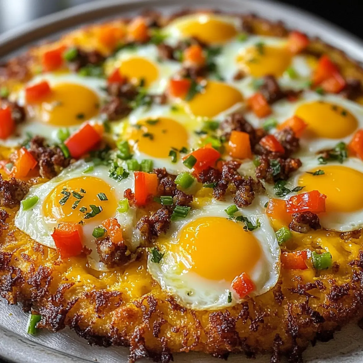 • Diese Frühstücks-Pizza Rösti-Krusten sorgt für ein unvergessliches Frühstückserlebnis!