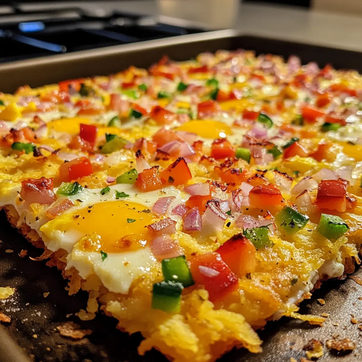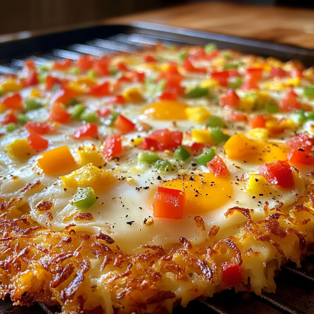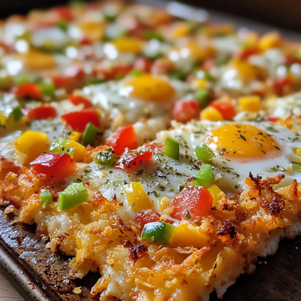 Ich erinnere mich an einen jener faulen Sonntagmorgen, als der Hunger auf ein herzhaftes Frühstück über mich hereinbrach. Plötzlich kam mir die Idee für eine Frühstückspizza mit Kartoffelrösti Kruste – eine wunderbare Mischung aus knusprigen Rösti, geschmolzenem Käse und perfekt gebackenen Eiern. Dieses Rezept bietet nicht nur eine köstliche Möglichkeit, Ihren Morgen zu starten, sondern ist auch unglaublich anpassbar. Sie können ganz einfach eine vegetarische Variante zubereiten oder Ihre Lieblingstoppings ergänzen. Und das Beste: Die Vorbereitung ist schnell und unkompliziert, sodass Sie mehr Zeit mit Ihren Lieben verbringen können. Neugierig darauf, wie Sie mit einfachen Zutaten ein Frühstück kreieren können, das alle begeistert? Lassen Sie uns loslegen! Warum werden Sie dieses Rezept lieben? Vielseitigkeit: Ob mit Bacon oder ganz vegetarisch, die Frühstückspizza mit Kartoffelrösti Kruste lässt sich nach Belieben anpassen. Schnell zubereitet: In nur wenigen Schritten zaubern Sie ein köstliches Frühstück, das sich perfekt für spontane Brunch-Partys eignet. Herzhafter Genuss: Die Kombination aus knusprigen Rösti und geschmolzenem Käse sorgt für ein unvergleichliches Geschmackserlebnis. Besonders gut geeignet: Ideal, um Ihre Gäste zu begeistern oder auch einfach für einen besonderen Sonntagmorgen. Vorratsfreundlich: Die vorbereitete Kruste kann im Voraus zubereitet und bei Bedarf schnell belegt werden – so bleibt mehr Zeit für den Genuss Frühstückspizza Kartoffelrösti Kruste Zutaten Hinweis: Hier sind die Zutaten, mit denen Sie die köstliche Frühstückspizza mit Kartoffelrösti Kruste zubereiten können. Für die Kruste • Gefrorene, geriebene Kartoffeln – Die Basis für die Kruste; stellen Sie sicher, dass die Feuchtigkeit entfernt wird, um optimale Knusprigkeit zu erzielen. • Ungesalzene Butter (2 Esslöffel) – Bindet die Kruste und sorgt für Reichhaltigkeit; verwenden Sie geklärte Butter für eine noch knusprigere Textur. • Salz (1/2 Teelöffel) – Verbessert den gesamten Geschmack der Kruste. • Gemahlener schwarzer Pfeffer (1/2 Teelöffel) – Fügt Wärme und Tiefe zum Geschmack der Kruste hinzu. Für die Toppings • Geriebener Cheddar-Käse (1 Tasse) – Krönt die Pizza und sorgt für Cremigkeit und Geschmack. • Gekochte Frühstückswurst/Bacon (1/2 Tasse, optional) – Fügt Protein und einen herzhaften Geschmack hinzu; kann durch pflanzliche Alternativen ersetzt werden. • Würfelig geschnittener Paprika (1/2 Tasse) – Bringt Farbe und Süße ins Spiel; kann durch andere Gemüsevariationen ersetzt werden. • Gehackte Frühlingszwiebeln (1/4 Tasse) – Fügt Frische und Biss zu den Toppings hinzu. • Große Eier (4) – Das Herzstück des Gerichts, bietet Protein und Reichhaltigkeit. • Paprika (1/4 Teelöffel) – Für Würze und einen Hauch von Rauchigkeit. • Salz und Pfeffer (nach Geschmack) – Für abschließende Würze. Genießen Sie die zubereitete Frühstückspizza mit Kartoffelrösti Kruste, die nicht nur köstlich ist, sondern auch individuell angepasst werden kann! Schritt-für-Schritt-Anleitungen für Frühstückspizza Kartoffelrösti Kruste Step 1: Ofen vorheizen Heizen Sie den Ofen auf 220°C (425°F) vor. Fetten Sie eine 30 cm (12 Zoll) große ofenfeste Pfanne oder Pizzaplatte mit Butter oder Öl ein, damit die Frühstückspizza mit Kartoffelrösti Kruste später nicht ankleben kann. Achten Sie darauf, die Pfanne gleichmäßig zu bedecken, um eine perfekte Kruste zu erhalten. Step 2: Kartoffelrösti vorbereiten In einer Rührschüssel die aufgetauten und gut ausgedrückten gefrorenen geriebenen Kartoffeln mit geschmolzener Butter, Salz und Pfeffer vermengen. Diese Mischung sorgt für eine schmackhafte und knusprige Kruste. Mischen Sie alles gründlich, damit sich die Gewürze gleichmäßig verteilen, und bereiten Sie sich darauf vor, die Mischung in die Pfanne zu drücken. Step 3: Kruste formen Drücken Sie die Kartoffelrösti-Mischung gleichmäßig in die vorbereitete Pfanne. Formen Sie die Ränder leicht erhöht, um eine schöne Kante für die Pizza zu schaffen. Achten Sie darauf, dass die Kruste gleichmäßig dick ist, damit sie beim Backen gleichmäßig bräunt und knusprig wird. Step 4: Kruste backen Backen Sie die Kruste für 20 bis 25 Minuten im vorgeheizten Ofen, bis sie goldbraun und knusprig ist. Beobachten Sie dabei die Ränder, die leicht dunkel werden sollten. Diese perfekte Farbe zeigt an, dass die Grundlage bereit für die köstlichen Toppings ist. Step 5: Toppings anrichten Entnehmen Sie die Kruste aus dem Ofen und verteilen Sie gleichmäßig den geriebenen Cheddar-Käse, die gekochte Wurst oder den Bacon (falls verwendet), den gewürfelten Paprika und die gehackten Frühlingszwiebeln darauf. Stellen Sie sicher, dass die Zutaten gleichmäßig verteilt sind, um jedem Stück der Frühstückspizza mit Kartoffelrösti Kruste zusätzlichen Geschmack zu verleihen. Step 6: Eier hinzufügen Machen Sie kleine Mulden in den Toppings und schlagen Sie in jede Mulde ein Ei auf. Würzen Sie die Eier mit Paprika, Salz und Pfeffer, um zusätzlichen Geschmack hinzuzufügen. Diese Eier werden das Herzstück der Frühstückspizza darstellen und eine wunderbare cremige Textur bieten. Step 7: Fertig backen Backen Sie die Pizza für weitere 10 bis 12 Minuten, bis das Eiweiß gestockt und die Eigelbe nach Ihrem Wunsch gegart sind. Achten Sie darauf, dass die Eier nicht zu trocken werden; das Eigelb kann leicht flüssig bleiben, um einen köstlichen Biss zu bieten. Step 8: Abkühlen und Servieren Lassen Sie die Frühstückspizza mit Kartoffelrösti Kruste nach dem Backen 3 Minuten abkühlen, bevor Sie sie in Stücke schneiden und servieren. Diese kurze Zeit lässt die Kruste etwas festen und macht das Servieren einfacher. Genießen Sie Ihr herzhaftes Frühstück! Variationen & Alternativen zur Frühstückspizza Lassen Sie Ihrer Kreativität freien Lauf und passen Sie diese Frühstückspizza nach Ihrem Geschmac