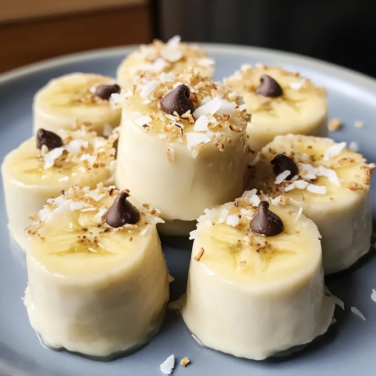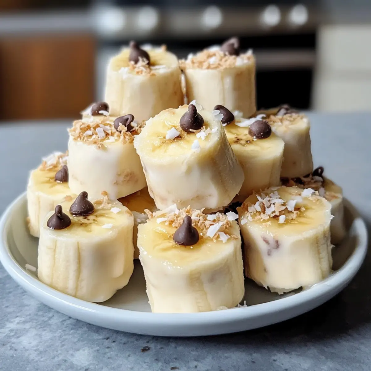 Es gibt nichts Besseres als einen heißen Sommertag, an dem ich die Kühle eines erfrischenden Snacks mit meiner Familie genieße. Diese gefrorenen Bananen-Joghurt-Bissen sind genau das Richtige für einen solchen Moment: Die perfekte Kombination aus natürlicher Süße und einem spritzigen Joghurtgeschmack. Diese einfache Rezeptidee ermöglicht es, mit minimalem Aufwand einen gesunden Snack zuzubereiten, der nicht nur großartig schmeckt, sondern auch ideal für jeden ist, der sich von Fast Food verabschieden möchte. Egal, ob du mit deinen Kindern in der Küche experimentierst oder einfach nur etwas Leckeres für dich selbst zaubern möchtest, diese Bananen-Joghurt-Bissen machen jedem Freude. Hast du dir schon überlegt, welche Toppings du ausprobieren möchtest? Warum sind gefrorene Bananen-Joghurt-Bissen so beliebt? Gesunde Wahl: Diese gefrorenen Bananen-Joghurt-Bissen sind der perfekte Snack für gesundheitsbewusste Genießer. Sie bieten eine köstliche, kalorienarme Alternative zu herkömmlichen Süßigkeiten. Einfache Zubereitung: Mit nur wenigen Zutaten und minimalem Aufwand lassen sich diese Bissen im Handumdrehen zubereiten – ideal für vielbeschäftigte Menschen oder Eltern, die mit ihren Kindern kochen möchten. Kreative Variationen: Du kannst mit verschiedenen Toppings experimentieren, wie z.B. Schokoladenstückchen oder gehackten Nüssen, um deinem Snack eine persönliche Note zu verleihen. Erfrischender Genuss: Perfekt für heiße Tage, wird jeder Bissen dich mit seiner cremigen Textur und dem spritzigen Geschmack begeistern. Familienfreundlich: Egal ob für Kinder oder Erwachsene, dieser Snack kommt immer gut an und macht das gemeinsame Essen zu einem Erlebnis. Zutaten für gefrorene Bananen-Joghurt-Bissen • Diese gefrorenen Bananen-Joghurt-Bissen sind nicht nur lecker, sondern auch gesund! Für die Bissen Reife Bananen – Die natürliche Süße sorgt für ein fantastisches Geschmackserlebnis; wähle feste Bananen für die beste Konsistenz. Naturjoghurt (Griechischer Joghurt) – Für eine cremige Textur und einen Proteinboost; du kannst auch pflanzliche Alternativen verwenden, um sie vegan zu machen. Süßungsmittel (Honig, Ahornsirup oder Agavendicksaft) – Verleiht zusätzliche Süße; passe die Menge deinem Geschmack an oder lasse es ganz weg, um sie kalorienfrei zu genießen. Reiner Vanilleextrakt – Für eine geschmackliche Verfeinerung; optional, aber empfehlenswert für einen intensiveren Geschmack. Für die Toppings Mini-Schokoladenstückchen (optional) – Sie bringen einen extra Süßigkeitskick; um die Rezeptur milchfrei zu halten, wähle vegane Schokolade. Fein gehackte Nüsse (optional) – Für einen knackigen Biss; ersetze sie durch Samen, um eine nussfreie Variante zu kreieren. Geraspelte Kokosnuss (optional) – Fügt eine tropische Note hinzu; weglassen, wenn eine Kokosnussallergie besteht. Kakaopulver (optional) – Für eine schokoladige Variante; mische es mit dem Joghurt für ein köstliches Erlebnis. Zimt oder Muskatnuss (optional) – Für eine angenehme Wärme und Gewürznuancen; verwende es, um das Geschmacksprofil zu verbessern. Nutze diese Zutaten, um deine gefrorenen Bananen-Joghurt-Bissen zu kreieren, die nicht nur einfach zuzubereiten sind, sondern auch die perfekte gesunde Snack-Option für die ganze Familie darstellen! Schritt-für-Schritt-Anleitung für gefrorene Bananen-Joghurt-Bissen Step 1: Backbleche vorbereiten Lege zwei große Backbleche mit Pergamentpapier oder Silikonmatten aus. Achte darauf, dass die Oberflächen gut ausgekleidet sind, um ein Anhaften der gefrorenen Bananen-Joghurt-Bissen zu verhindern. Diese Vorbereitung ist wichtig, um die Bissen später einfach davon lösen zu können. Step 2: Bananen schneiden Schäle die reifen Bananen und schneide sie in 1,5 cm dicke Scheiben. Diese Dicke sorgt dafür, dass die Bissen beim Einfrieren stabil bleiben und sich gut mit dem Joghurt verbinden. Auf diese Weise kannst du sicherstellen, dass sie nach dem Einfrieren die perfekte Konsistenz haben. Step 3: Joghurt mischen Gib den griechischen Joghurt in eine Schüssel und füge nach Geschmack das Süßungsmittel sowie den Vanilleextrakt hinzu. Rühre alles gut um, bis die Mischung cremig und gleichmäßig ist. Optional kannst du auch Kakaopulver oder andere Aromen hinzufügen, um den gefrorenen Bananen-Joghurt-Bissen einen besonderen Touch zu verleihen. Step 4: Bananen tauchen Nehme jede Bananenscheibe und tauche sie vollständig in die Joghurtmischung, sodass sie gleichmäßig bedeckt ist. Lasse überschüssigen Joghurt abtropfen, bevor du die Scheibe auf das Backblech legst. Dies gewährleistet, dass die Bananen gut beschichtet sind und beim Einfrieren nicht zerfließen. Step 5: Scheiben anordnen Platziere die getauchten Bananenscheiben auf den Backblechen, wobei du darauf achtest, dass sie sich nicht berühren. Diese Anordnung hilft, dass die gefrorenen Bananen-Joghurt-Bissen separat bleiben und leicht entnommen werden können. Wenn du zusätzliche Toppings nutzen möchtest, solltest du sie jetzt direkt auf die Bissen geben. Step 6: Einfrieren Gib die Backbleche in den Gefrierschrank und lasse die Bananen-Joghurt-Bissen für 2-3 Stunden gefrieren, bis sie fest sind. Achte darauf, dass sie gleichmäßig gefrieren, um eine beste Textur und einen angenehmen Biss zu garantieren. Du kannst sie auch über Nacht einfrieren, wenn du sie später genießen möchtest. Step 7: Servieren/Aufbewahren Nehme die gefrorenen Bananen-Joghurt-Bissen aus dem Gefrierfach und löse sie vorsichtig vom Pergamentpapier. Wenn du sie nicht sofort servierst, bewahre die Bissen in einem luftdichten Behälter im Gefrierfach auf und schichte Zwischenschichten mit Pergamentpapier ein, um ein Aneinanderkleben zu vermeiden. So bleiben sie frisch für bis zu 2-3 Wochen. Expert Tips für gefrorene Bananen-Joghurt-Bissen Festigkeit der Bananen: Achte darauf, dass die Bananen reif, aber fest sind. So lassen sie sich leicht schneiden und beschichten. Gleichmäßig