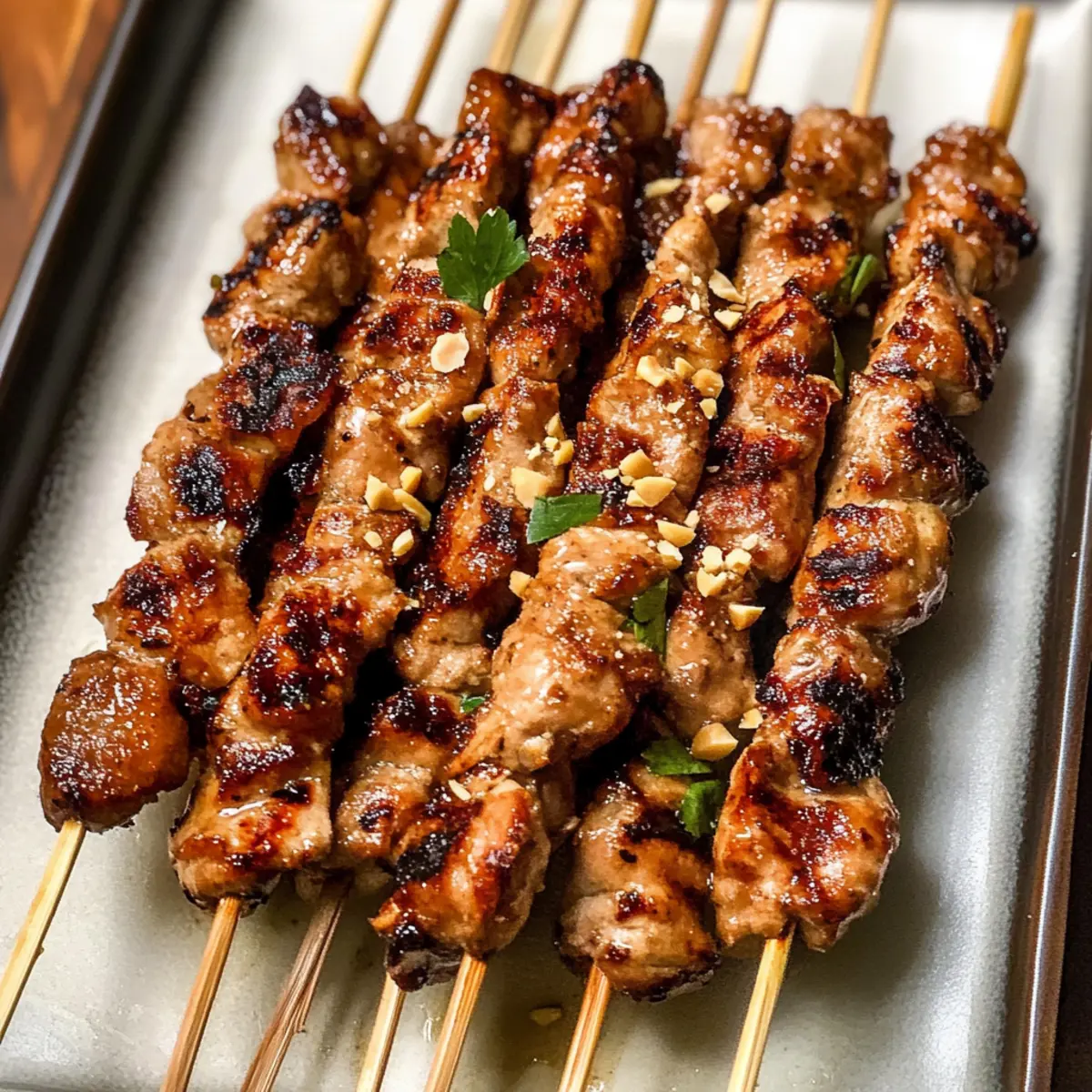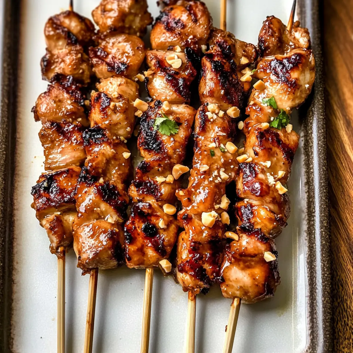 Wenn das Grillen einer der Höhepunkte des Sommers ist, dann sind die Gegrillten thailändischen Kokosnuss-Hähnchenspieße der absolute Star am Abend. Mit einer köstlichen Marinade aus frischem Ingwer, aromatischem Knoblauch und cremiger Kokosnuss entführen diese Spieße direkt ins tropische Paradies. Die Zubereitung ist nicht nur überraschend schnell, sondern bringt auch die Familie und Freunde zusammen, um einen Hauch von Asien in eure Küche zu bringen. Und das Beste daran? Sie sind sowohl als Hauptgericht als auch als Appetizer perfekt geeignet! Hast du Lust, diese leckeren Spieße selbst auszuprobieren? Lass uns gemeinsam in die Welt der Aromen eintauchen! Warum werden diese Spieße dein Favorit sein? Einfachheit: Die Zubereitung der Gegrillten thailändischen Kokosnuss-Hähnchenspieße ist kinderleicht und benötigt keine fortgeschrittenen Kochkünste. Aromatische Fusion: Die Verwendung von frischem Ingwer und Knoblauch sorgt für eine harmonische Geschmackskomposition, die deine Geschmacksknospen verzaubern wird. Vielseitig: Ob als Hauptgericht oder als köstlicher Snack für deine nächste Grillparty – diese Spieße sind immer ein Hit! Du kannst sie sogar mit Gemüse oder verschiedenen Fleischalternativen zubereiten. Schnell zubereitet: Mit nur wenigen Zutaten und einer kurzen Marinierzeit sind diese Spieße perfekt, wenn du Gäste erwartest oder einfach nur Lust auf etwas Leckeres hast. Gesund und schmackhaft: Mit nur 190 Kalorien pro Spieß sind sie eine gesunde Wahl, die keine Kompromisse beim Geschmack eingeht. Perfekt für die ganze Familie! Entdecke auch unsere Tipps zum Servieren und Lagern der Spieße, um das volle Potenzial dieses Rezeptes auszuschöpfen! Gegrillte thailändische Kokosnuss-Hähnchenspieße Zutaten Hinweis: Diese Zutaten sorgen dafür, dass deine gegrillten thailändischen Kokosnuss-Hähnchenspieße zauberhaft werden! Für die Marinade • Hähnchen (dunkles Fleisch vorzugsweise) – Hauptproteinquelle, die Zartheit und vollen Geschmack bietet; weißes Fleisch kann verwendet werden, benötigt aber längere Grillzeit. • Ingwer – Fügt aromatische Schärfe hinzu; frischer Ingwer garantiert den besten Geschmack, aber Pulver ist eine akzeptable Alternative. • Knoblauch – Verleiht herzhaften Tiefgang; frischer Knoblauch ist ideal, aber im Notfall geht auch abgepackter. • Sojasauce – Sorgt für Salzigkeit und Umami; Tamari ist eine glutenfreie Option. • Dunkle Sojasauce – Fügt tiefere Farbe und Geschmacksnuancen hinzu; helle Sojasauce kann als Ersatz dienen, verändert jedoch den Geschmack. • Kokoscreme – Sorgt für Reichhaltigkeit und Cremigkeit; kann durch vollfette Kokosmilch ersetzt werden. • Zucker – Balanciert die Aromen mit Süße; brauner Zucker bietet eine tiefere Geschmacksebene. • Austernsauce – Fügt Umami hinzu; kann durch Sojasauce mit einem Hauch Zucker ersetzt werden, wenn nicht verfügbar. • Honig – Verwendet in der Glasur für Süße und Karamellisierung; Agavensirup ist eine vegane Alternative. Für die Erdnusssauce • Erdnussbutter – Basis für die optionale Dipsauce, die Cremigkeit sorgt; natürliche oder ungesüßte Sorten sind am besten. • Reisessig – Fügt der Erdnusssauce Säure hinzu; Apfelessig kann ebenfalls verwendet werden. • Thailändische rote Currypaste – Bietet würzige und aromatische Noten; die Menge anpassen, je nach gewünschtem Schärfegrad. • Ahornsirup – Sorgt für Süße in der Erdnusssauce; Honig kann alternativ verwendet werden. • Wasser – Dient zur Anpassung der Konsistenz der Sauce; nach Bedarf verwenden. • Sesamöl – Optional; bringt nussigen Geschmack ein. • Chiliöl – Optional; fügt Schärfe hinzu; nach Geschmack anpassen. • Gehackte Erdnüsse – Optische und geschmackliche Garnitur, die zusätzlichen Crunch bietet. Schritt-für-Schritt-Anleitung für Gegrillte thailändische Kokosnuss-Hähnchenspieße Step 1: Marinade vorbereiten Zuerst den Ingwer und den Knoblauch fein hacken. In einer Schüssel die gehackten Zutaten mit der Sojasauce, der dunklen Sojasauce, der Kokoscreme, dem Zucker und der Austernsauce gut vermengen. Die Mischung sollte cremig und aromatisch sein. Dies bildet die Basis für die köstlichen Gegrillten thailändischen Kokosnuss-Hähnchenspieße. Step 2: Hähnchen marinieren Das Hähnchen in 2,5 cm große Stücke schneiden und in die vorbereitete Marinade geben. Gut umrühren, sodass alle Stücke gleichmäßig bedeckt sind. Anschließend die Schüssel abdecken und für mindestens 1 bis 2 Stunden oder besser über Nacht im Kühlschrank ruhen lassen, damit die Aromen einziehen können. Step 3: Spieße vorbereiten Während das Hähnchen mariniert, die Holzspieße in Wasser einweichen, um ein Anbrennen während des Grillens zu verhindern. Dies sollte mindestens 30 Minuten vor dem Grillen erfolgen. Nach dem Einweichen das marinierte Hähnchen eng aneinander auf die Spieße stecken, sodass Platz zwischen den Stückchen bleibt, um eine gleichmäßige Garung zu gewährleisten. Step 4: Hähnchenspieße grillen Den Grill auf 260 °C (500 °F) vorheizen. Die Spieße über direkter Hitze für etwa 15 bis 18 Minuten grillen. Dabei alle 2 bis 3 Minuten wenden, bis das Hähnchen eine goldbraune Färbung und eine Kerntemperatur von 75 °C erreicht hat. So erhalten die Gegrillten thailändischen Kokosnuss-Hähnchenspieße eine schöne Grillmarkierung und sind gleichzeitig saftig. Step 5: Glasur anwenden In den letzten 5 Minuten des Grillens die Skewers mit einem Pinsel leicht mit Kokoscreme bestreichen. Dies sorgt für eine süße, glanzvolle Oberfläche und verstärkt den köstlichen Kokosgeschmack auf den Spießen. Achte darauf, nicht zu viel zu verwenden, um eine Überlagerung der Aromen zu vermeiden. Step 6: Servieren Die Gegrillten thailändischen Kokosnuss-Hähnchenspieße sofort servieren. Du kannst sie auf einem Bett aus frischem Salat anrichten und optional mit einer cremigen Erdnusssauce zum Dippen servieren. Die Spieße sind nicht 