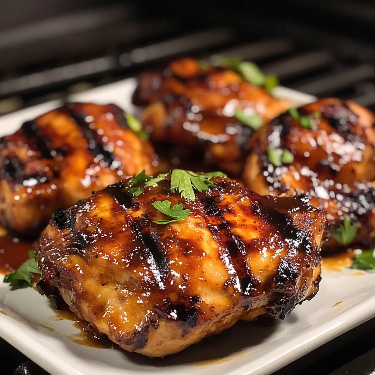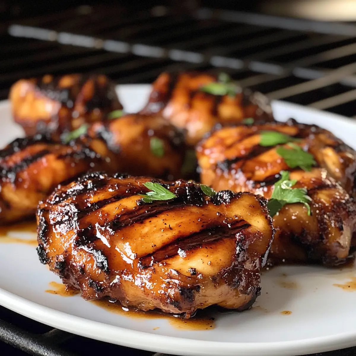 Wenn der Grill angeheizt wird und der köstliche Duft von mariniertem Hähnchen in der Luft liegt, weiß ich, dass ein Grillfest in vollem Gange ist! Mein Rezept für Sticky Grilled Chicken verwandelt jede BBQ-Session in ein geschmackliches Erlebnis, bei dem süße und herzhafte Aromen sich perfekt vereinen. Nicht nur ist dieses gegrillte Hähnchen einfach zuzubereiten, sondern es begeistert garantiert die ganze Familie – von den Kleinen bis zu den Großen. Die optimale Marinade sorgt dafür, dass jedes Stück saftig und zart bleibt, während das Karamellisieren auf dem Grill eine unwiderstehliche Glasur zaubert. Bereitet euch darauf vor, den Grill zum Glühen zu bringen und herauszufinden, wie ihr dieses Geschmackserlebnis selbst kreieren könnt – seid ihr bereit? Warum wird dieses Rezept begeistern? Einfachheit: Die Zubereitung könnte nicht einfacher sein! Nur wenige Schritte und einfache Zutaten verwandeln euer Grillhähnchen in einen wahren Genuss. Vielseitigkeit: Ihr könnt die Marinade nach eurem Geschmack anpassen – egal ob mit mehr Gewürzen oder anderen Zutaten, immer ein Genuss! Familienfreundlich: Dieses Rezept überzeugt Kinder und Erwachsene gleichermaßen, ideal für BBQs mit der ganzen Familie. Unwiderstehlicher Geschmack: Die Kombination aus süßen und herzhaften Aromen sorgt für ein Geschmacksfeuerwerk, das die Finger zum Lecken einlädt. Zeitersparend: Mit einer kurzen Marinierzeit von nur 3 Stunden oder über Nacht könnt ihr euer Hähnchen ganz flexibel vorbereiten. Perfekte Textur: Das Ergebnis ist saftig, zart und mit einer glänzenden Glasur versehen – die perfekte Ergänzung zu euren Grillfesten. Probiert dazu unbedingt einige Beilagen für das BBQ! Gegrilltes Hähnchen Zutaten • Diese Zutaten sind alles, was ihr braucht, um das perfekte gegrillte Hähnchen mit einer klebrigen Marinade zu kreieren! Für die Marinade Hähnchenschenkel – verwenden Sie skinless und boneless für optimale Marinierung und zarte Textur. Ketchup – sorgt für Süße und Feuchtigkeit; kann durch Tomatensauce oder BBQ-Sauce ersetzt werden. Brauner Zucker – bringt die nötige Süße und Karamellisierung; weißer Zucker oder Honig sind ebenfalls Alternativen. Sojasauce – verleiht einen herzhaften Umami-Geschmack; nutzen Sie hellere Sojasauce, um übermäßige Salzigkeit zu vermeiden. Apfelessig – sorgt für die notwendige Säure zur Balance der Süße; weißer Wein- oder Reisessig können als Substitute verwendet werden. Olivenöl – fördert die Feuchtigkeit und den Geschmack; kann auch in Pflanzen- oder Rapsöl getauscht werden. Worcestershire-Sauce – bietet Tiefe im Geschmack; für einen schnellen Ersatz verwenden Sie Pfeffer und andere flüssige Zutaten. Schritt-für-Schritt-Anleitung für Gegrilltes Hähnchen mit Klebriger Marinade Step 1: Marinade zubereiten In einer großen Schüssel die Marinade zubereiten, indem ihr Ketchup, braunen Zucker, Sojasauce, Apfelessig, Olivenöl, Worcestershire-Sauce und gehackten Knoblauch gründlich vermischt. Diese Mischung sollte eine glatte, homogene Konsistenz haben. Taucht das Hähnchen hinein und stellt sicher, dass jedes Stück gut mit der Marinade bedeckt ist. Step 2: Marinieren Reserviert 1/2 Tasse der Marinade, um sie später als Glasur zu benutzen. Danach das marinierte Hähnchen in die Schüssel zurücklegen und abdecken. Stellt sicher, dass das Hähnchen mindestens 3 Stunden oder besser über Nacht im Kühlschrank mariniert, um den vollen Geschmack der klebrigen Marinade zu entfalten. Step 3: Grill vorheizen Bevor ihr mit dem Grillen beginnt, heizt den Grill auf mittlere Hitze vor, etwa 180–200 °C. Um sicherzustellen, dass das Hähnchen nicht anklebt, bürstet ihr den Grillrost mit etwas Pflanzenöl. Achtet darauf, dass der Grill richtig vorgeheizt ist, bevor ihr das Hähnchen darauflegt. Step 4: Hähnchen grillen Legt die marinierten Hähnchenschenkel auf den Grill und lasst sie 4 Minuten auf einer Seite grillen, bis sie eine goldbraune, karamellisierte Oberfläche haben. Dreht die Stücke vorsichtig um und bestreicht sie sofort mit der reservierten Marinade, um zusätzlichen Geschmack hinzuzufügen und die klebrige Glasur zu fördern. Step 5: Weiter grillen und glasieren Grillt das Hähnchen weitere 4 Minuten, während ihr es weiterhin mit der Marinade bestreicht. Achtet darauf, die Temperatur konstant zu halten, um ein Anbrennen des Zuckeranteils zu vermeiden. Wenn das Fleisch eine Innentemperatur von 75 °C erreicht hat und der Saft klar ist, ist es vollständig gegart. Step 6: Ruhen lassen und servieren Nehmt das Hähnchen vom Grill und lasst es 3 Minuten ruhen, damit sich die Säfte setzen können. Dies sorgt für eine saftigere Textur. Serviert das gegrillte Hähnchen anschließend heiß, eventuell garniert mit frischer Petersilie, um das Auge anzusprechen und zusätzliches Aroma hinzuzufügen. Was passt zu Gegrilltem Hähnchen mit Klebriger Marinade? Dieser köstliche Genuss verführt mit seinen süßen und herzhaften Aromen und ist die perfekte Grundlage für ein unvergessliches BBQ-Event. Cremige Kartoffelpüree: Ein zartes, cremiges Kartoffelpüree ist ein wunderbarer Kontrast zur Karamellisierung der Hähnchensauce und bietet eine beruhigende Grundlage. Es nimmt die Aromen der Marinade perfekt auf und ergänzt das Gericht ideal. Frischer Coleslaw: Knackiger Coleslaw bringt eine erfrischende Textur und einen Hauch von Säure in die Mischung. Der Salat sorgt für einen köstlichen, knusprigen Biss und eine harmonische Balance zu den süßen Aromen des Hähnchens. Gegrillter Gemüse-Mix: Grillt saisonales Gemüse wie Zucchini, Paprika und Auberginen, um eine köstliche, farbenfrohe Beilage zu zaubern. Das geröstete Aroma verstärkt die Grillnoten des Hähnchens und sorgt für eine gesunde Ergänzung. BBQ-Bohnen: Würzige BBQ-Bohnen runden das Gericht perfekt ab. Ihr rauchiger Geschmack harmoniert hervorragend mit der süßen Marinade und führt zu einem vollmundigen Geschmackserlebnis. Maiskolben: Safti