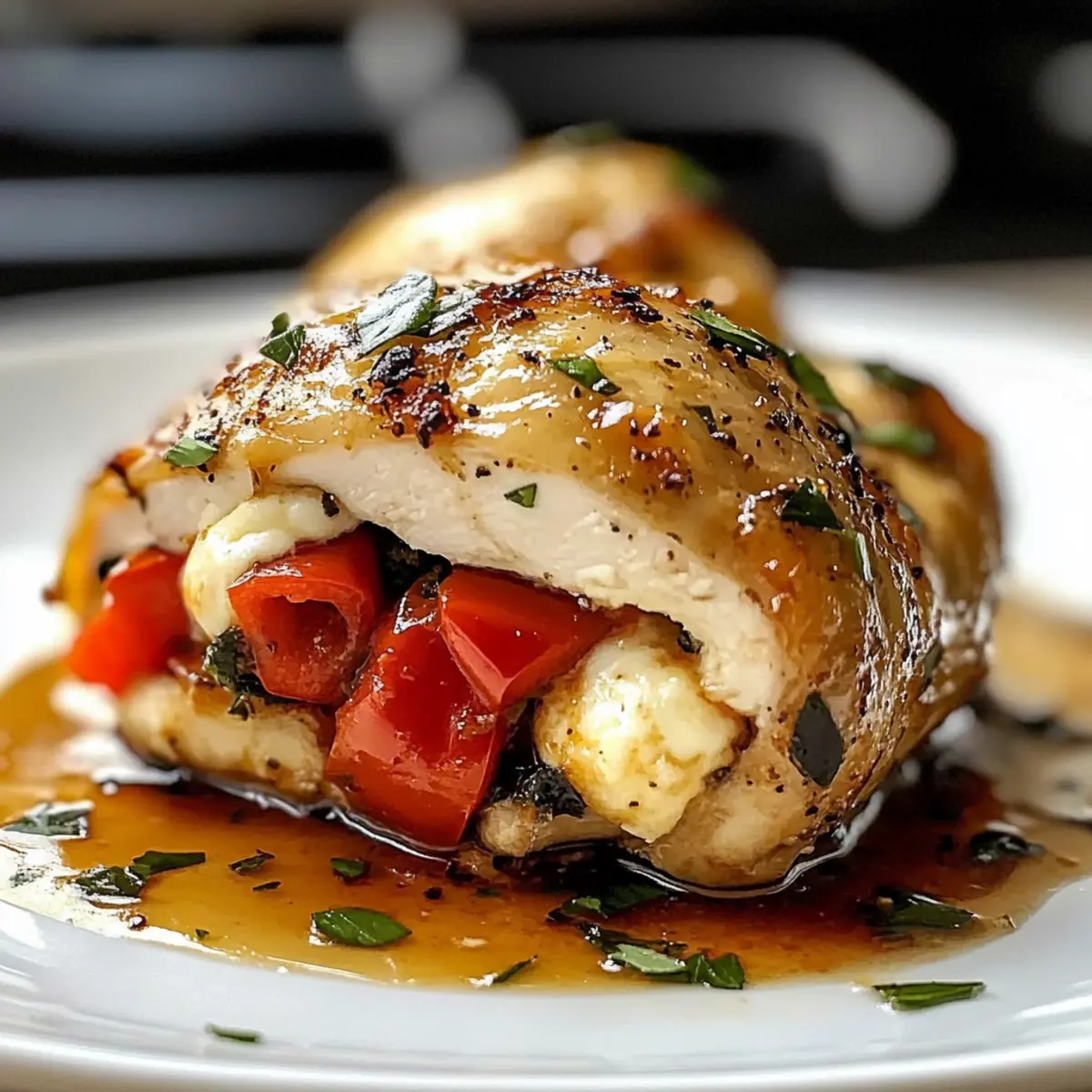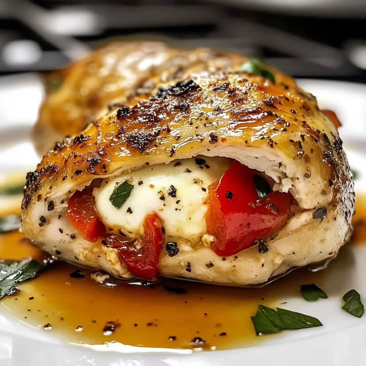 Geröstete rote Paprika und Mozzarella gefülltes Huhn