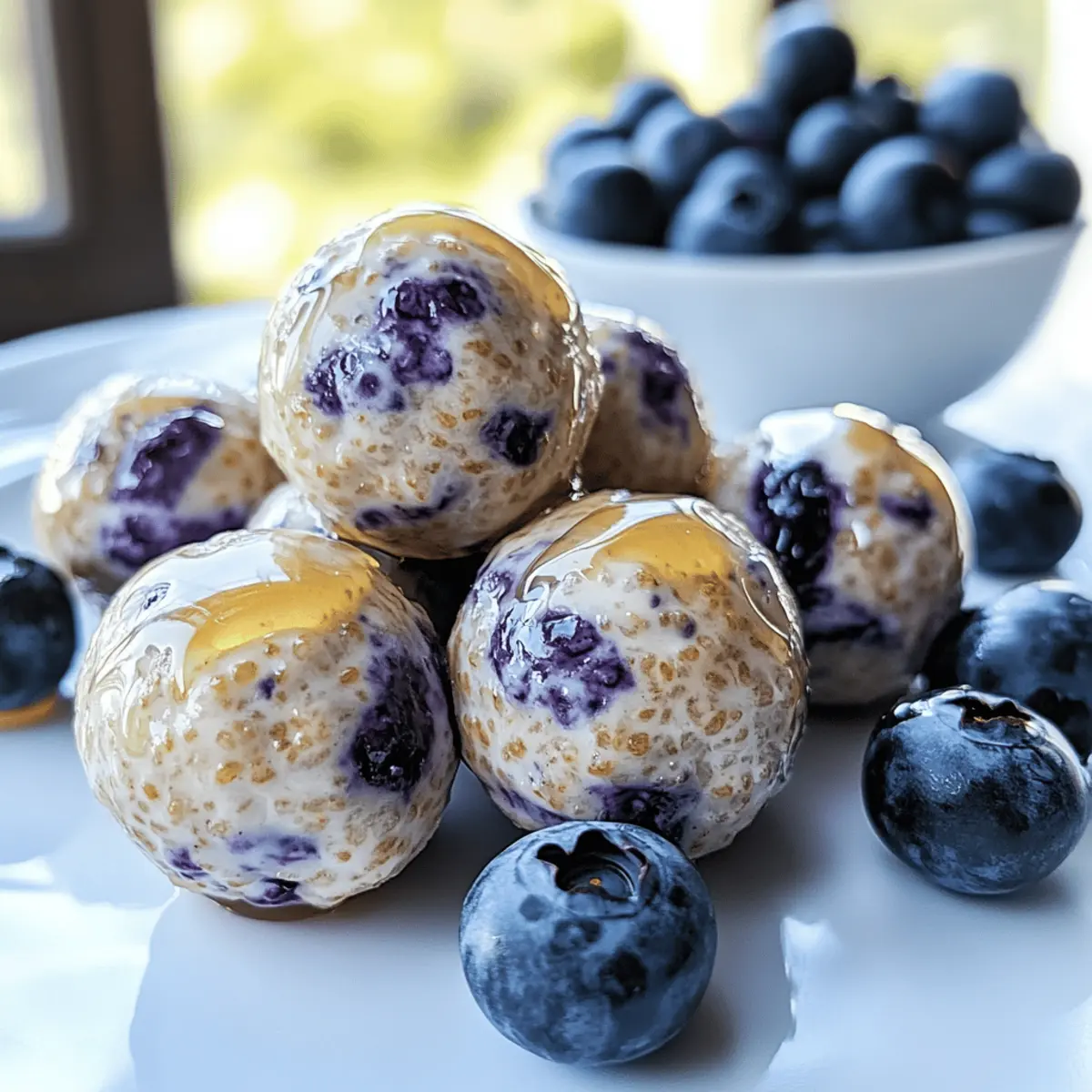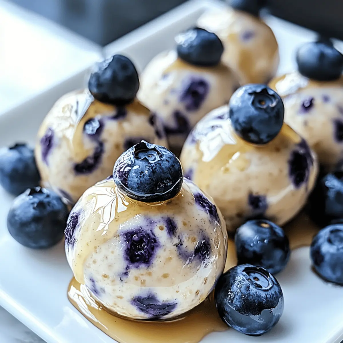 Ein guter Snack kann oft der Unterschied zwischen einem produktiven Tag und einem, an dem wir nach Junkfood greifen, sein. Genau hier kommen die No-Bake Blueberry Cheesecake Protein Bites ins Spiel! Diese kleinen, aber feinen Leckerbissen sind nicht nur blitzschnell in nur 10 Minuten zubereitet, sie bieten auch einen gesunden und proteinreichen Energieschub. Perfekt für alle, die sich nach einer köstlichen und nahrhaften Alternative sehnen! Ob nach dem Training, als Snack für die Kids oder einfach als süße Auszeit zwischendurch – diese glutenfreien Happen sind vielseitig anpassbar und bringen Freude in deine Snack-Routine. Bist du bereit, die Zubereitung von gesunden Snacks zu revolutionieren? Lass uns gemeinsam loslegen! Warum wirst du dieses Rezept lieben? Schnelle Zubereitung: In nur 10 Minuten zauberst du diese proteinreichen Snacks, perfekt für den hektischen Alltag. Gesunde Zutaten: Mit glutenfreien und anpassbaren Komponenten sind sie ideal für jede Diät. Vielseitige Variationen: Ob mit Erdbeeren oder einem Schuss Schokolade, du kannst deinen Lieblingsgeschmack kreieren! Nährstoffreiche Energie: Jeder Biss bietet eine ausgewogene Mischung aus Proteinen, gesunden Fetten und Ballaststoffen. Perfekt für alle Anlässe: Ideale Begleiter für Post-Workout-Snacks oder das Mittagessen der Kinder. Einfache Lagerung: Diese Snacks bleiben in einem luftdichten Behälter bis zu einer Woche frisch im Kühlschrank. Gesunde Blaubeer-Cheesecake Proteinbissen Zutaten • Diese köstlichen Bisse sind nicht nur lecker, sondern auch eine gesunde Snack-Option! Für die Masse Haferflocken – sorgen für Struktur und Ballaststoffe; du kannst auch schnelle Haferflocken für eine glattere Textur verwenden. Mandelmehl – liefert gesunde Fette und wenig Kohlenhydrate; ersetze es mit Hafermehl für eine nussfreie Option. Vanille-Protein-Pulver – unverzichtbar für einen Proteinschub; jede Geschmacksrichtung funktioniert. Frischkäse (weich) – sorgt für Cremigkeit und Reichhaltigkeit; verwende vegane Frischkäsealternative für eine pflanzliche Version. Griechischer Joghurt – steigert die Cremigkeit und den Proteingehalt; verwende Kokosjoghurt als milchfreie Alternative. Honig oder Ahornsirup – sorgt für die nötige Süße; Agavensirup oder Stevia sind Alternativen für eine zuckerreduzierte Variante. Frische oder gefrorene Blaubeeren – bieten Antioxidantien und natürliche Süße; du kannst auch Himbeeren oder getrocknete Früchte verwenden, um Variation zu schaffen. Vanilleextrakt – verstärkt den Geschmack; es ist keine Substitution notwendig. Salz – balanciert die Aromen; auch hier ist keine Substitution nötig. Für die Lagerung Luftdichter Behälter – sorg dafür, dass die Bissen frisch bleiben; sie sind bis zu einer Woche haltbar im Kühlschrank oder können eingefroren werden. Schritt-für-Schritt-Anleitung für Gesunde Blaubeer-Cheesecake Proteinbissen Schritt 1: Trockene Zutaten mischen Nehme eine große Schüssel und vermische die Haferflocken, das Mandelmehl und das Vanille-Protein-Pulver sorgfältig. Achte darauf, dass alles gleichmäßig verteilt ist, um die Basis für deine gesunden Blaubeer-Cheesecake Proteinbissen zu schaffen. Dies dauert nur etwa 2-3 Minuten und sorgt für eine gute Textur der Masse. Schritt 2: Feuchte Mischung vorbereiten In einer separaten Schüssel schlage den weich geratenen Frischkäse, den griechischen Joghurt, den Honig oder Ahornsirup, das Vanilleextrakt und eine Prise Salz mit einem Handmixer oder einer Gabel glatt. Diese Mischung sollte schön cremig und klumpenfrei sein. Dies nimmt ungefähr 3-5 Minuten in Anspruch und sorgt für die nötige Cremigkeit der Proteinbissen. Schritt 3: Zutaten kombinieren Falte die frischen oder gefrorenen Blaubeeren vorsichtig in die cremige Mischung ein. Achte darauf, die Beeren nicht zu zerdrücken, damit sie ihre Form behalten. Danach gib die trockenen Zutaten hinzu und vermische alles gut, bis ein gleichmäßiger Teig entsteht. Das dauert etwa 2 Minuten. Schritt 4: Bissen formen Mit einem Esslöffel nimm portionsweise eine Menge des Teigs und forme kleine Kugeln oder Bissen. Die Größe sollte etwa der eines Tischtennisballs entsprechen. Lege die geformten Bissen auf ein mit Backpapier belegtes Blech. Dieser Schritt sollte zügig in etwa 5 Minuten erledigt sein. Schritt 5: Kühlen Stelle das Backblech mit den Formen der gesunden Blaubeer-Cheesecake Proteinbissen für mindestens 30 Minuten in den Kühlschrank. Das Kühlen hilft, die Bissen fester zu machen und verbessert die Konsistenz, sodass sie einfacher zu essen sind und ihre Form behalten. Schritt 6: Aufbewahren Lagere die fertigen Bissen in einem luftdichten Behälter im Kühlschrank. Sie bleiben bis zu einer Woche frisch und sind jederzeit bereit, als gesunder Snack genossen zu werden. Alternativ kannst du die Reste auch portionsweise einfrieren, um sie noch länger haltbar zu machen. Was passt zu Gesunden Blaubeer-Cheesecake Proteinbissen? Ein vollwertiges Gericht zu zaubern, war noch nie so einfach wie mit diesen gesunden Snacks, die deine Geschmacksknospen verwöhnen werden. Cremige griechische Joghurt-Dip: Der Joghurt-Dip verleiht eine erfrischende Note und ergänzt die süßen Aromen der Proteinbissen wunderbar. Diese Kombination ist nicht nur lecker, sondern erhöht auch den Proteingehalt deines Snacks. Frischer Obstsalat: Ein gesunder Obstsalat mit saisonalen Früchten bringt eine knackige Frische und zusätzliche Vitamine in dein Snack-Erlebnis. Obstsalate sind lebendig und vielseitig – perfekt als Beilage oder leichtes Dessert! Kräutertee: Ein warmes Ingwer- oder Kamillenteepäckchen ist ideal, um die Aromen der Blaubeeren zu harmonisieren und deine Sinne zu beruhigen. Tee bietet eine rundum entspannende Begleitung für deine gesunden Bissen. Nüsse und Samen: Eine Mischung aus Mandeln, Walnüssen und Chiasamen liefert einen schönen Crunch und zusätzliche gesunde Fette. Diese Knabberei sorgt dafür, dass du dich energetisch und s