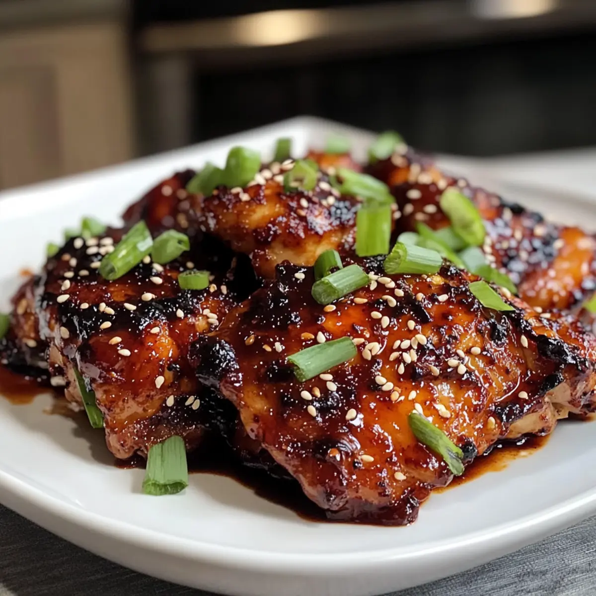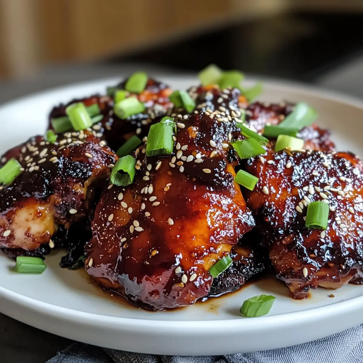 Eines Abends, während ich in der Küche experimentierte, offenbarten sich die unerwarteten Aromen von Gochujang-Hühnchen, die mich sofort in ihren Bann zogen. Diese koreanische Delikatesse verführt mit ihrer perfekten Balance aus Süße und Schärfe, die sich in einer köstlichen, glasierten Kruste vereint. Besonders makellos werden die Hähnchenschenkel durch die vielseitige Marinade, die nicht nur schnell zubereitet ist, sondern auch ideal für entspannte Abendessen unter der Woche oder beeindruckende Dinnerpartys. Wer hätte gedacht, dass mit wenigen Handgriffen solch ein geschmackliches Erlebnis geschaffen werden kann? Lass uns gemeinsam im nächsten Abschnitt eintauchen und dieses einfache, aber dennoch beeindruckende Rezept entdecken, das deine Küche mit einem Hauch von Korea bereichern wird. Warum wirst du dieses Gochujang-Hühnchen lieben? Einfachheit pur: Die Zubereitung dieses Gochujang-Hühnchens ist ein Kinderspiel und benötigt nur wenige Zutaten, was es perfekt für hektische Abende macht. Vielseitige Marinade: Diese Marinade verwandelt nicht nur Hähnchen, sondern kann auch mit Lachs oder Tofu für verschiedene Geschmäcker verwendet werden. Unglaublicher Geschmack: Die Kombination aus süßem Honig und würzigem Gochujang sorgt für einen einzigartigen Geschmack, den du immer wieder genießen möchtest. Beeindruckend für Gäste: Mit seinem glasierten Finish ist dieses Gericht ein echter Hingucker und eignet sich hervorragend für Dinnerpartys. Wenn du mehr über die Verwendung von Gochujang in der koreanischen Küche erfahren möchtest, schau dir unseren Beitrag über koreanische Küche an! Gochujang-Hühnchen Zutaten • Für die Marinade: 1/4 Tasse Gochujang-Paste – Gibt dem Gericht die charakteristische Schärfe und Süße; ein würziger Hochgenuss! 3 Esslöffel Sojasauce – Fügt Salzgehalt und Tiefe hinzu; für eine glutenfreie Option kannst du Tamari verwenden. 2 Esslöffel Honig – Süßt die Marinade und trägt zur köstlichen Glasur bei; Ahornsirup kann als vegane Alternative genutzt werden. 1 Esslöffel geröstetes Sesamöl – Verleiht einen nussigen Geschmack; reguläres Sesamöl kann ebenfalls verwendet werden. 4 Zehen Knoblauch, gehackt – Sorgt für aromatische Tiefe; frischer Knoblauch ist am besten. 1 Esslöffel frischer Ingwer, gerieben – Fügt Helligkeit und Wärme hinzu; in der Not kann auch gemahlener Ingwer verwendet werden. 1 Esslöffel Reisessig – Balanciert die Aromen mit einer sauren Note; Apfelessig ist eine gute Alternativoption. • Für das Hühnchen: 1,5 Pfund Hähnchenschenkel, ohne Knochen – Die Hauptzutat für eine saftige und zarte Textur; Hähnchenbrust kann für eine fettärmere Option verwendet werden. 1 Esslöffel neutrales Öl (wie Avocado oder Traubenkern) – Zum Einfetten des Grills oder Backblechs; jedes neutrale Pflanzenöl funktioniert gut. • Zum Garnieren: 2 Frühlingszwiebeln, dünn geschnitten – Fügt Frische und Farbe als finalen Touch hinzu; alternativ können Schnittlauch verwendet werden. 1 Teelöffel Sesamsamen – Gibt einen schönen Crunch und einen ästhetischen Wert; kann weggelassen werden, falls nicht vorhanden. Mit diesen Zutaten bist du bereit, ein köstliches Gochujang-Hühnchen zu kreieren, das perfekt für entspannte Abende oder besondere Anlässe geeignet ist! Schritt-für-Schritt-Anleitung für Gochujang-Hühnchen Step 1: Marinade vorbereiten In einer mittelgroßen Schüssel werden 1/4 Tasse Gochujang-Paste, 3 Esslöffel Sojasauce, 2 Esslöffel Honig, 1 Esslöffel geröstetes Sesamöl, 4 gehackte Knoblauchzehen, 1 Esslöffel geriebenen frischen Ingwer und 1 Esslöffel Reisessig gut miteinander vermischt, bis eine glatte Marinade entsteht. Diese aromatische Marinade wird die Basis für das köstliche Gochujang-Hühnchen sein. Step 2: Hühnchen marinieren Die 1,5 Pfund Hähnchenschenkel sollten zuerst trocken getupft werden, damit die Marinade optimal haften bleibt. Danach die Hähnchenschenkel gründlich mit der vorbereiteten Marinade einreiben, sodass sie gleichmäßig bedeckt sind. Die Schüssel mit Frischhaltefolie abdecken und das Hühnchen mindestens 30 Minuten, idealerweise bis zu 4 Stunden, im Kühlschrank marinieren lassen, um die Aromen intensiv einziehen zu lassen. Step 3: Garungsmethode vorheizen Wenn das Gochujang-Hühnchen zubereitet werden soll, den Grill auf mittelhohe Hitze vorheizen oder den Broiler einstellen, indem der Rost 15 cm unter die Heizquelle positioniert wird. Wenn Sie grillen, stellen Sie sicher, dass die Grillstäbe leicht eingefettet sind, um ein Anhaften des Hühnchens zu verhindern und eine gleichmäßige Bräunung zu ermöglichen. Step 4: Hühnchen kochen Das marinierte Hühnchen aus dem Kühlschrank nehmen und die Marinade dabei aufbewahren. Die Hähnchenschenkel auf den Grill legen oder unter den Broiler schieben und für etwa 6-7 Minuten pro Seite garen. Achten Sie darauf, dass das Hühnchen gut durchgegart ist (eine Innentemperatur von 74°C/165°F erreichen). In den letzten 2-3 Minuten das Hühnchen mit der reservierten Marinade glasieren, um den süß-scharfen Geschmack weiter zu intensivieren. Step 5: Ruhen lassen und servieren Nachdem das Gochujang-Hühnchen fertig ist, sollte es auf einem Schneidebrett für 5 Minuten ruhen, damit die Säfte sich setzen können. Währenddessen die restliche Marinade in einem kleinen Topf zum Kochen bringen und 2 Minuten köcheln lassen, um eine zusätzliche Sauce zu erhalten. Das Hühnchen in Scheiben schneiden, nach Belieben mit dünn geschnittenen Frühlingszwiebeln und Sesamsamen garnieren und warm servieren. Gochujang-Hühnchen für stressfreies Kochen vorbereiten Dieses Gochujang-Hühnchen ist ideal für Meal Prep-Fans! Du kannst die Marinade bis zu 24 Stunden im Voraus zubereiten, indem du alle Marinade-Zutaten in einer Schüssel vermischst und im Kühlschrank aufbewahrst. Die Hähnchenschenkel kannst du direkt darin marinieren und bis zu 3 Tagen im Kühlschrank lagern, was bedeutet, dass du sie einfach her