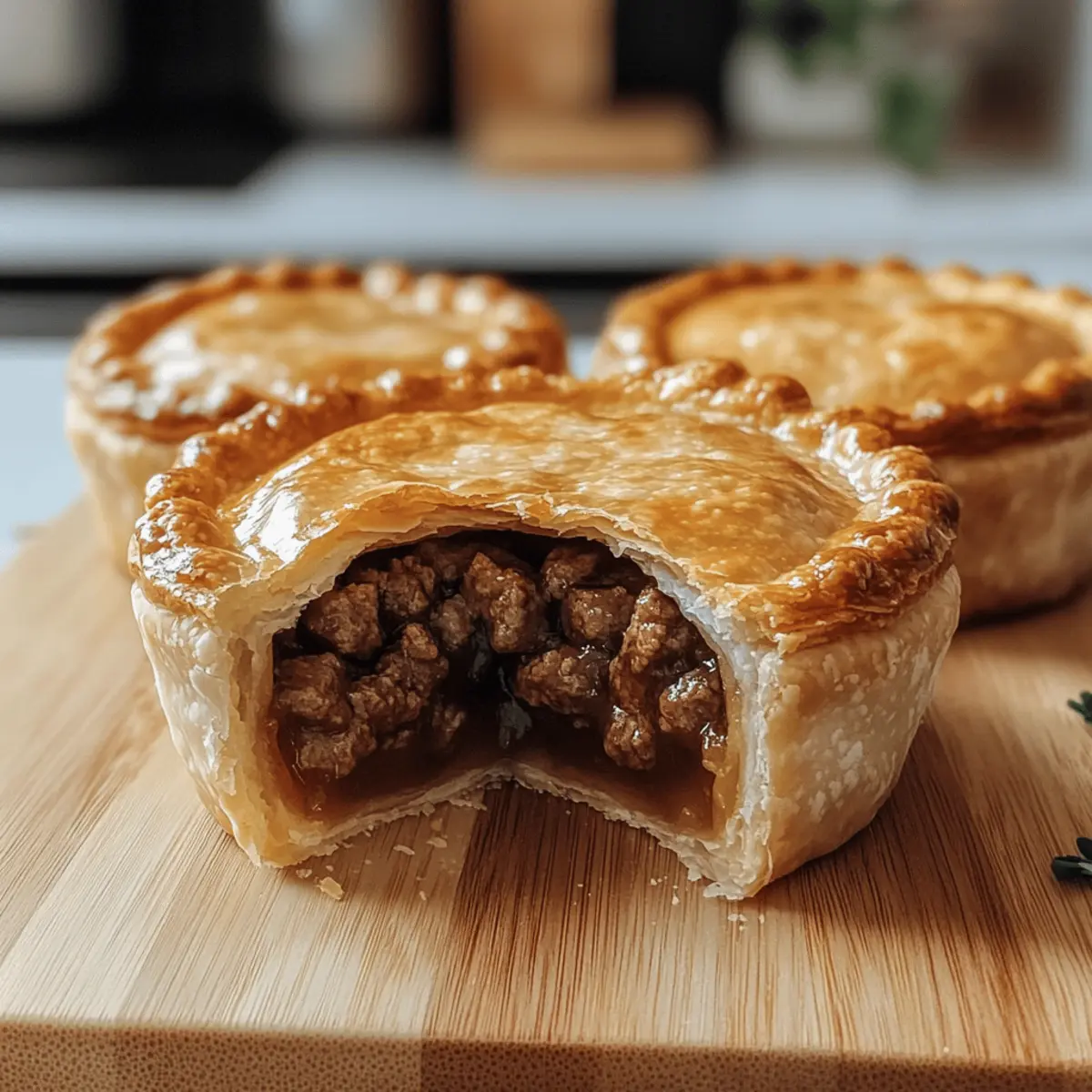 Eines Nachmittags, während ich durch die Straßen eines charmanten Stadtteils schlenderte, stieg mir der verführerische Duft von frisch gebackenen australischen Fleischpasteten in die Nase. Diese authentischen goldenen australischen Fleischpasteten haben eine buttrige, flakey Kruste, die beim ersten Biss zerbricht und einen köstlichen, herzhaften Fleischmix offenbart. In nur 3 Stunden und 15 Minuten zaubern wir eine hausgemachte Version, die allen Bäckerei-Kreationen Konkurrenz macht. Diese Rezepte sind nicht nur ein absoluter Genuss für die Geschmacksknospen, sondern bieten auch die Möglichkeit, leichtere Füllungen oder glutenfreie Alternativen zu verwenden. Sind Sie neugierig, wie Sie selbst diese köstlichen Pasteten im eigenen Zuhause kreieren können? Warum sind diese Fleischpasteten so besonders? Einzigartiger Geschmack: Die Kombination aus zartem Rindfleisch und aromatischen Kräutern sorgt für ein Geschmackserlebnis, das Sie lieben werden. Einfachheit: Mit nur wenigen Grundzutaten können Sie diese goldenen Fleischpasteten ganz leicht selbst zubereiten. Vielseitigkeit: Ob mit Rindfleisch oder vegetarischen Füllungen, die Möglichkeiten sind endlos! Probieren Sie auch unsere Ideen für leichtere Variationen. Familienfreundlich: Diese Pasteten sind der Hit bei Groß und Klein und perfekt für jeden Anlass. Schnelle Zubereitung: In nur 3 Stunden und 15 Minuten können Sie diese köstlichen Leckerbissen genießen und sie eigenen Freunden servieren oder sogar einfach für sich selbst zubereiten! Zutaten für Goldene Australische Fleischpasteten Für die Teigbasis: Weißes Mehl – sorgt für die Struktur; verwenden Sie Vollkornmehl für mehr Ballaststoffe. Kaltes Butter – garantiert eine flauschige Textur; ersetzen Sie die Hälfte durch griechischen Joghurt, um den Fettgehalt zu reduzieren. Eigelb – verleiht dem Teig Reichtum. Eiswasser – hilft, den Teig zusammenzubinden. Für die Fleischfüllung: Rinderbraten – sorgt für eine geschmackvolle Füllung; verwenden Sie mageres Hackfleisch für schnelleres Kochen. Olivenöl – zum Anbraten des Rindfleischs. Zwiebel – fügt Süße und Tiefe hinzu. Knoblauch – verbessert den Geschmack. Tomatenmark – sorgt für Farbe und konzentriert den Geschmack. Worcestershire-Sauce – bringt Umami. Rinderfond – gibt Feuchtigkeit und Geschmack; verwenden Sie Hühnerfond für eine leichtere Variante. Lorbeerblätter & Thymian – verleihen pflanzliche Noten. Speisestärke – dickt die Füllung ein. Schritt-für-Schritt-Anleitung für Goldene Australische Fleischpasteten Schritt 1: Teig vorbereiten Mischen Sie das Mehl mit einer Prise Salz in einer großen Schüssel. Kneten Sie die kalte Butter mit den Fingerspitzen ein, bis die Mischung krümelig aussieht und der Textur von Semmelbröseln ähnelt. Achten Sie darauf, die Butter gut zu verteilen, um eine flakey Kruste für die Goldenen Australischen Fleischpasteten zu gewährleisten. Schritt 2: Teig binden In einer kleinen Schüssel schlagen Sie das Eigelb mit dem Eiswasser. Gießen Sie diese Mischung in die Mehl-Butter-Mischung und kneten Sie den Teig sanft, bis er zusammenkommt. Wickeln Sie den Teig in Frischhaltefolie und lassen Sie ihn mindestens 30 Minuten im Kühlschrank ruhen, damit er sich setzen kann. Schritt 3: Füllung anbraten Erhitzen Sie das Olivenöl in einem großen Topf bei mittlerer Hitze. Braten Sie das Rinderfleisch portionsweise an, bis es von allen Seiten schön gebräunt ist. Achten Sie darauf, das Fleisch nicht zu überladen, damit es gleichmäßig bräunt. Nehmen Sie das Fleisch dann aus dem Topf und stellen Sie es beiseite. Schritt 4: Zwiebel und Gewürze hinzufügen Im gleichen Topf die Zwiebel anbraten, bis sie goldbraun ist – etwa 5 Minuten. Fügen Sie dann den gehackten Knoblauch, das Tomatenmark und die Worcestershire-Sauce hinzu und sautieren Sie alles für weitere 2 Minuten. Diese Schritte bringen zusätzliche Aromen in die Füllung der Goldenen Australischen Fleischpasteten. Schritt 5: Füllung kochen Geben Sie das angebratene Fleisch wieder in den Topf und fügen Sie den Rinderfond, die Lorbeerblätter und den Thymian hinzu. Lassen Sie die Füllung bei niedriger Hitze für 1,5 bis 2 Stunden köcheln, bis das Fleisch zart ist und die Aromen sich gut vermischen. Überprüfen Sie gelegentlich, ob genug Flüssigkeit vorhanden ist. Schritt 6: Füllung eindicken Wenn das Fleisch weich ist, entfernen Sie die Lorbeerblätter und fügen Sie die Speisestärke hinzu, um die Füllung zu verdicken. Rühren Sie gut um und lassen Sie die Mischung bei niedriger Hitze weiter köcheln, bis sie die gewünschte Konsistenz erreicht hat. Lassen Sie die Füllung danach abkühlen, bevor Sie mit dem Füllen der Pasteten beginnen. Schritt 7: Pasteten formen Rollenden Sie den Teig auf einer leicht bemehlten Fläche aus und schneiden Sie ihn in Kreise, die groß genug sind, um Ihre Pie-Tins auszukleiden. Füllen Sie die kalte Fleischfüllung in die ausgerollten Teigschalen und decken Sie diese mit weiteren Teigdeckeln zu. Achten Sie darauf, die Ränder gut zu versiegeln, um ein Auslaufen der Füllung zu verhindern. Schritt 8: Backen Heizen Sie den Ofen auf 200°C (180°C Umluft) vor. Bestreichen Sie die Oberseite der Pasteten mit etwas verquirltem Ei, um eine goldene Farbe zu erzielen. Backen Sie die Goldenen Australischen Fleischpasteten für 25 bis 30 Minuten, oder bis der Teig schön goldbraun und knusprig ist. Überwachen Sie den Backprozess sorgfältig, um ein Überbacken zu vermeiden. Variationen der goldenen australischen Fleischpasteten Entdecken Sie aufregende Möglichkeiten, um dieses Rezept nach Ihrem Geschmack anzupassen und zu variieren! Leichtere Version: Ersetzen Sie einen Teil der Butter durch griechischen Joghurt für einen gesünderen Teig. So wird der Genuss nicht nur leichter, sondern auch cremiger. Fleischalternativen: Tauschen Sie das Rindfleisch gegen gehackte Linsen und Pilze aus. Diese pflanzliche Option sorgt für eine herzhaft-vegetarische Varia