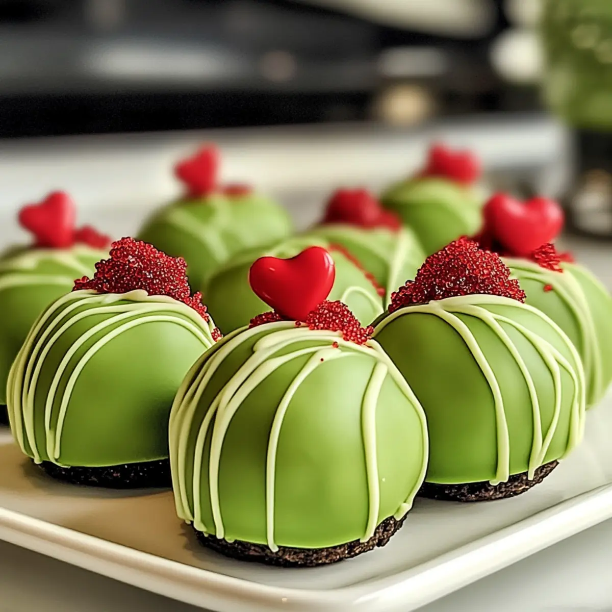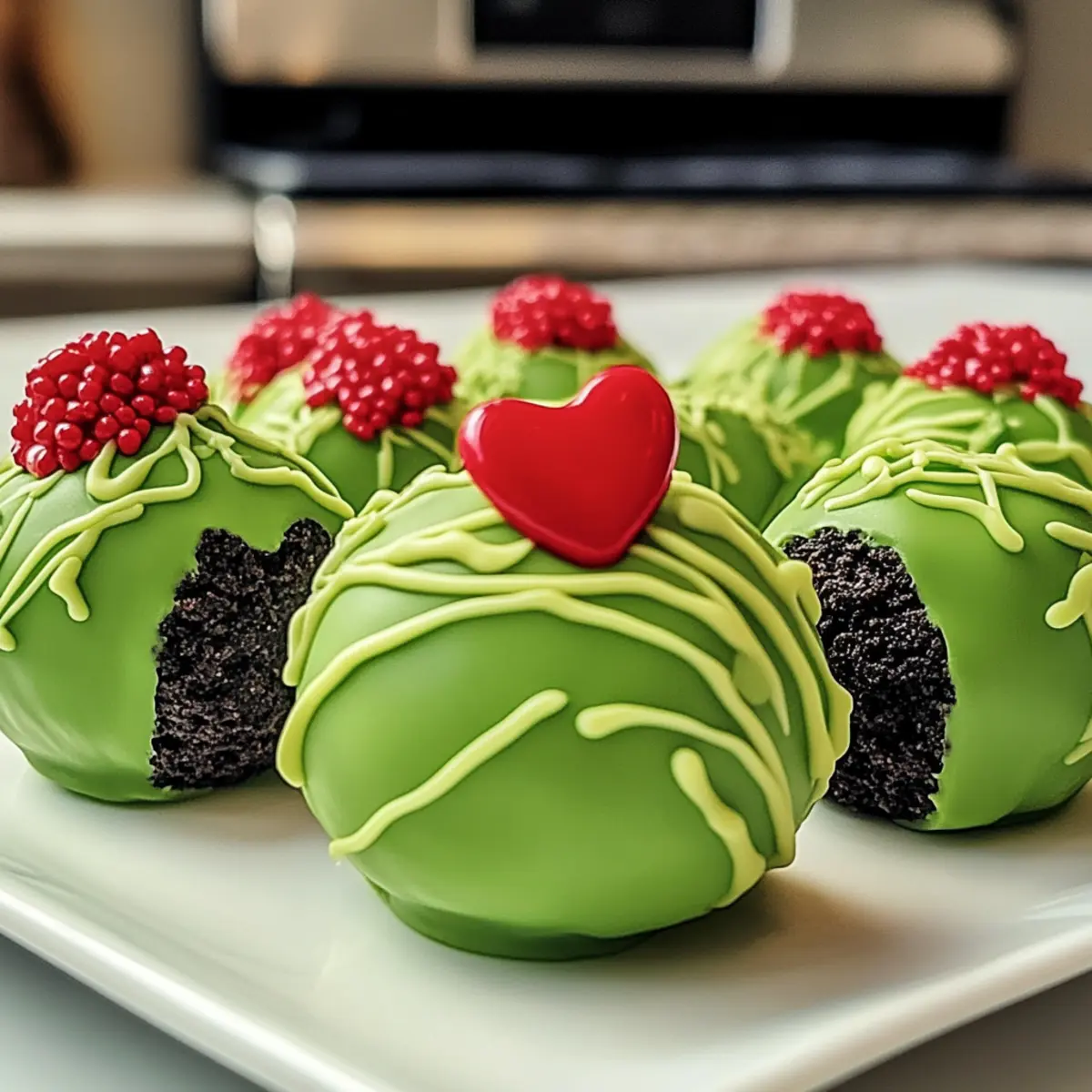 In der kalten Jahreszeit, wenn die Tage kürzer werden und die Herzen wärmer, gibt es nichts Besseres als eine süße Überraschung, die sowohl die Augen als auch den Gaumen erfreut. Diese Grinch Oreo Bälle sind die perfekte Kombination aus Spaß und Geschmack! Mit ihrer leuchtend grünen Schokoladenglasur und dem niedlichen roten Herz on top sind sie nicht nur ein Blickfang, sondern auch ein kinderspiel zu machen. Die Grundzutat – Red Velvet Oreos – sorgt für eine traumhafte, cremige Füllung, die selbst bei den wählerischsten Essern für Begeisterung sorgt. Diese no-bake Leckereien sind fix zubereitet und lassen sich wunderbar variieren, um meinen süßen Zahn und die Vorlieben meiner Freunde und Familie zu befriedigen. Wer möchte da nicht mehr über die Möglichkeiten erfahren? Warum werden Sie diese Grinch Oreo Bälle lieben? Einfachheit: Die Zubereitung ist denkbar leicht und erfordert keine speziellen Backkenntnisse – ideal für alle, die köstliche Desserts lieben! Fantasievoller Genuss: Diese bunten Bälle sind ein echter Hingucker auf jedem Feiertagsbuffet und sorgen für strahlende Gesichter bei Groß und Klein. Vielseitigkeit: Mit unterschiedlichen Oreo-Sorten und Toppings können Sie unzählige Variationen kreieren, um jeden Geschmack zu treffen. Probieren Sie zum Beispiel die Dairy-Free-Version für eine milchfreie Option oder die “Minty Fresh”-Varianten für eine erfrischende Note! Zeitersparnis: Diese no-bake Leckerei ist schnell zubereitet und benötigt keinerlei Ofen – ideal, wenn es schnell gehen muss. Perfektes Geschenk: Geben Sie diese festlichen Leckereien in schön verzierten Dosen weiter und erfreuen Sie Ihre Liebsten als süßes Mitbringsel! Grinch Oreo Bälle Zutaten Hinweis: Diese Grinch Oreo Bälle sind nicht nur lecker, sondern auch einfach zuzubereiten! Für die Füllung: Red Velvet Oreos – sorgen für einen einzigartigen Geschmack und können durch normale Oreos ersetzt werden, wenn Sie Abwechslung wünschen. Frischkäse – bindet die Mischung zu einer cremigen Füllung; stellen Sie sicher, dass er weich ist, um das Mischen zu erleichtern. Für die Glasur: Hellgrüne Schokoladen-Drops – zaubern eine festliche Hülle; alternativ können Sie weiße Schokolade mit grüner Lebensmittelfarbe verwenden. Für die Dekoration: Rote Zuckerküsse – hübsche Deko, die das Herz des Grinch symbolisiert; erhältlich in Backgeschäften oder online. Schritt-für-Schritt-Anleitung für Grinch Oreo Bälle Step 1: Vorbereitung Belegen Sie ein großes Backblech mit Backpapier, um eine saubere Ablage für die Grinch Oreo Bälle zu schaffen. Eine saubere Oberfläche ist wichtig, um Klebrigkeit beim Formen der Bälle zu vermeiden, und macht das spätere Reinigen einfacher. Step 2: Oreos zerbröseln Verwenden Sie eine Küchenmaschine oder einen Zip-Lock-Beutel, um die Red Velvet Oreos zu feinen Krümeln zu zerdrücken. Mahlen Sie die Kekse, bis sie eine konsistente, sandige Textur haben, die sich gut mit dem Frischkäse verbinden lässt. Dies dauert etwa 1-2 Minuten. Step 3: Füllung mischen Geben Sie den weichen Frischkäse in eine große Schüssel und schlagen Sie ihn mit einem Handmixer glatt. Fügen Sie langsam die zerdrückten Oreos hinzu und mischen Sie alles gut durch, bis eine klebrige, doughartige Konsistenz entsteht. Dies sollte ungefähr 2-3 Minuten in Anspruch nehmen. Step 4: Bälle formen Nehmen Sie einen Keksportionierer und entnehmen Sie den Teig, um gleich große Portionen zu erhalten. Rollen Sie diese Portionen zwischen Ihren Handflächen zu glatten Bällen und legen Sie sie auf das Backblech. Sie sollten ungefähr 24 Bälle erhalten, die gleichmäßig geformt sind. Step 5: Kühlen Stellen Sie das Backblech in den Kühlschrank und kühlen Sie die Bälle mindestens 2 Stunden lang, bis sie fest sind. Dies hilft, die Struktur der Grinch Oreo Bälle zu bewahren, wodurch sie beim Eintauchen in die Schokolade nicht auseinanderfallen. Step 6: Schokolade schmelzen Bereiten Sie ein Wasserbad vor oder verwenden Sie die Mikrowelle, um die hellgrünen Schokoladendrops zu schmelzen. Wenn Sie die Mikrowelle benutzen, erhitzen Sie die Schokolade in Intervallen von 30 Sekunden, rühren Sie zwischendurch um, bis sie glatt und vollständig geschmolzen ist. Achten Sie darauf, dass die Schokolade nicht anbrennt. Step 7: Eintauchen Nehmen Sie die gekühlten Bälle aus dem Kühlschrank und tauchen Sie jeden Ball sorgfältig in die geschmolzene Schokolade. Lassen Sie überschüssige Schokolade abtropfen, bevor Sie die Bälle wieder auf das Backblech legen. Arbeiten Sie schnell, damit die Schokolade nicht fest wird, während Sie die Bälle bearbeiten. Step 8: Dekorieren Sobald alle Bälle eingetaucht sind, träufeln Sie mit der restlichen geschmolzenen Schokolade über die beschichteten Bälle und platzieren Sie sofort einen roten Zuckersüßigkeit obendrauf. Die Schokolade sollte noch warm sein, damit die Deko gut haftet und nicht abfällt. Step 9: Fest werden lassen Stellen Sie die Bälle wieder in den Kühlschrank und lassen Sie das Schokoladenglasur etwa 30 Minuten oder bis sie vollständig fest ist. Dies sorgt dafür, dass die Grinch Oreo Bälle perfekt formstabil sind, wenn Sie sie servieren oder verschenken möchten. Expert Tips für Grinch Oreo Bälle Weiche Zutaten: Achten Sie darauf, dass der Frischkäse vollständig weich ist, damit die Füllung schön cremig wird und sich gut mit den Oreos verbindet. Zutaten richtig schmelzen: Beim Schmelzen der hellgrünen Schokoladendrops regelmäßig umrühren, um ein Anbrennen zu vermeiden. Für eine optimale Konsistenz sollten Sie die Schokolade in Intervallen von 30 Sekunden in der Mikrowelle erhitzen. Kühlen nicht vergessen: Lassen Sie die Bälle mindestens 2 Stunden kühlen, bevor Sie sie eintauchen. So bleiben sie stabil und fallen nicht auseinander. Variation ausprobieren: Probieren Sie verschiedene Oreo-Sorten für neue Geschmacksrichtungen aus. Minty Fresh oder Golden Ores sind tolle Alternativen zu den klas