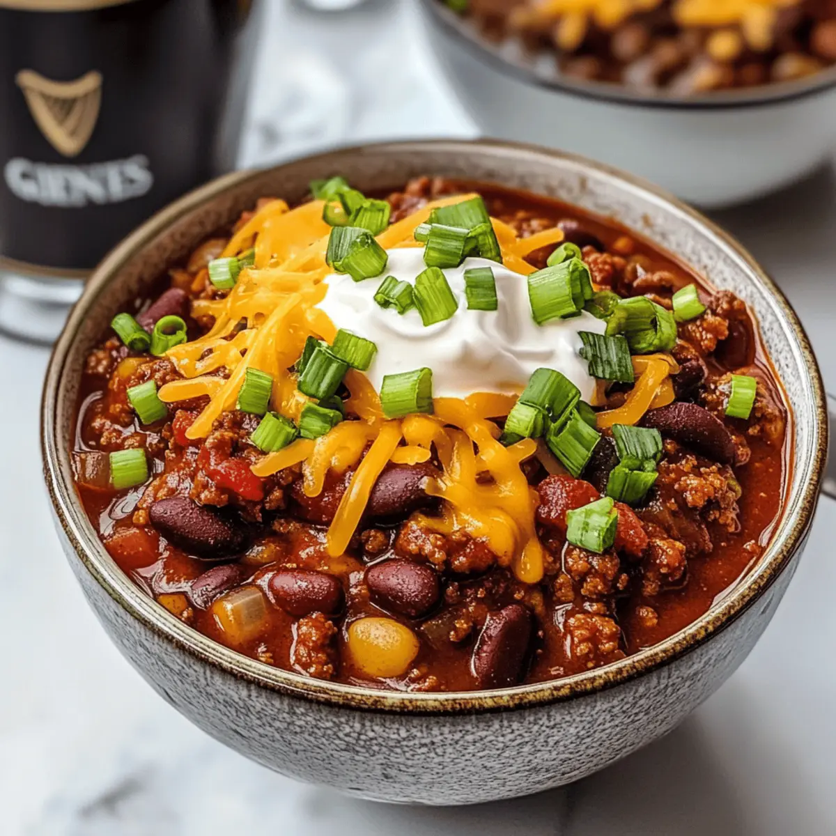 Ein Freund von mir schwärmte neulich von einer außergewöhnlichen Kombination, die ich unbedingt ausprobieren musste: Guinness Irish Chili. Dieses herzhafte Gericht vereint die malzigen Nuancen des Guinness mit der Wärme traditioneller Chili-Gewürze und ist ideal für entspannte Abendessen oder spannende Spieltage. Die Zubereitung ist einfach und gelingt in einem einzigen Topf in weniger als einer Stunde – perfekt für alle, die eine schnelle, aber sättigende Mahlzeit suchen. Zudem eignet sich dieses Rezept hervorragend für Reste, die am nächsten Tag noch besser schmecken. Neugierig, wie du dieses köstliche Rezept zaubern kannst? Warum wirst du dieses Rezept lieben? Einfachheit in bester Form: Die Zubereitung ist unkompliziert und erfordert nur grundlegende Kochkenntnisse. Herzhafter, reichhaltiger Geschmack: Die Kombination aus Guinness und Gewürzen schafft ein robustes Geschmacksprofil, das deine Geschmacksknospen verzaubert. Ein perfektes Komfortessen: Diese einladende Chili ist die perfekte Wahl für entspannte Abende oder spannende Spieltage. Vielseitig einsetzbar: Ob mit Rindfleisch oder in einer vegetarischen Variante, du kannst die Zutaten nach Lust und Laune anpassen. Schnell und unkompliziert: In weniger als einer Stunde steht ein schmackhaftes Gericht auf dem Tisch, ideal für vielbeschäftigte Tage. Ideal für Reste: Gekochtes Chili schmeckt am nächsten Tag oft noch besser – perfekt für Meal Prep! Wenn du auf der Suche nach weiteren leckeren Rezepten bist, schau dirAsiatisches Rinderhackfleisch mit oderZart Geschmorte Rinderkurzbraten an. Guinness Irish Chili Zutaten Hinweis: Diese Zutatenliste enthält alles, was du benötigst, um das perfekte Guinness Irish Chili zuzubereiten. Für das Chili: Avocadoöl – Ideal zum Anbraten; du kannst auch Olivenöl oder Pflanzenöl verwenden. Gelbe Zwiebel – Verleiht dem Chili Süße und Tiefe; keine Substitution empfohlen. Sellerie – Fügt Knackigkeit und Geschmack hinzu; optional. Kann auch durch Karotten ersetzt werden. Paprika – Bringt Süße und Farbe; rot, gelb oder grün sind austauschbar. Knoblauch – Verstärkt Aroma und Geschmack; frisch ist ideal, aber Knoblauchpulver geht auch. Mageres Rinderhackfleisch – Hauptproteinquelle, sorgt für Textur; kann durch Putenhack oder pflanzliches Fleisch ersetzt werden. Chilipulver – Zutat für Schärfe; je nach Geschmack anpassen. Paprika – Fügt Tiefe und einen Hauch von Rauchigkeit hinzu; geräucherte Variante könnte den Geschmack verbessern. Gemahlener Kreuzkümmel – Bietet einen warmen, erdigen Geschmack; keine Substitution empfohlen. Gemahlener Koriander – Verleiht Zitrusnoten; kann weggelassen oder durch Curry-Pulver ersetzt werden. Oregano – Balanciert die Aromen; kann durch italienische Gewürzmischung ersetzt werden. Meersalz & schwarzer Pfeffer – Essentiell zum Würzen; nach Geschmack anpassen. Zimtstange/Gemahlener Zimt – Fügt subtile Süße und Wärme hinzu; Zimtstange bevorzugt oder ¼ Teelöffel gemahlenen nutzen. Zerkleinerte Tomaten – Basis für die Chilisauce; sowohl aus der Dose als auch selbstgemacht geeignet. Guinness – Verleiht einzigartigen Geschmack und Tiefe; jede andere Stout funktioniert, vermeide jedoch hopfenbetonte Biere. Rote Kidneybohnen – Bietet Ballaststoffe und Protein; können durch schwarze oder Pintobohnen ersetzt werden. Optionale Toppings: Sauerrahm – Für eine cremige Note. Geriebener Cheddar-Käse – Fügt zusätzlichen Geschmack hinzu. Frühlingszwiebeln – Für frische, knackige Akzente. Schritt-für-Schritt-Anleitung für Guinness Irish Chili Schritt 1: Aromaten anbraten Erhitze bei mittlerer Hitze das Avocadoöl in einem großen Topf. Füge die gehackte Zwiebel hinzu und brate sie etwa 5 Minuten lang an, bis sie goldbraun wird. Anschließend gib Sellerie, Paprika und den fein gehackten Knoblauch hinzu und brate alles weitere 5 Minuten, bis das Gemüse weich ist. Schritt 2: Fleisch anbraten Incorporiere das mageres Rinderhackfleisch in den Topf und brate es an, bis es vollständig durchgebraten ist, was etwa 5 Minuten dauert. Rühre regelmäßig um, damit das Fleisch gleichmäßig bräunt und seine Textur entwickelt. Die Mischung sollte jetzt bereits gut aromatisch sein. Schritt 3: Würzen Streue das Chilipulver, Paprika, Kreuzkümmel, gemahlenen Koriander, Oregano, Salz, Pfeffer und die Zimtstange über die Fleischmischung. Rühre alles gut um, bis die Gewürze vollständig eingearbeitet sind. Dies sorgt für ein intensives Aroma in deinem Guinness Irish Chili. Schritt 4: Flüssigkeiten hinzufügen Gieße die zerkleinerten Tomaten und das Guinness in den Topf und rühre gründlich um, um alle Zutaten gut zu vermengen. Achte darauf, dass alles gleichmäßig verteilt ist, damit die Aromen optimal miteinander verschmelzen können. Schritt 5: Simmern Reduziere die Hitze auf niedrig und lasse das Chili zugedeckt etwa 30 Minuten lang köcheln. Rühre gelegentlich um, da es eindicken wird. Achte darauf, dass das Chili sanft köchelt, und richte deine Sinne auf den köstlichen, sich entwickelnden Geruch. Schritt 6: Fertigstellen Gib die abgespülten Kidneybohnen in den Topf und schmecke das Chili ab. Füge nach Belieben zusätzliches Salz und Pfeffer hinzu. Lasse das Guinness Irish Chili kurz aufkochen, damit sich die Aromen vermischen, und serviere es heiß mit optionalen Toppings. Wie man Guinness Irish Chili lagert und einfriert Kühlschrank: Bewahre übrig gebliebenes Guinness Irish Chili in einem luftdichten Behälter für bis zu 5 Tage im Kühlschrank auf, um die Frische zu erhalten. Gefriertruhe: Das Chili kann gut für 4-6 Monate eingefroren werden. Stelle sicher, dass du es in einem gefrierfesten Behälter oder Beutel aufbewahrst, um Gefrierbrand zu vermeiden. Auftauen: Zum Auftauen lasse das Chili über Nacht im Kühlschrank oder erwärme es vorsichtig direkt aus dem Gefrierfach in einem Topf bei niedriger Hitze. Wiedererwärmung: Beim Wiedererwärmen kannst du einen Schuss Wasser oder Brühe h