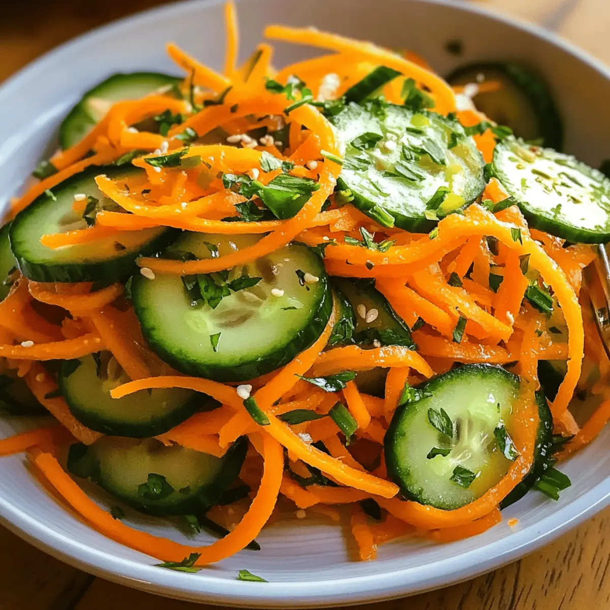 Frische, knackige Zutaten: Dieser Gurken-Karotten-Salat glänzt mit knusprigen Gurken und süßen Karotten, die jede Biss perfektionieren.