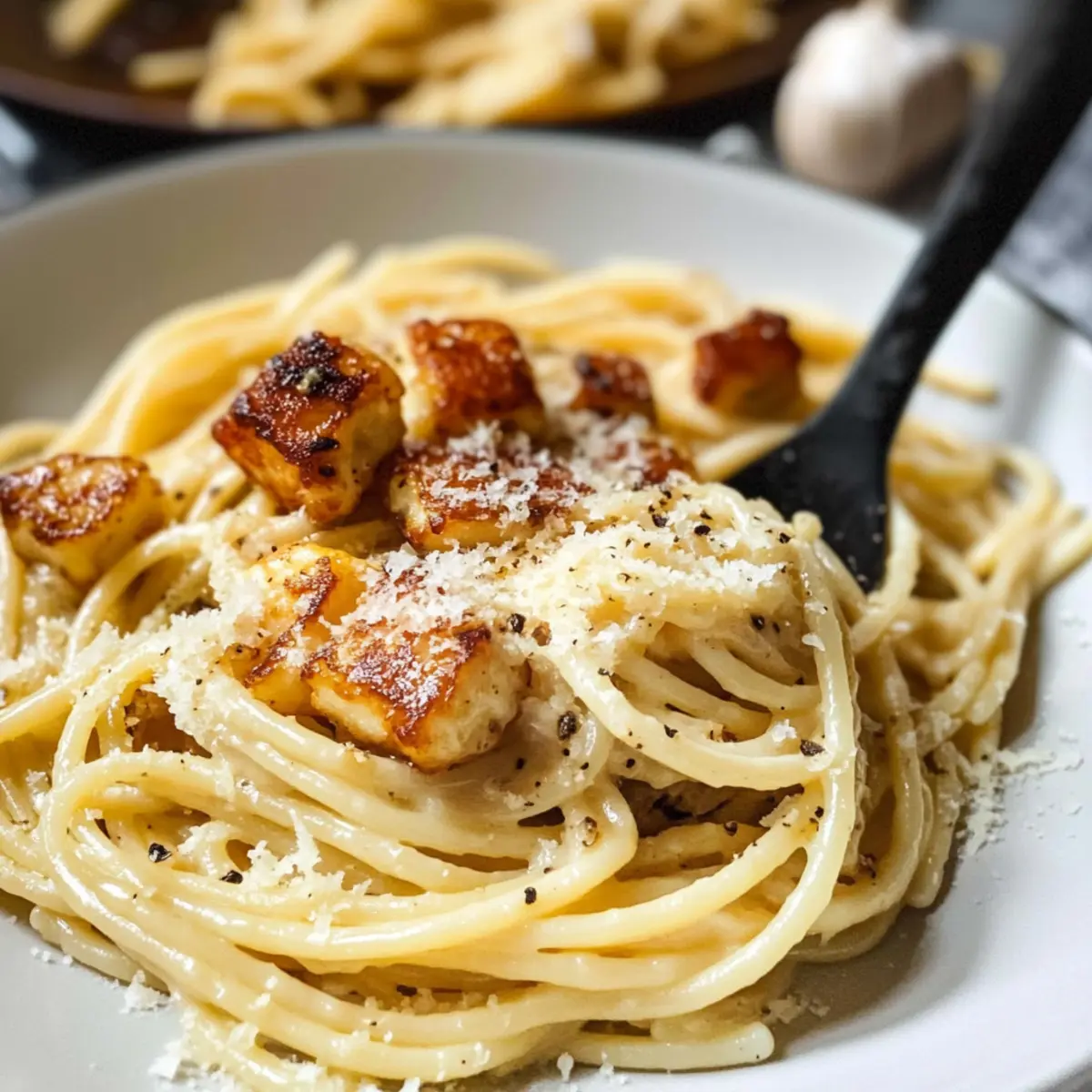 Entdecke die köstliche Halloumi Carbonara, eine cremige vegetarische Variante mit Halloumi und Pasta.