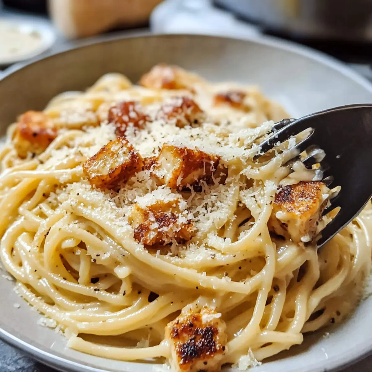 • Rauchige Note: Probiere Gouda oder Räucherkäse anstelle von Parmesan aus. Dieser kleine Wechsel verleiht deiner Carbonara einen interessanten, rauchigen Geschmack.