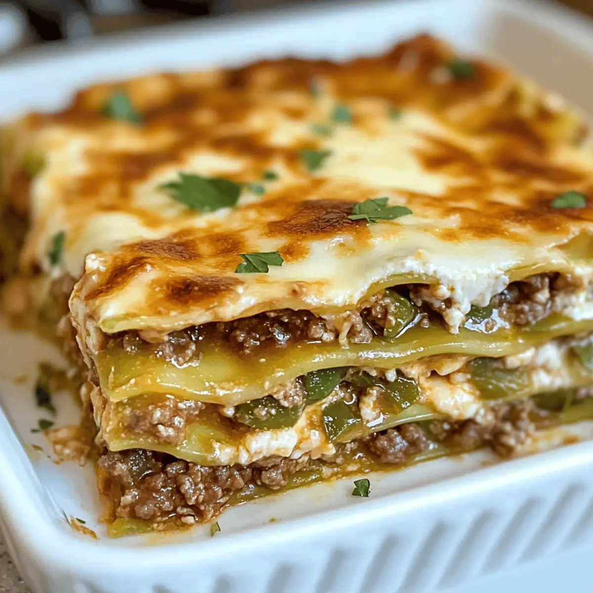 Dieses köstliche Hatch Green Chile Lasagne Rezept vereint zarte Nudel-Schichten mit einer würzigen Füllung und cremiger Béchamel, ideal für die ganze Familie.