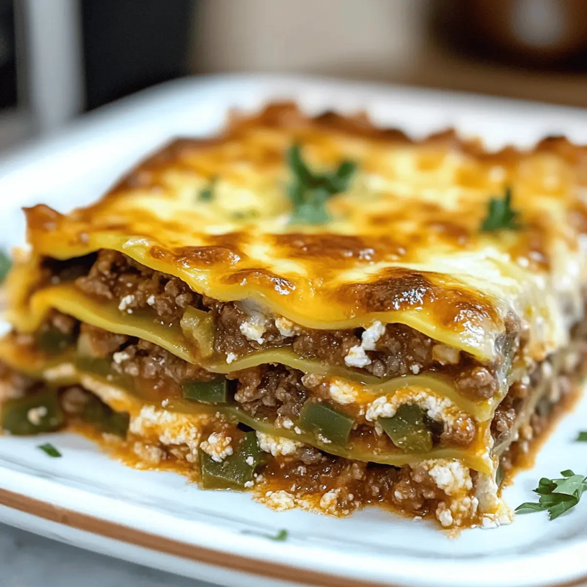 Zutaten variieren: Experimentiere mit verschiedenen Käsesorten oder füge zusätzlich Gemüse wie Spinat oder Zucchini hinzu, um mehr Nährstoffe in deiner Hatch Green Chile Lasagna zu integrieren.