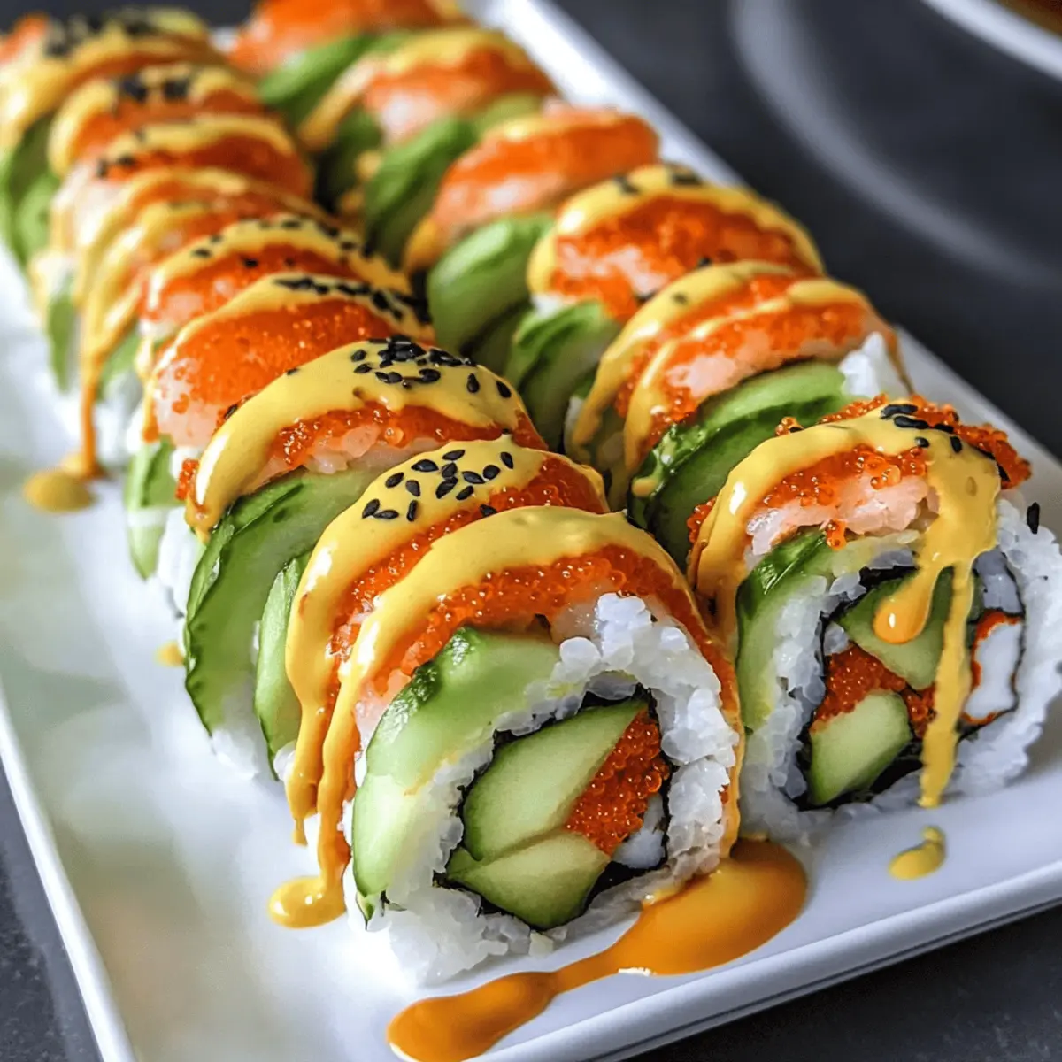 • Experimentieren erlaubt: Scheuen Sie sich nicht, mit verschiedenen Füllungen und Saucen zu experimentieren! Ob mit Tempura-Flakes oder einer anderen Sauce – Ihre Kreativität macht die Dragon Rolls einzigartig.