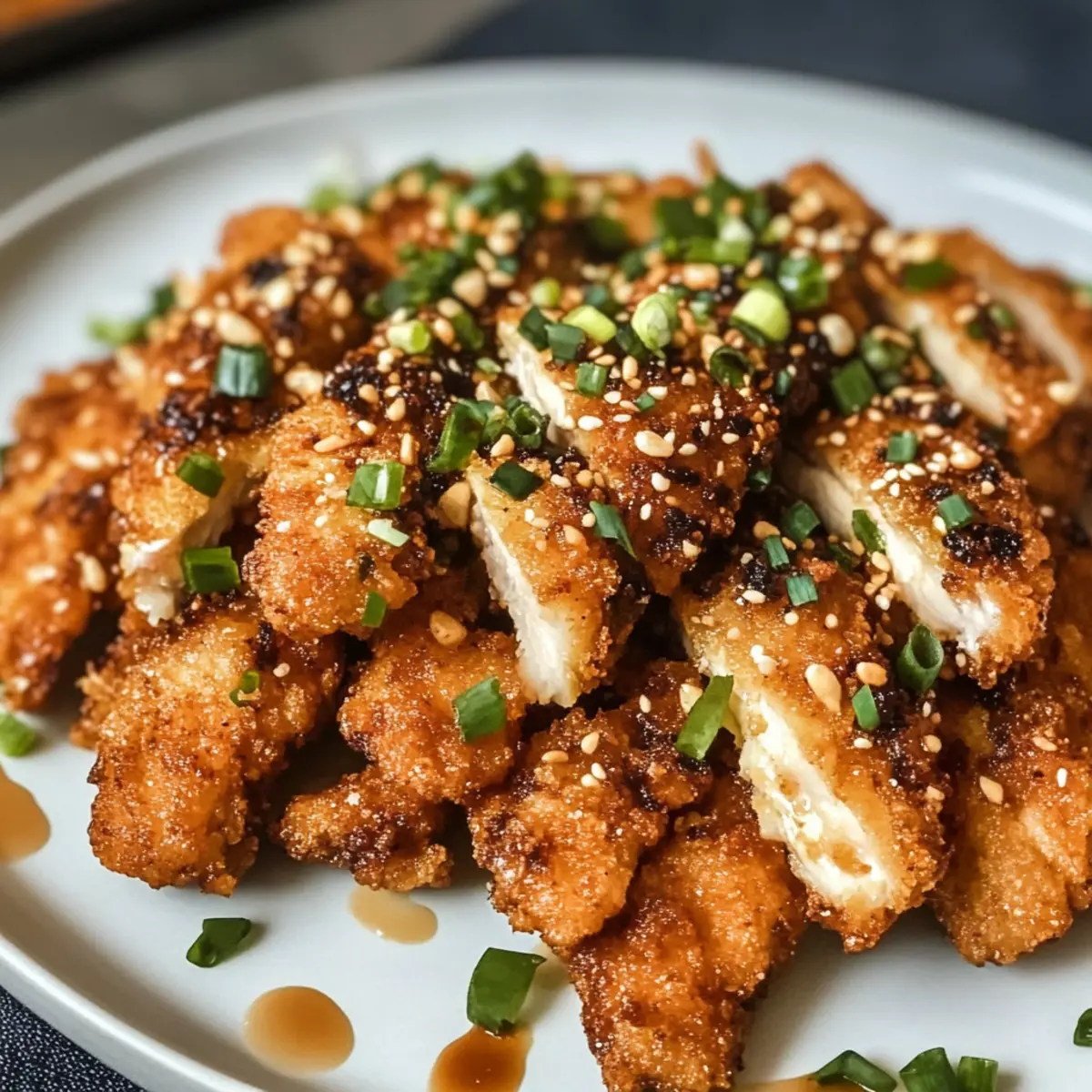 Nehme die marinierten Hähnchenstreifen aus dem Kühlschrank und frittiere sie in kleinen Portionen für 4–5 Minuten, bis sie goldbraun und knusprig sind. Achte darauf, das Hähnchen während des Frittierens nicht zu überladen, damit die Temperatur konstant bleibt und jedes Stück perfekt gegart wird. Übertrage das frittierte Hähnchen auf ein Kühlregal, um überschüssiges Öl abtropfen zu lassen.