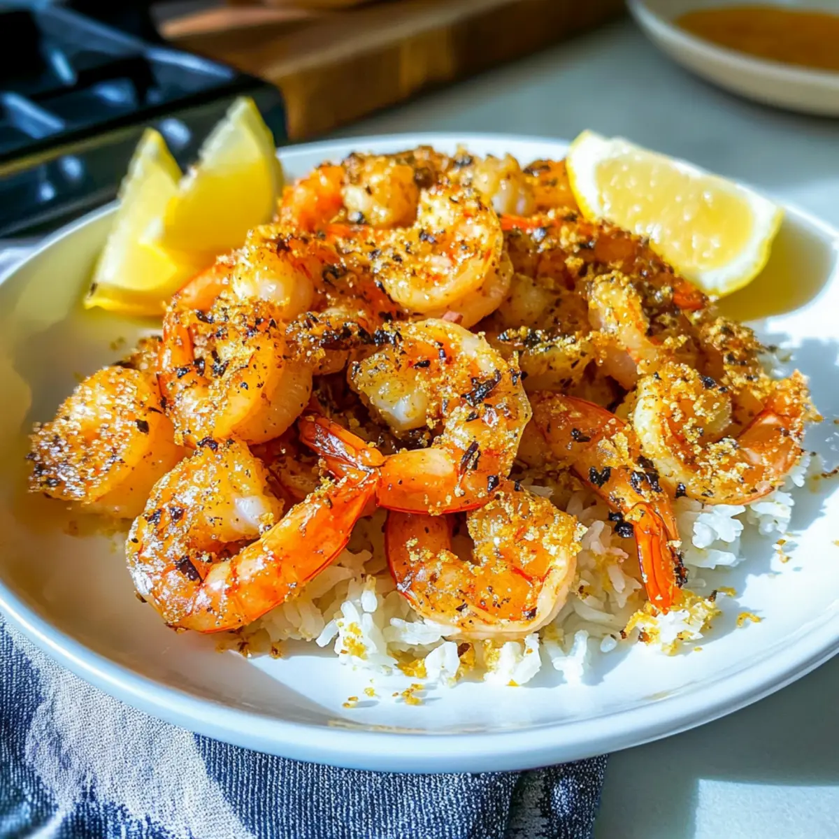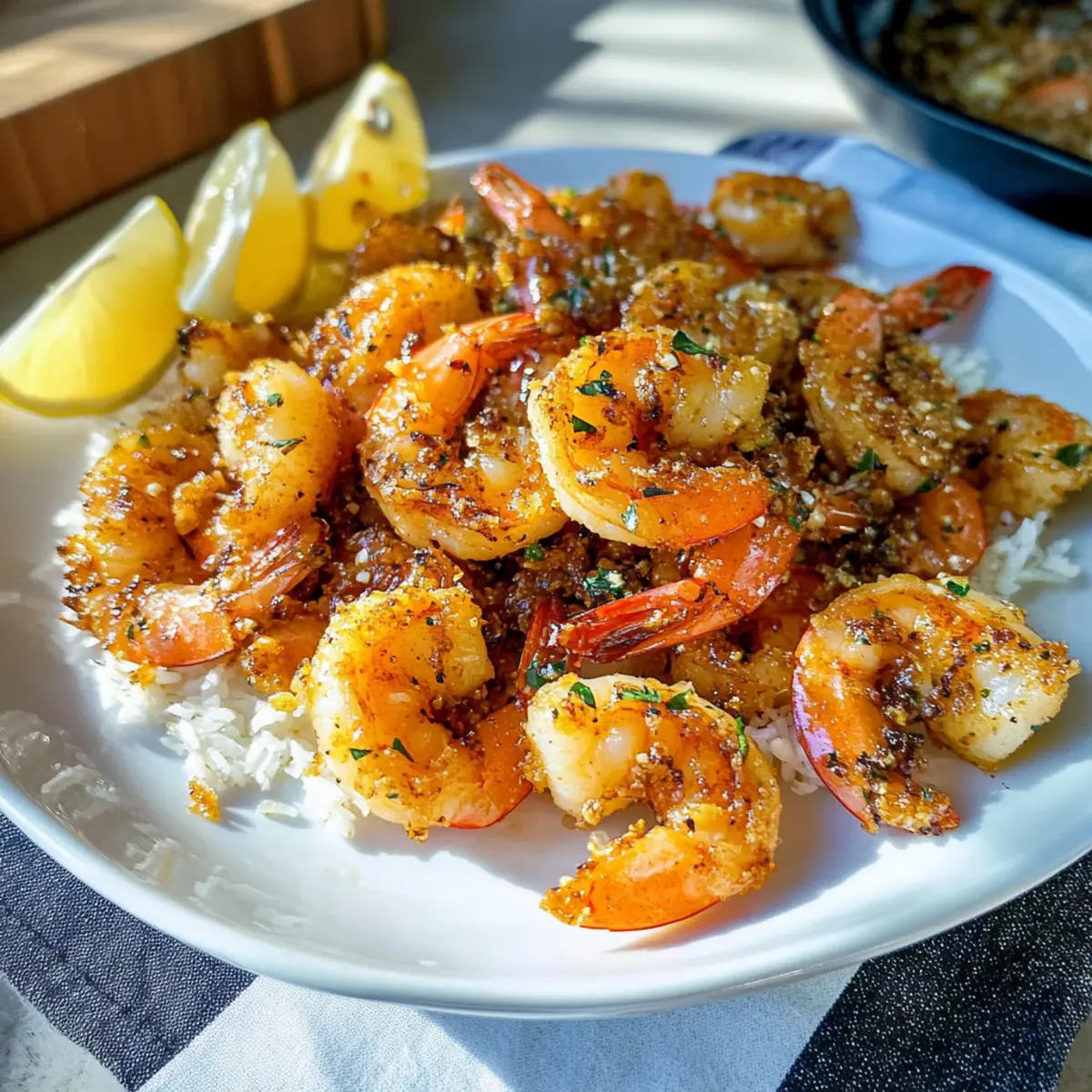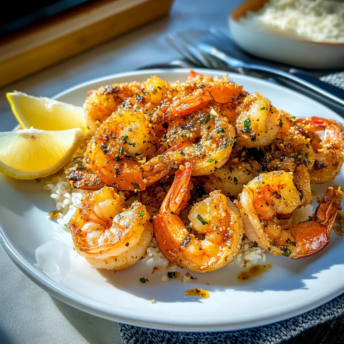 • Duftender Reis: Der leicht klebrige, dampfende Reis ergänzt die intensiven Aromen der Garnelen und nimmt die köstliche Knoblauchbutter-soße auf.