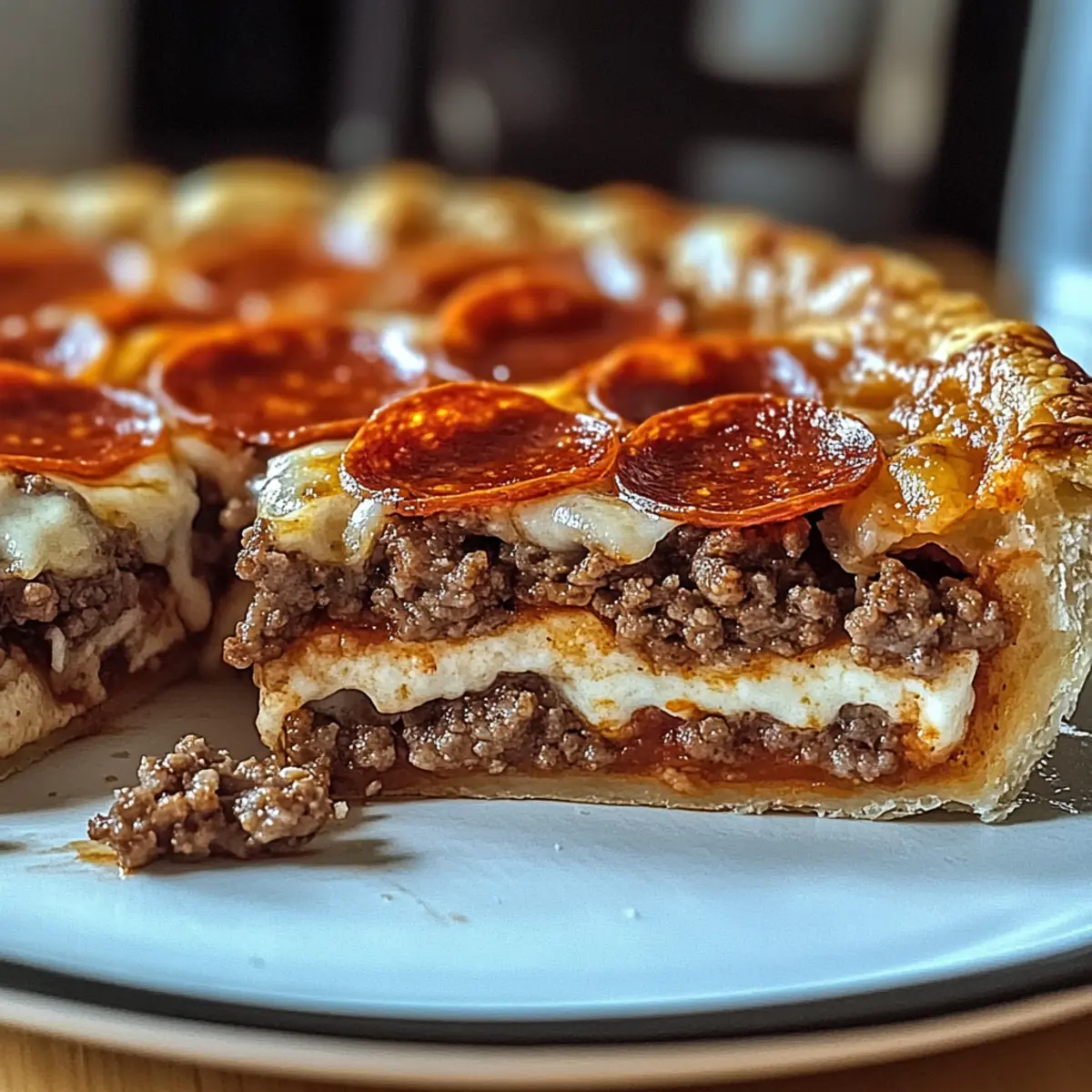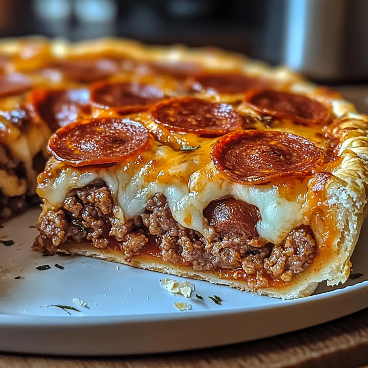 Hast du schon mal den Duft frischer, gut gewürzter Köstlichkeiten in der Küche erlebt? Bei meinem Herzhafter Hamburger Wurst- und Peperoni-Kuchen wird der Raum von dem verlockenden Aroma durchdrungen, bevor das Gericht überhaupt aus dem Ofen kommt. Diese Kombination aus saftigen Fleischstücken und schmelzendem Käse in einem herzhaften Pie übertrumpft alles, was du von klassischem Comfort Food erwartet hast. Ob für ein gemütliches Familienessen oder den nächsten Spieleabend – dieses Rezept ist nicht nur schnell zuzubereiten, sondern lässt sich auch nach Belieben anpassen, sodass jeder etwas nach seinem Geschmack findet. Bist du bereit, die Küche zum Leben zu erwecken? Warum wirst du dieses Rezept lieben? Vielfalt und Anpassungsfähigkeit: Mit einem einfachen Grundrezept kannst du die Zutaten nach Lust und Laune variieren – sei es mit verschiedenen Wurstsorten oder köstlichen Käsesorten. Zeitersparnis: Ideal für geschäftige Wochentage, einfach vorbereiten und im Ofen backen – schon hast du ein herzhaftes Gericht, das die ganze Familie begeistert. Unwiderstehlicher Geschmack: Die Kombination von würzigen Fleischstücken und cremigem Käse sorgt für ein Geschmackserlebnis, das jeden Bissen zur Freude macht. Perfekt für jede Gelegenheit: Egal ob Familienessen, Partie mit Freunden oder ein gemütlicher Abend – dieser Kuchen wird immer das Highlight sein. Und wenn du mehr über die Kunst des Meal Preps erfahren möchtest, schau dir unsere hilfreichen Tipps an! Herzhafter Hamburger Wurst- und Peperoni-Kuchen Zutaten • Hinweis: Hier sind die Zutaten, die dir helfen werden, diesen köstlichen Herzhafter Hamburger Wurst- und Peperoni-Kuchen zuzubereiten. Für die Füllung Rinderhackfleisch – Macht das Gericht proteinreich und gibt eine herzhafte Note; du kannst es durch Putenhack ersetzen, um es leichter zu machen. Wurst – Sorgt für Reichtum und Gewürz; für eine fleischlose Variante kann eine vegetarische Wurst verwendet werden. Peperoni – Verleiht ein klassisches, rauchiges Aroma; kann durch Truthahn-Peperoni ersetzt oder ganz weggelassen werden. Mozzarella-Käse – Der Hauptkäse für eine schmelzende Textur; Provolone oder Cheddar können das Geschmacksprofil erweitern. Parmesan-Käse – Sorgt für eine knusprige Käseschicht; optional, aber sehr empfehlenswert für zusätzlichen Geschmack. Für die Basis Pizzasauce – Gibt dem Kuchen Feuchtigkeit und Geschmack; sowohl selbstgemachte als auch gekaufte Saucen sind geeignet. Teig – Die Grundlage des Kuchens; fertiger Teig ist praktisch, aber selbstgemachter bringt ein persönliches Flair. Olivenöl – Zum Anbraten des Fleisches verwendet; jede andere Kochöl kann ebenfalls genutzt werden. Schritt-für-Schritt-Anleitung für den Herzhafter Hamburger Wurst- und Peperoni-Kuchen Step 1: Ofen vorheizen und Teig vorbereiten Heize den Ofen auf 190°C vor. Rolle den weich gewordenen Teig in eine tiefe Kuchenform aus und drücke ihn gleichmäßig in die Ecke. Stich mit einer Gabel kleine Löcher in den Boden, damit der Dampf entweichen kann, und backe ihn 10 Minuten lang vor, bis er leicht goldbraun ist. Dies verhindert ein durchweichtes Ergebnis. Step 2: Fleischmischung anbraten Erhitze in einer großen Pfanne einen Esslöffel Olivenöl bei mittlerer Hitze. Füge das Rinderhackfleisch und die Wurst hinzu und würze die Mischung mit Salz, Pfeffer, Knoblauchpulver und italienischen Kräutern. Brate das Fleisch 7 bis 10 Minuten lang, bis es gut durchgegart und schön braun ist, und lasse überschüssiges Fett abtropfen. Step 3: Kuchen schichten Verteile eine Schicht Pizzasauce gleichmäßig über den vorgebackenen Teigboden. Streue die Hälfte des Mozzarella-Käses darauf, gefolgt von der Fleischmischung. Füge eine weitere Schicht Pizzasauce hinzu, dann den restlichen Mozzarella und schließlich die kleinen Stücke Peperoni sowie den optionalen Parmesan-Käse obenauf. Step 4: Kuchen backen Setze die Kuchenform in den vorgeheizten Ofen und backe den Kuchen 25 bis 30 Minuten lang, bis der Käse sprudelnd und golden braun ist. Achte darauf, dass der Käse nicht verbrennt, und halte ihn während des Backens im Auge, um das perfekte Ergebnis zu erzielen. Step 5: Abkühlen und servieren Lasse den Herzhafter Hamburger Wurst- und Peperoni-Kuchen 5 bis 10 Minuten abkühlen, damit er sich leichter schneiden lässt. Serviere ihn warm, eventuell garniert mit frischer Petersilie, um das Gericht optisch ansprechend zu machen und den Geschmack zu verfeinern. Expert Tips für den Herzhafter Hamburger Wurst- und Peperoni-Kuchen Vorbacken: Immer den Teig vorbacken, um ein Durchweichen zu vermeiden. Dies gibt dem Kuchen eine knusprige Basis. Belag dosieren: Achte darauf, die Füllung nicht zu überladen. Zu viele Zutaten können zu einem matschigen Ergebnis führen. Vorschau für Zubereitung: Wenn du den Kuchen im Voraus zubereiten möchtest, kannst du ihn bis zu 24 Stunden vorher zusammenstellen und die Backzeit um 5 Minuten verlängern. Geeignete Aufwärmmethoden: Beim Wiederaufwärmen ist es am besten, den Ofen oder einen Air Fryer bei 175°C zu verwenden, um die Knusprigkeit zu bewahren. Experimentiere mit dem Käse: Probiere verschiedene Käsesorten aus, um bei deinem Herzhafter Hamburger Wurst- und Peperoni-Kuchen interessante Geschmäcker zu entdecken. Was passt zum Herzhafter Hamburger Wurst- und Peperoni-Kuchen? Ein schmackhaftes Mahl verlangt nach den perfekten Begleitern, die jeden Bissen bereichern und das Erlebnis abgerunden werden. Knoblauchbrot: Diese knusprige Beilage mit aromatischem Knoblauch und Kräutern ergänzt den herzhaften Kuchen köstlich. Der Kontrast zwischen der Weichheit des Kuchens und dem Biss des Brotes begeistert jeden. Caesar-Salat: Frische Römerherzen, knusprige Croutons und cremiges Dressing bringen eine erfrischende Note, die die deftigen Aromen des Kuchens ausgleicht. Ein idealer Kontrast für einen ausgewogenen Teller! Gegrilltes Gemüse: Mit buntem, gegrilltem Gemüse wie Paprika, Zucchini u